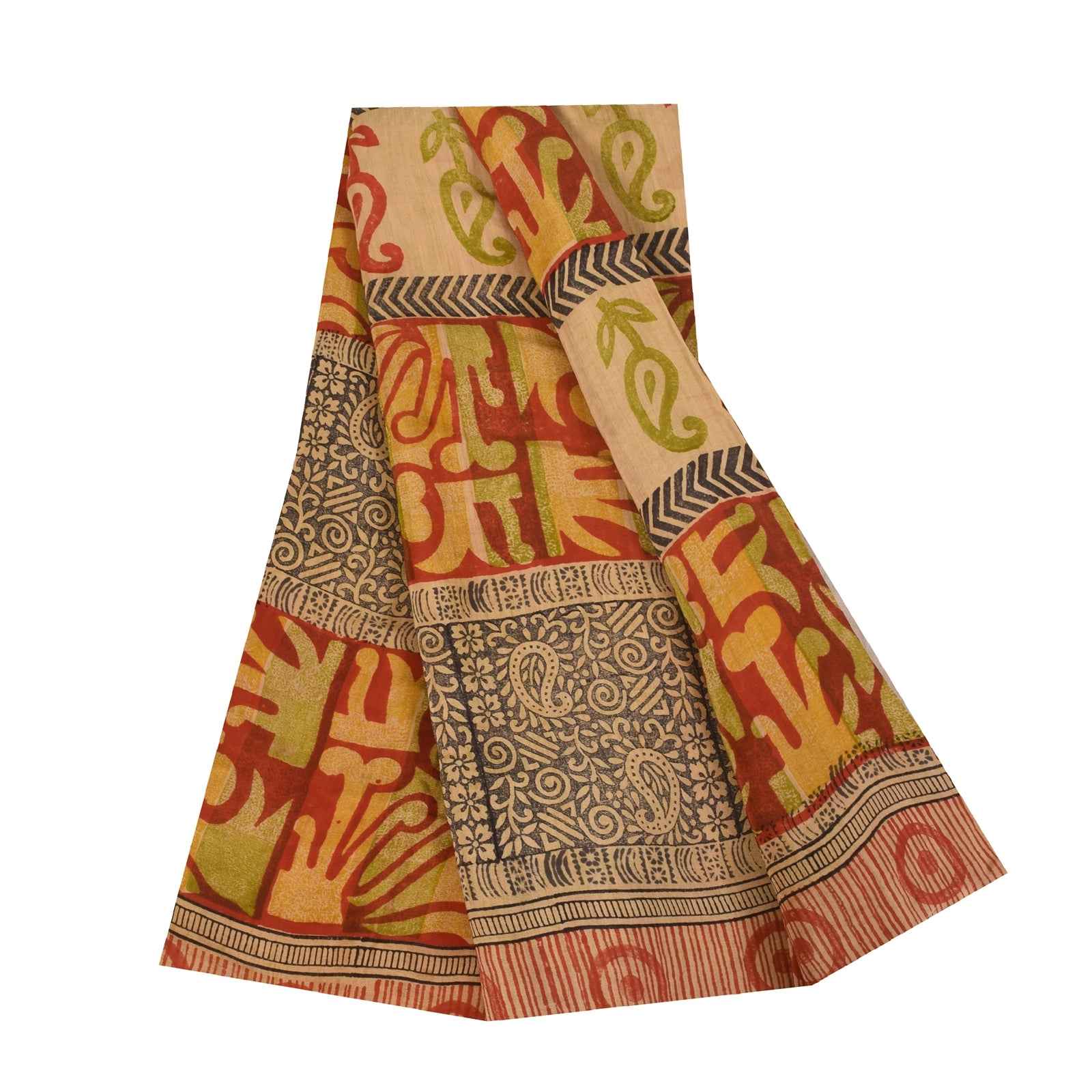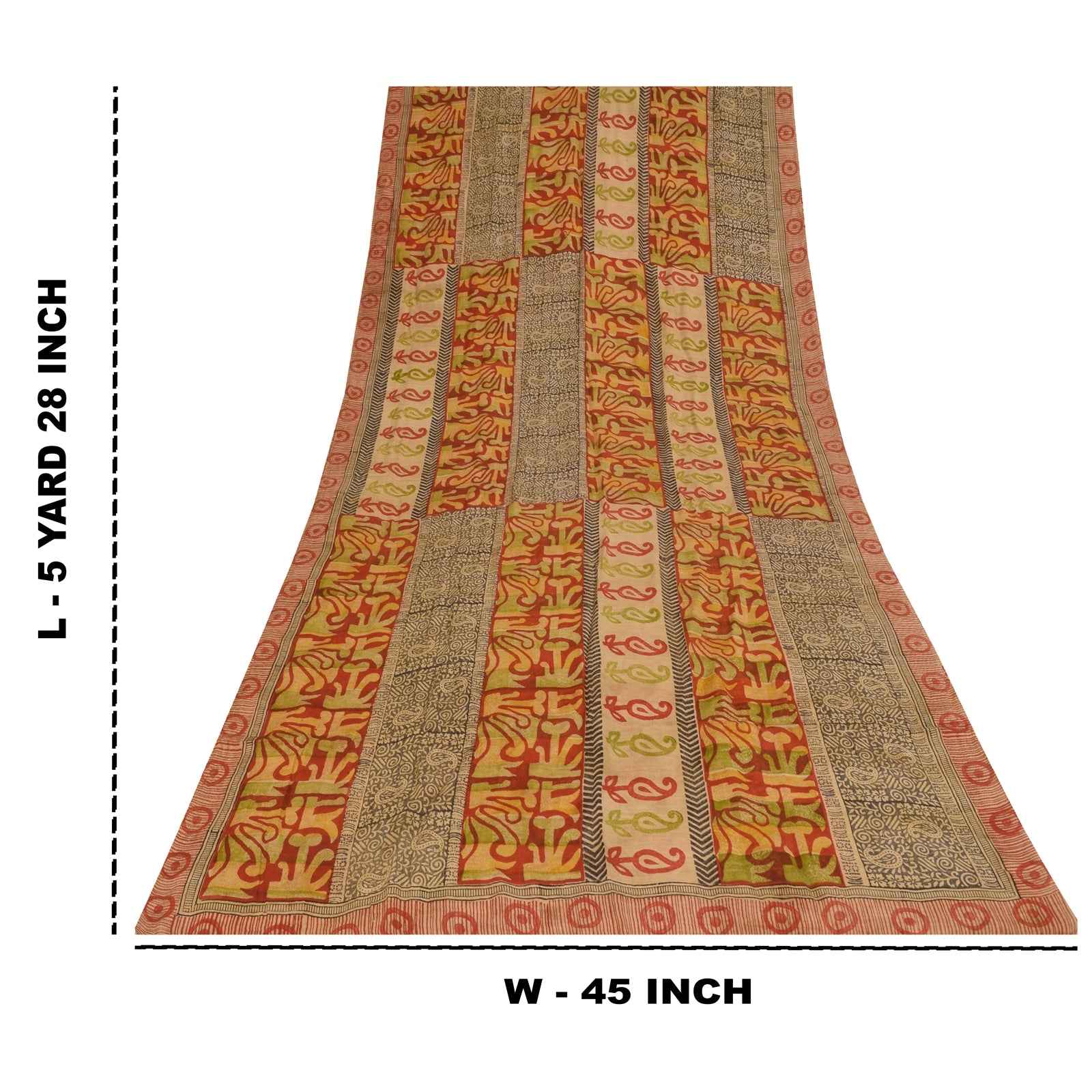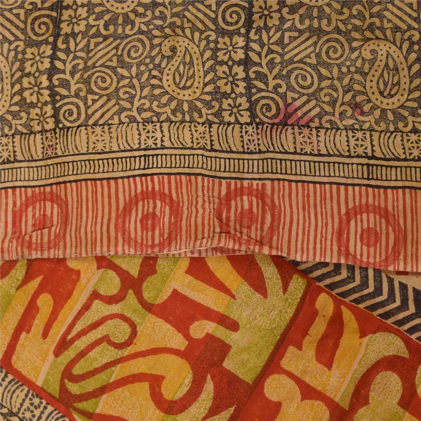 Sanskriti Vintage Sarees Red 100% Pure Crepe Silk Printed Sari 5+yd Craft Sustainable Fabric