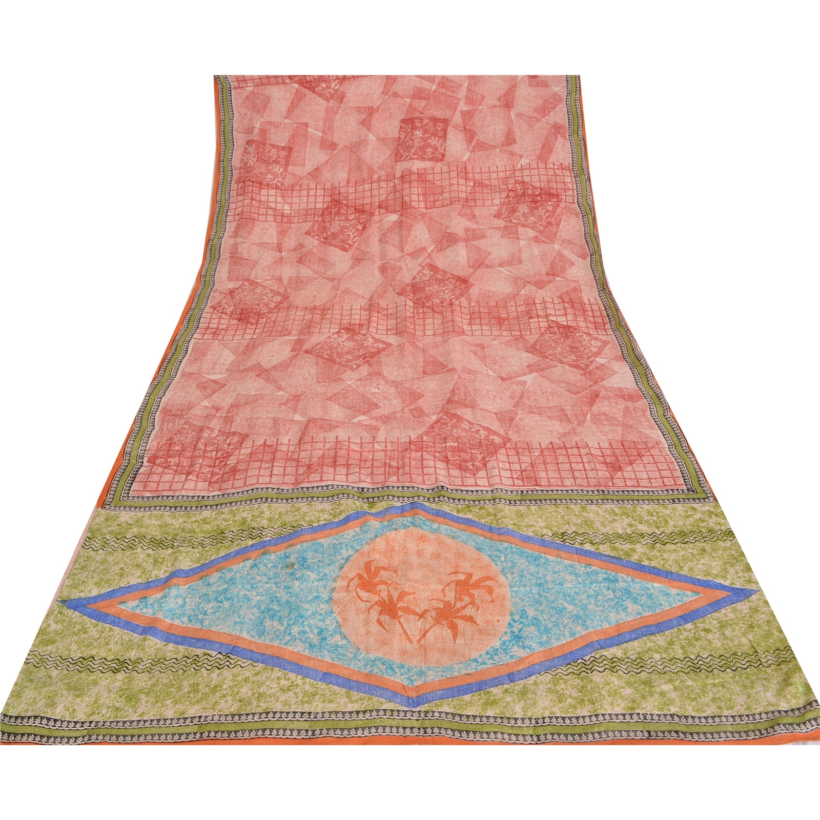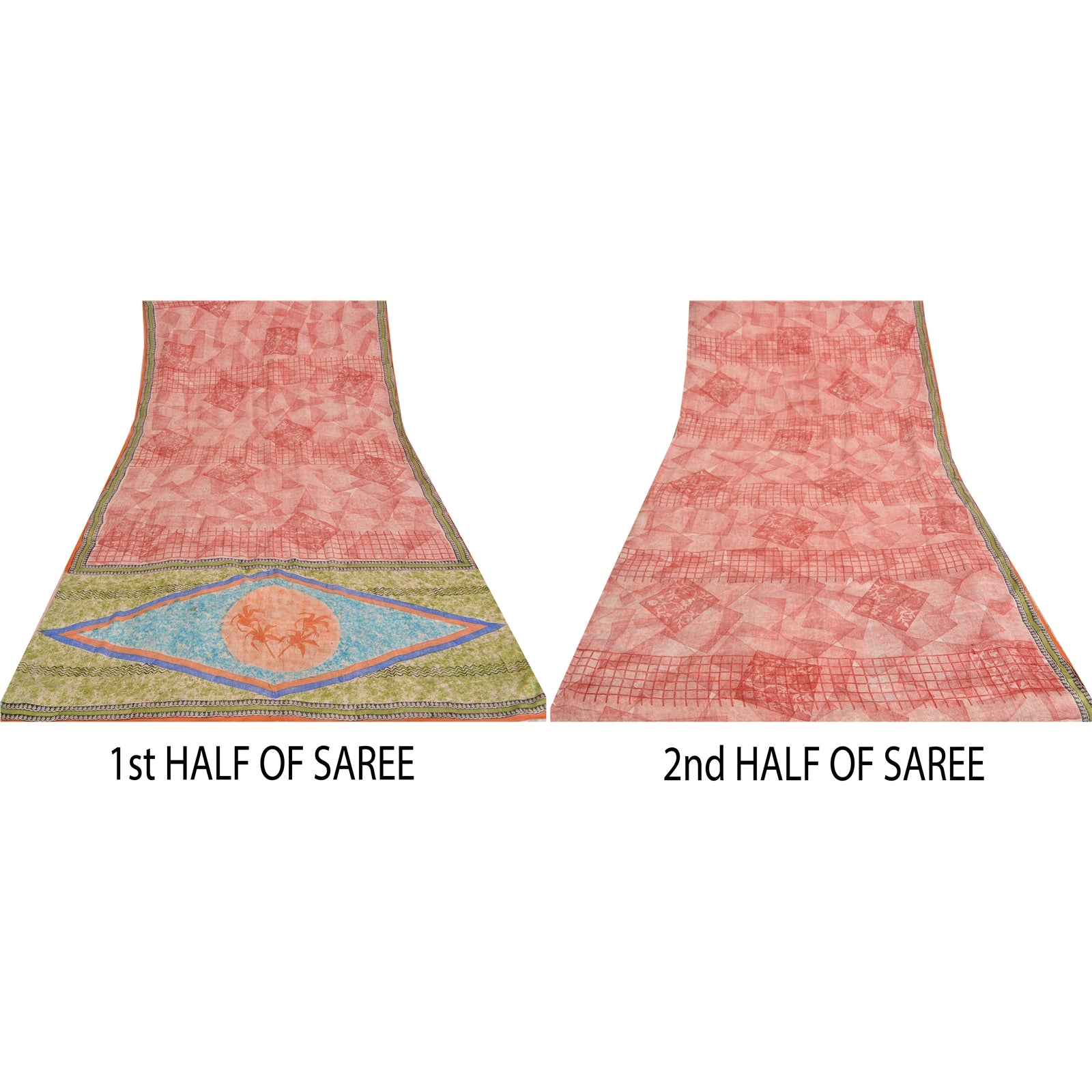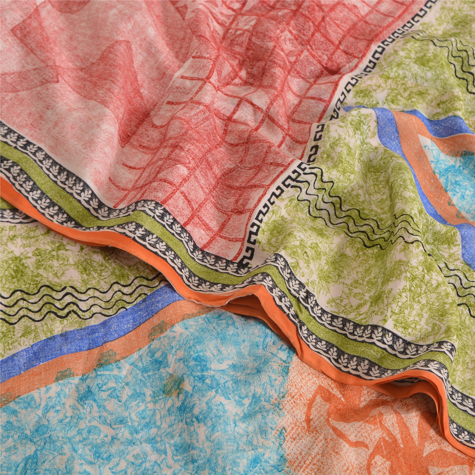 Sanskriti Vintage Sarees Red 100% Pure Crepe Silk Printed Sari 5yd Craft Sustainable Fabric