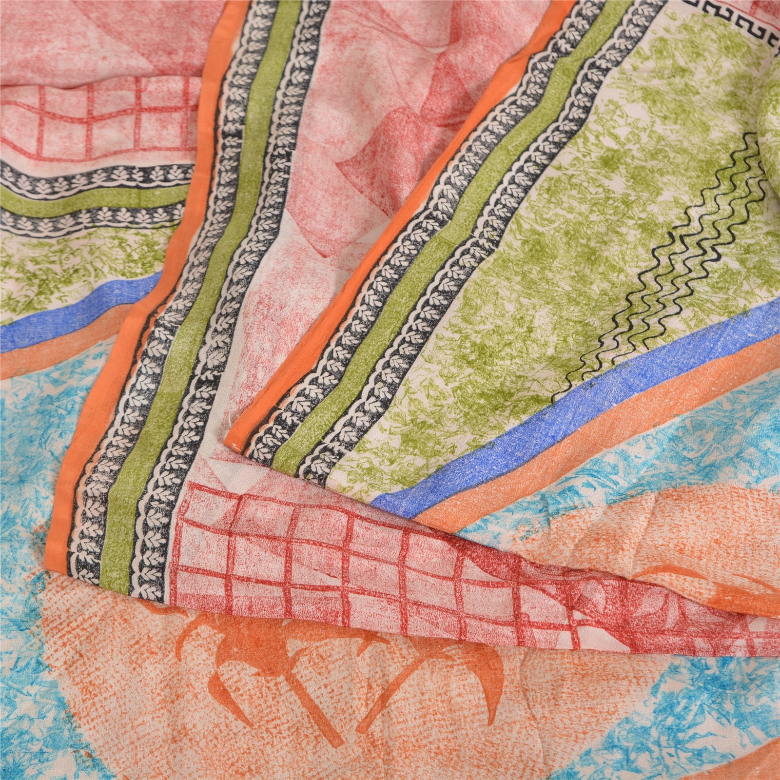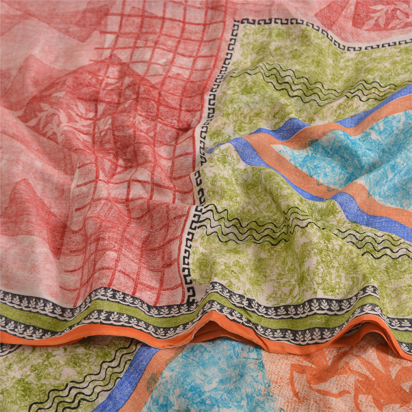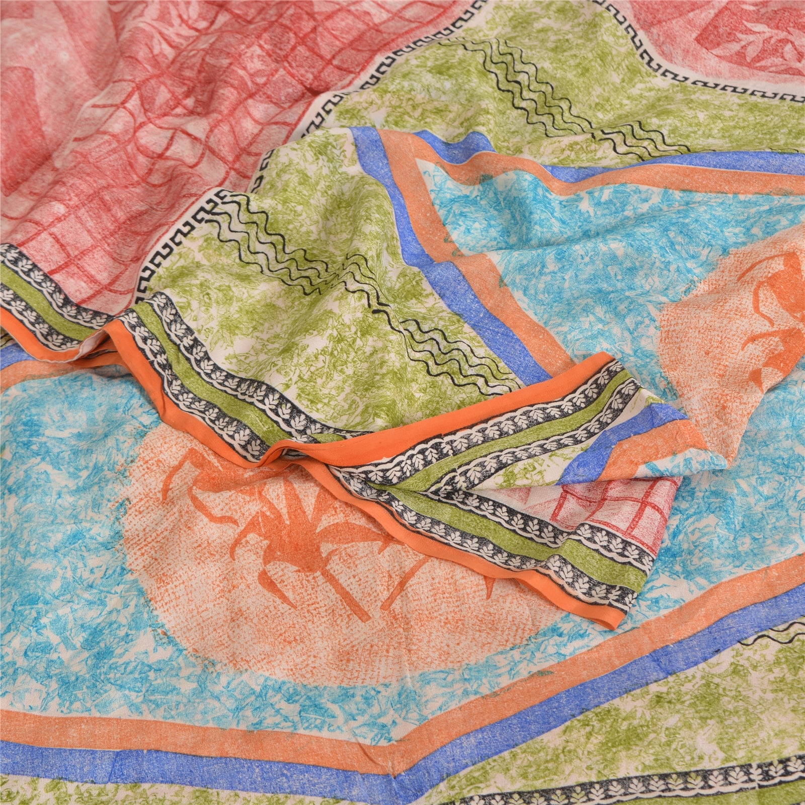 Sanskriti Vintage Sarees Red 100% Pure Crepe Silk Printed Sari 5yd Craft Sustainable Fabric