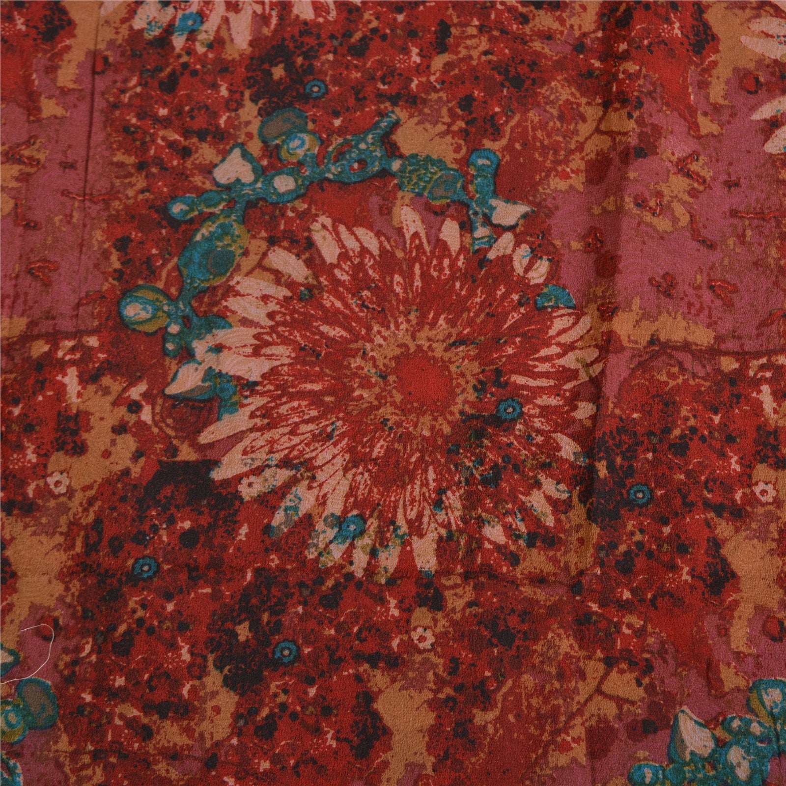 Sanskriti Vintage Sarees Red 100% Pure Crepe Silk Printed Sari Soft Craft Sustainable Fabric