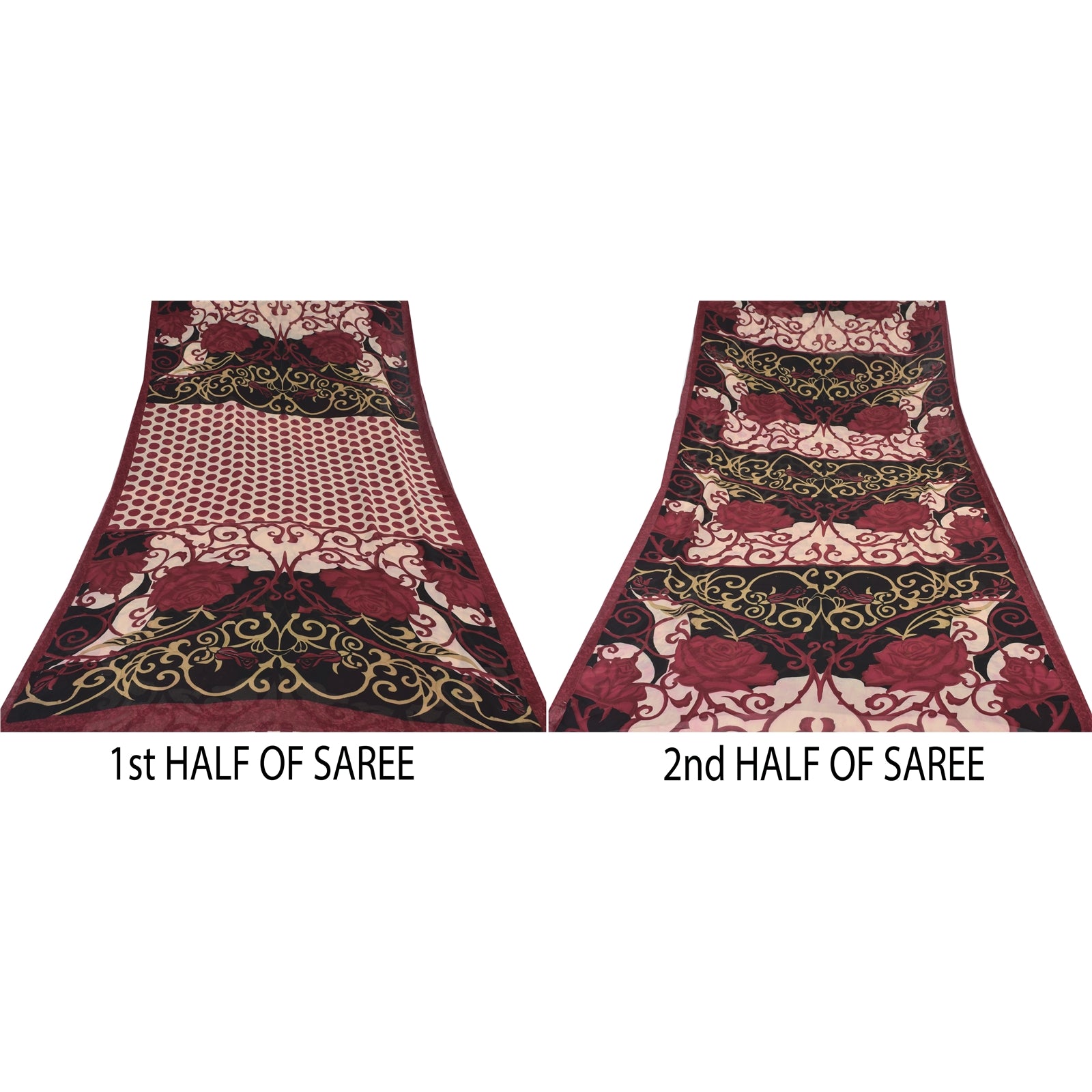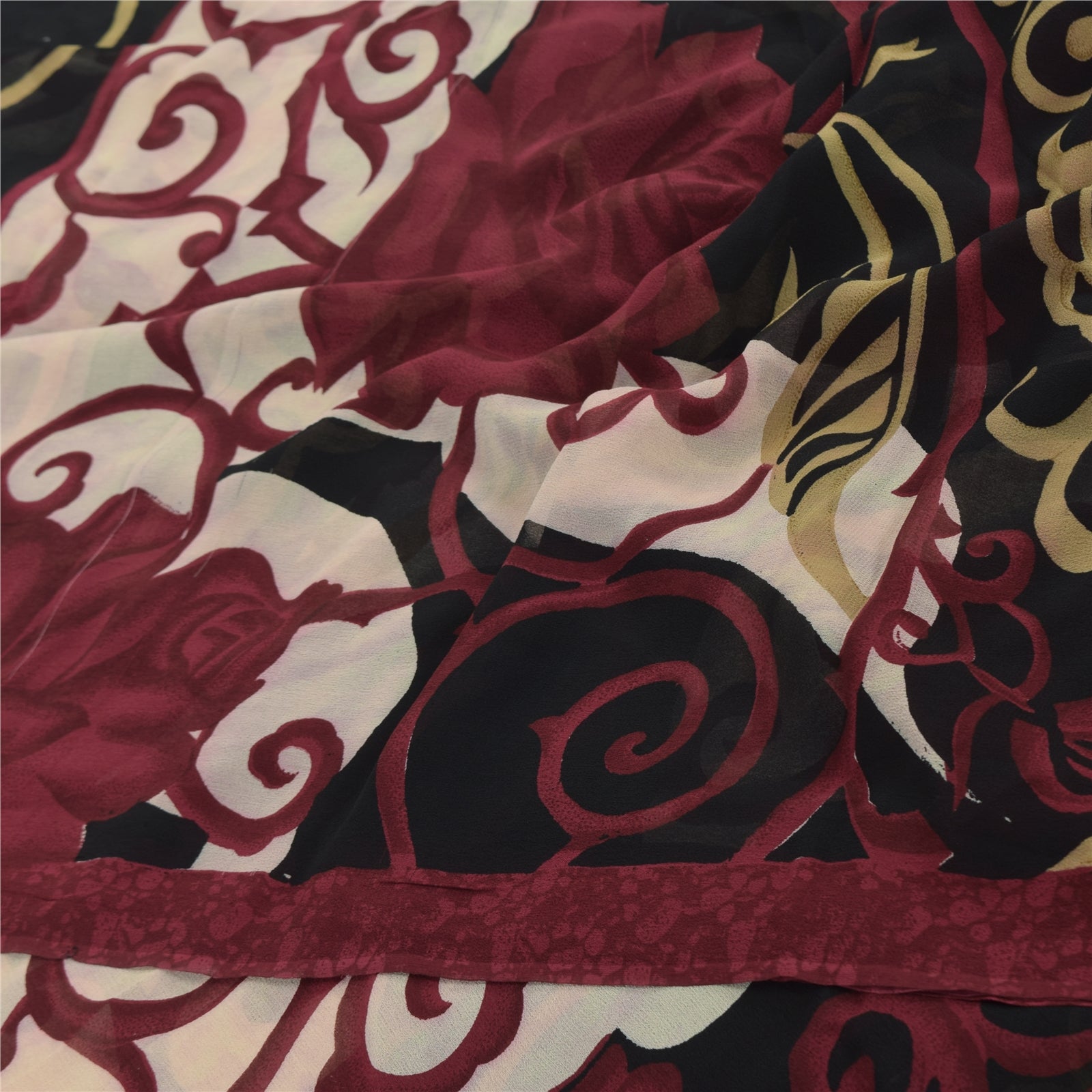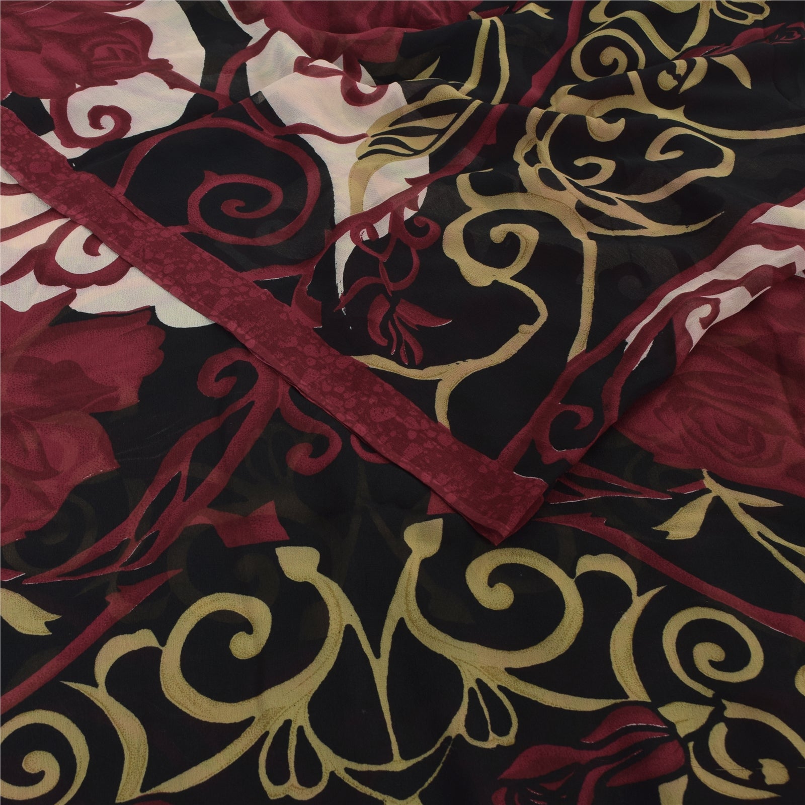 THE ITEM COLOR OR SHADE MAY BE DARKER OR LIGHTER THAN THE PICTURE.' Beautiful red & black colored pure georgette silk printed saree. Pallu & border has printed floral design.. Similar design in center part of saree. Saree has mild stain on it. What is special about this saree? Brilliant design on soft Sustainable Fabric is really enhancing the beauty of the saree. This unique vintage saree can be used for various crafting ideas even if you don't want to use it as a sari. Design a dress, use it as a as window dressing, upholstery, sarongs, throw, dress making and table linen much more. Let your creative juices flow and use this decorated Sustainable Fabric in multiple fashion. International buyers please note: Import duties, taxes, and charges are not included in the item price or postage cost. These charges are the buyer's responsibility. Please check with your country's customs office to determine what these additional costs will be prior to bidding or buying.Buyer will pay custom duty/tax. It is calculated and charged differently by every country. As a seller I do not have any control over it. VAT or sales tax is calculated by the platform at the time of checkout. Customs charge is payable at the time of delivery.