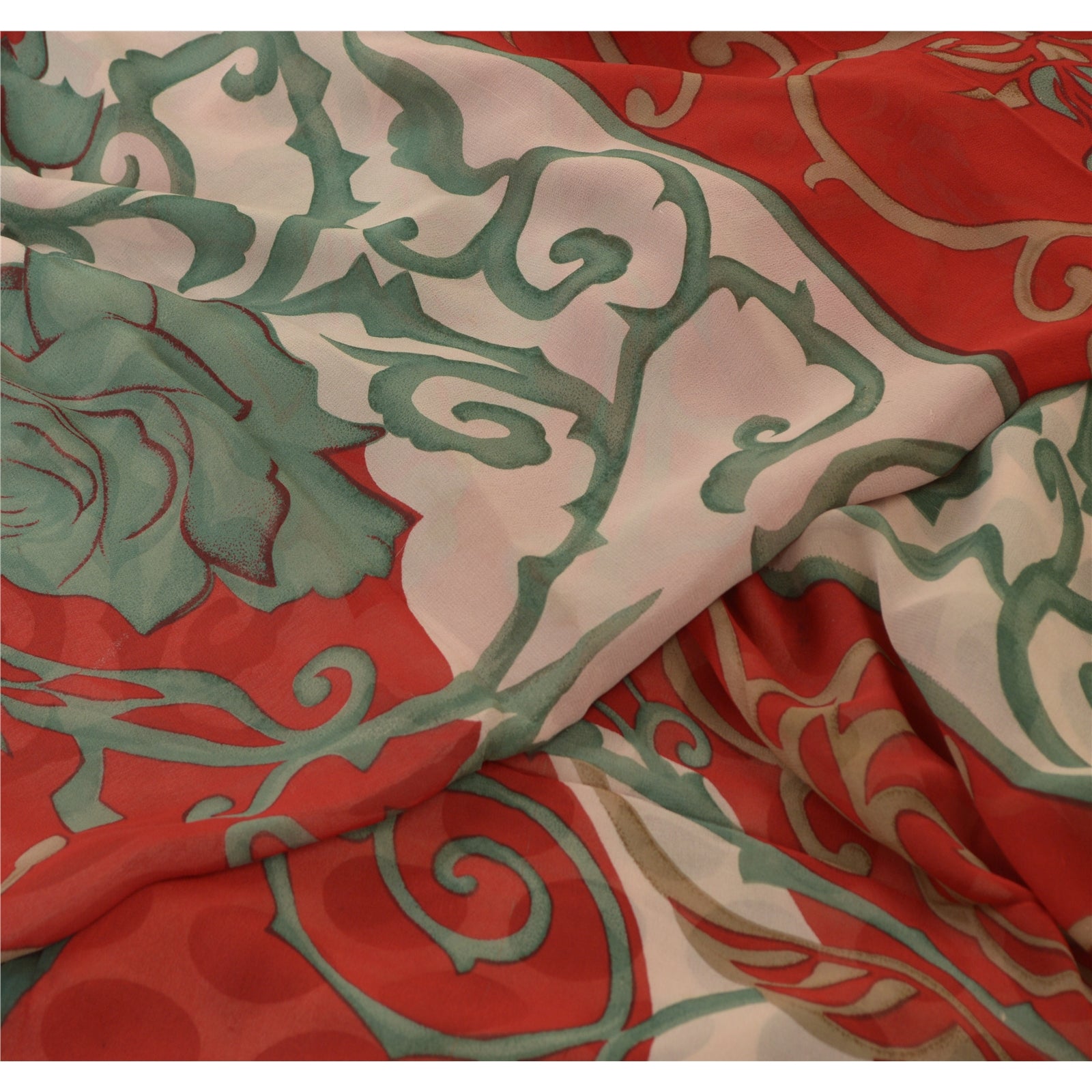 Sanskriti Vintage Sarees Red/Green Pure Georgette Silk Print Sari Craft Fabric