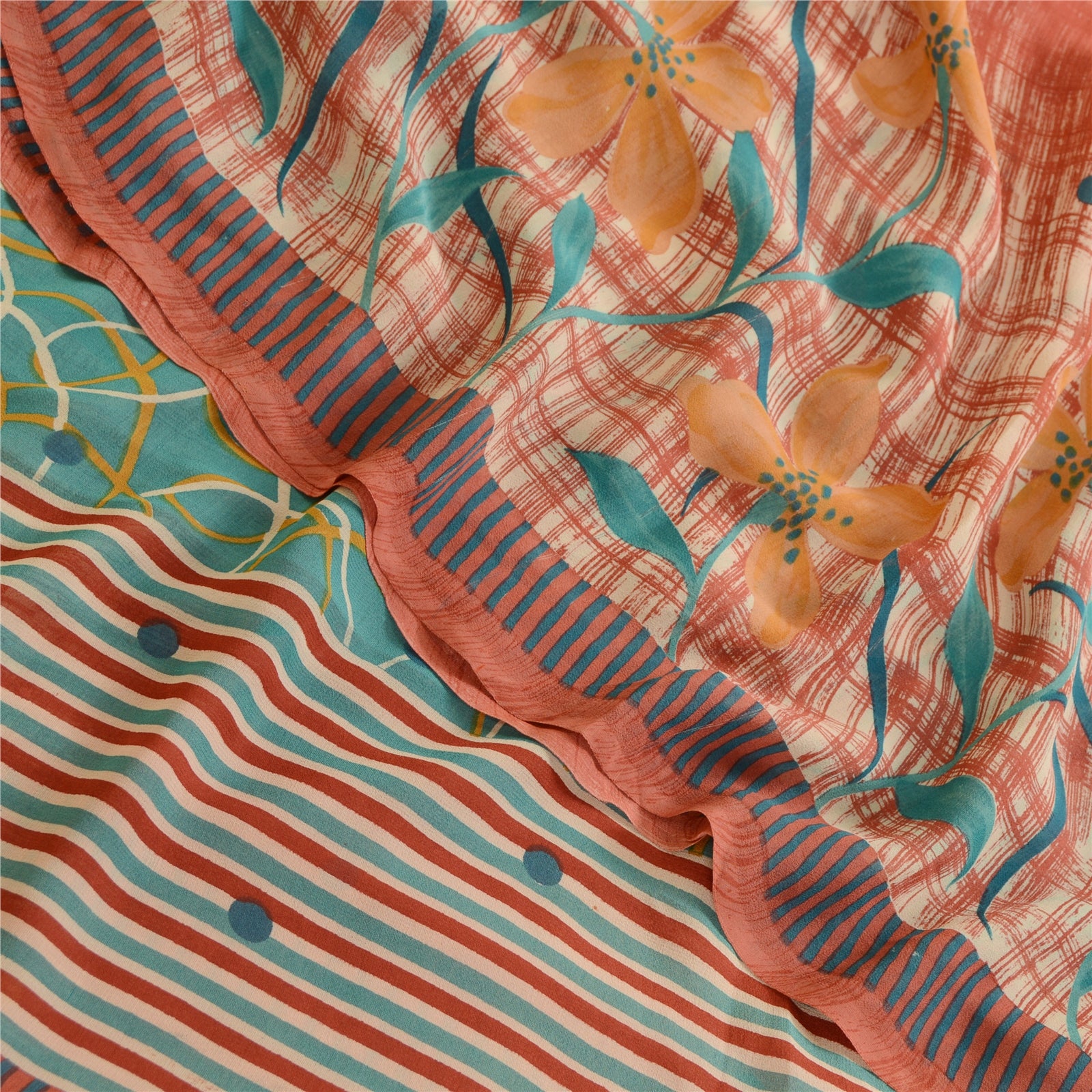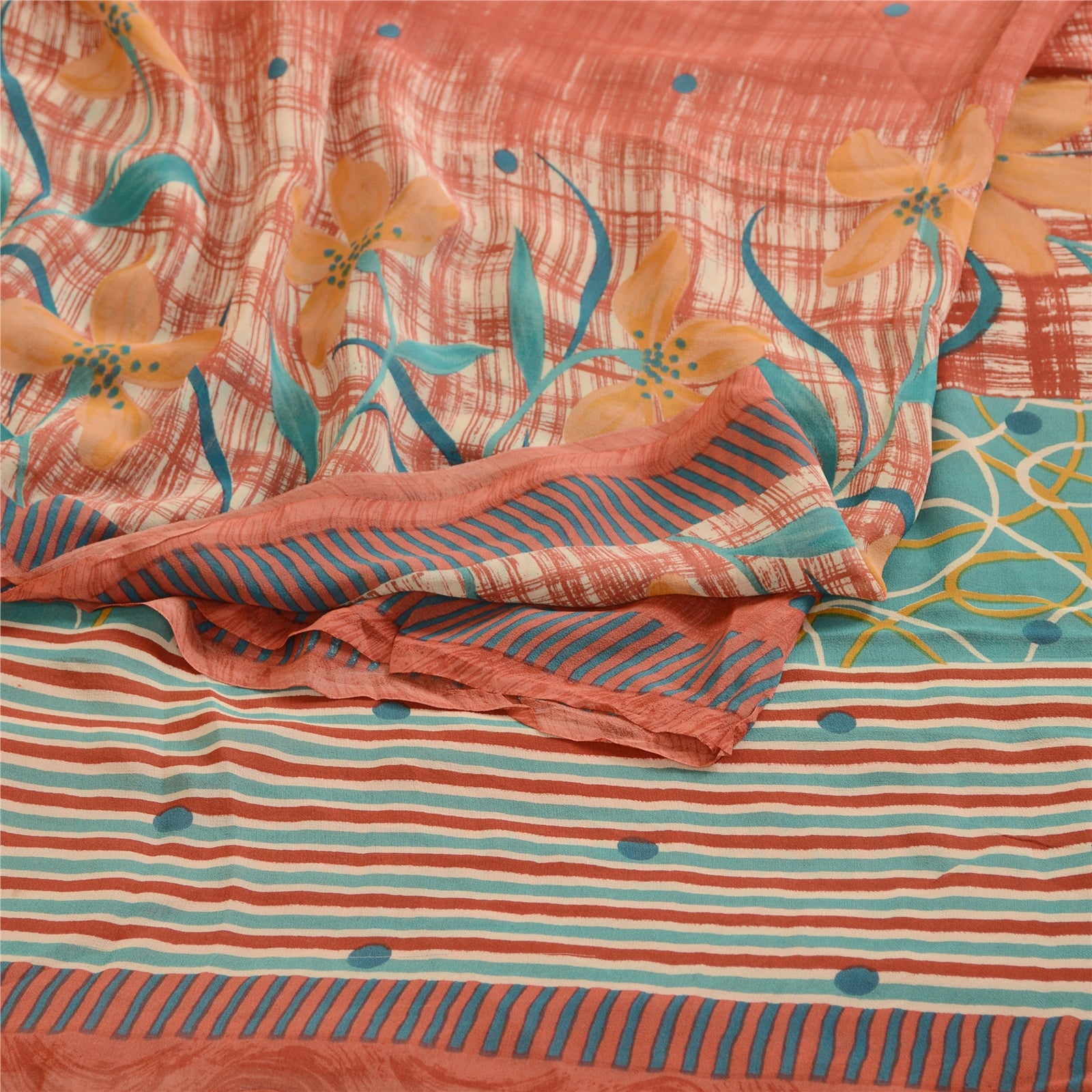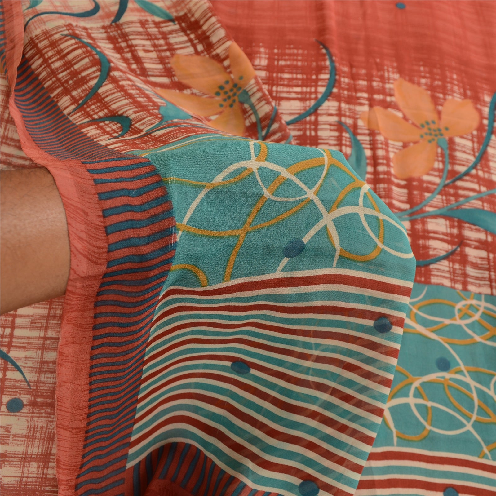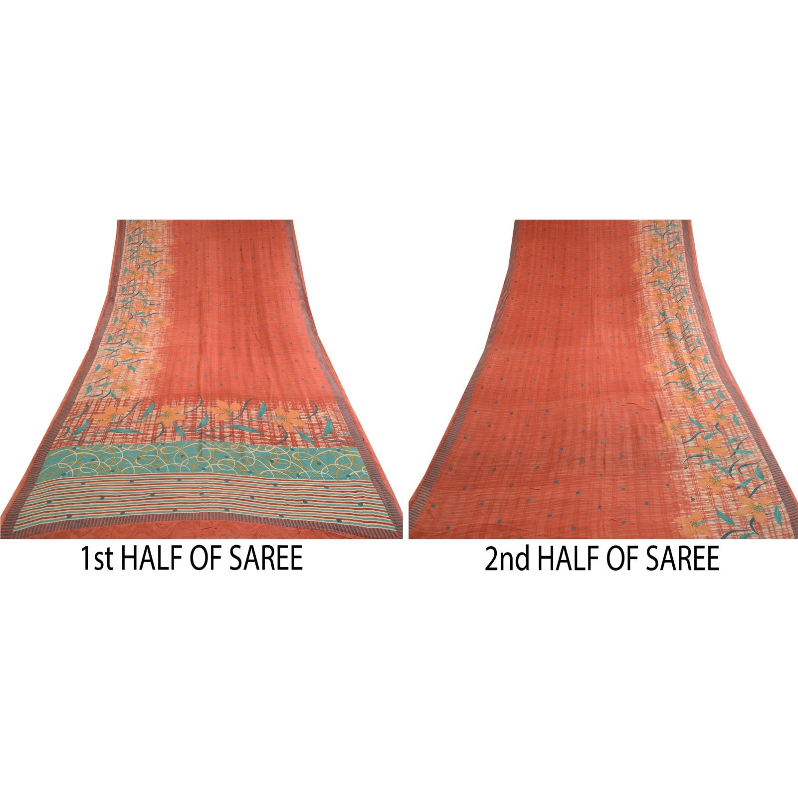 Sanskriti Vintage Sarees Red Pure Georgette Silk Printed Sari 5YD Craft Sustainable Fabric