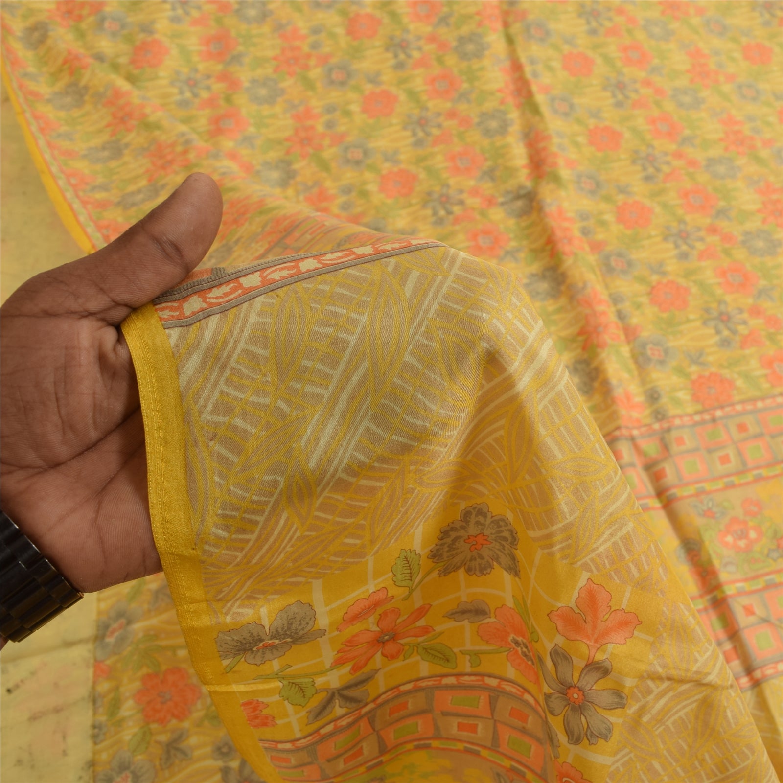 Sanskriti Vintage Sarees Yellow Indian Pure Silk Printed Sari 5+yd Craft Fabric