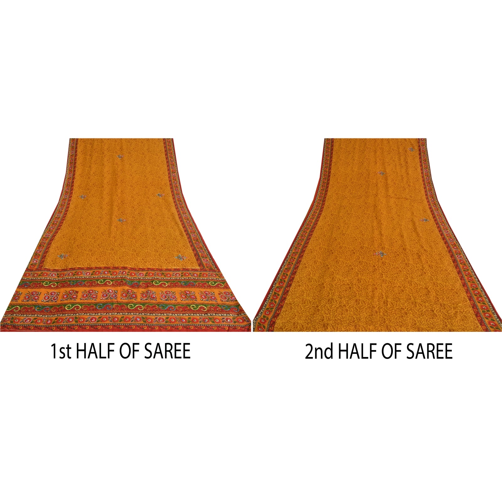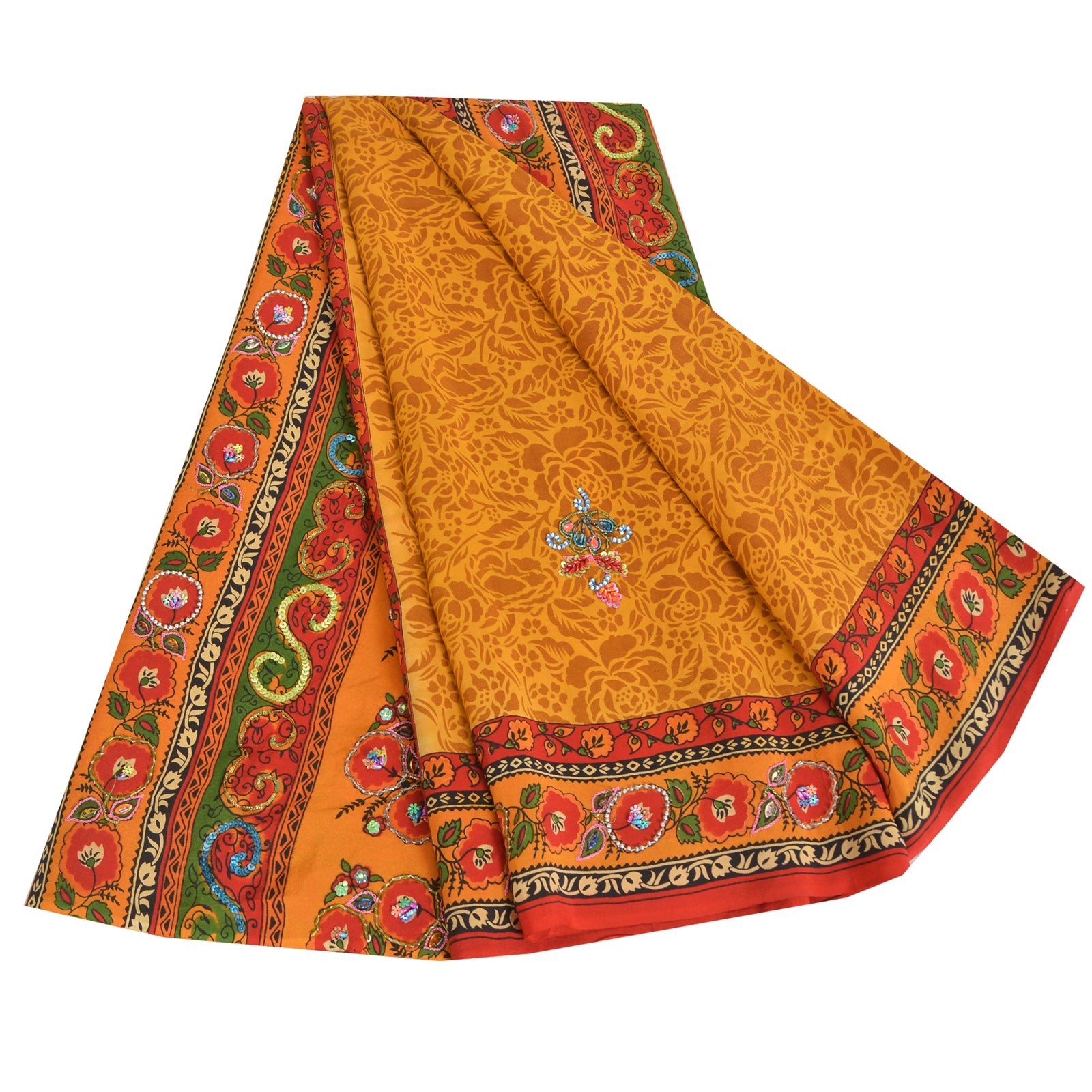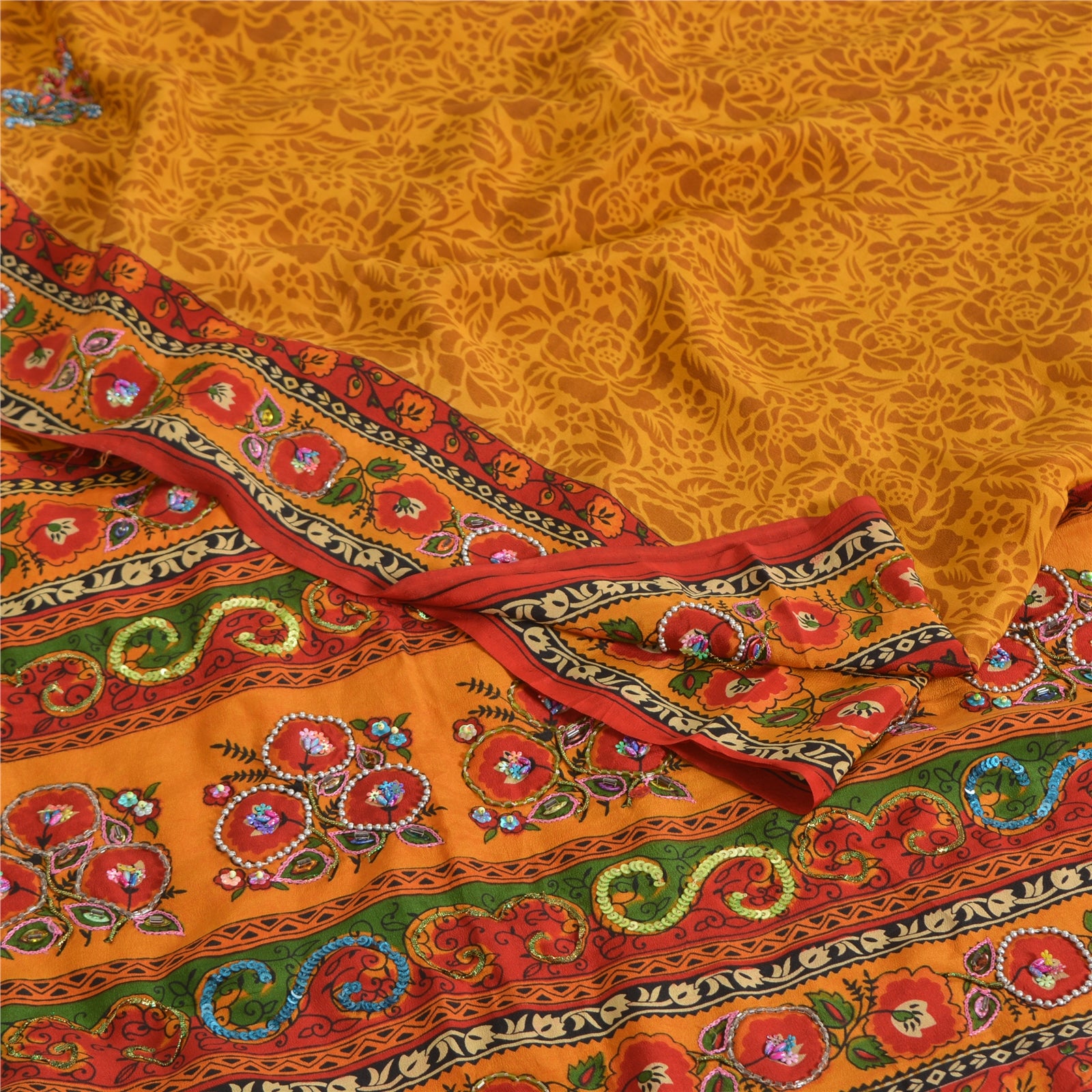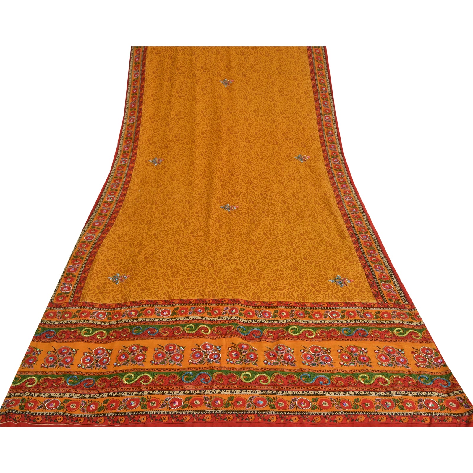 THE ITEM COLOR OR SHADE MAY BE DARKER OR LIGHTER THAN THE PICTURE.' • Beautiful yellow colored printed & hand embroidered pure crepe silk saree . • Pallu & Border has printed floral design with thread, sequins & beaded work. • Similar work in center part of sari . This unique vintage saree can be used for various crafting ideas even if you don't want to use it as a sari. Design a dress, use it as a as window dressing, upholstery, sarongs, throw, dress making and table linen much more. Let your creative juices flow and use this decorated Sustainable Fabric in multiple fashion. International buyers please note: Import duties, taxes, and charges are not included in the item price or postage cost. These charges are the buyer's responsibility. Please check with your country's customs office to determine what these additional costs will be prior to bidding or buying.Buyer will pay custom duty/tax. It is calculated and charged differently by every country. As a seller I do not have any control over it. VAT or sales tax is calculated by the platform at the time of checkout. Customs charge is payable at the time of delivery.