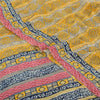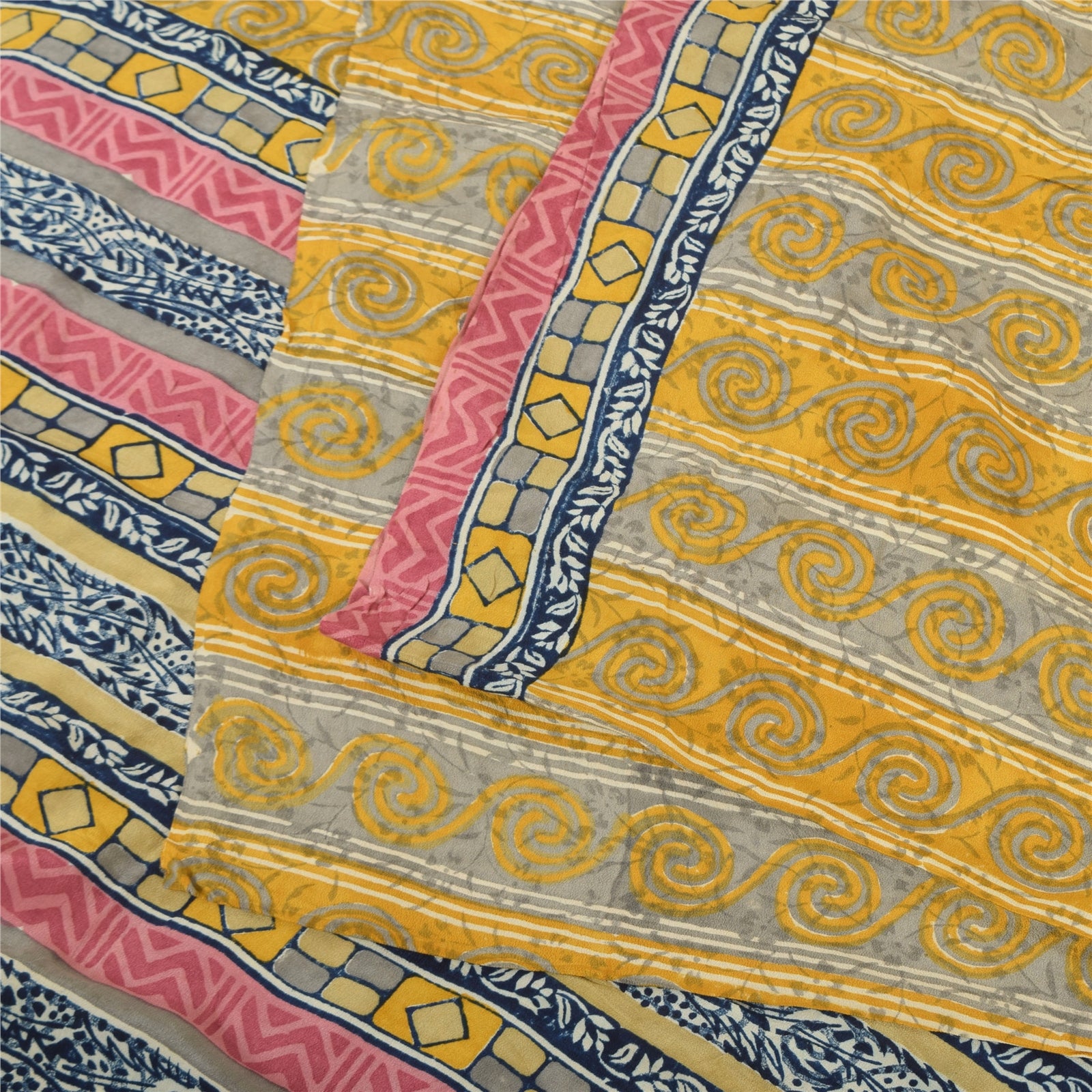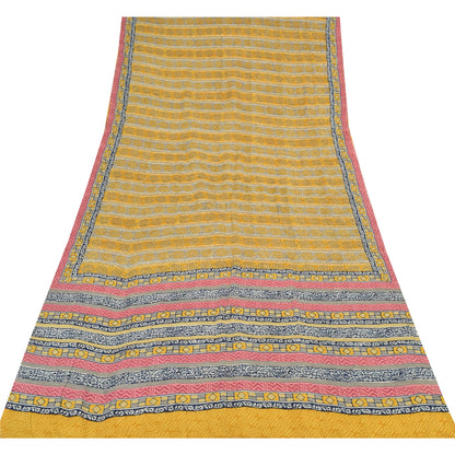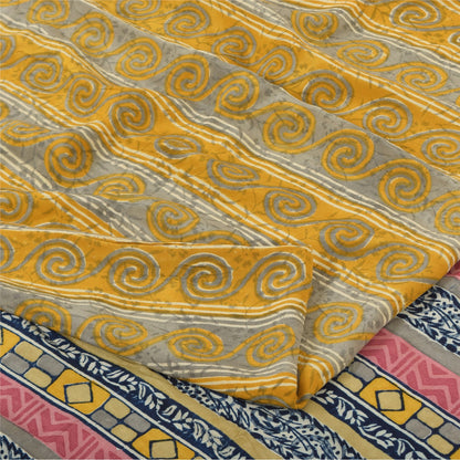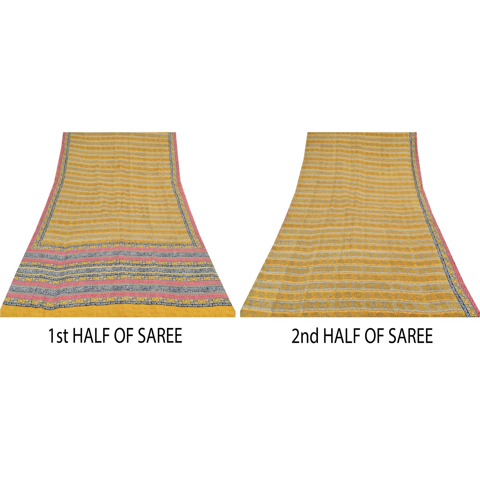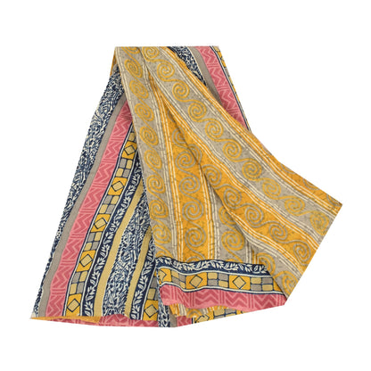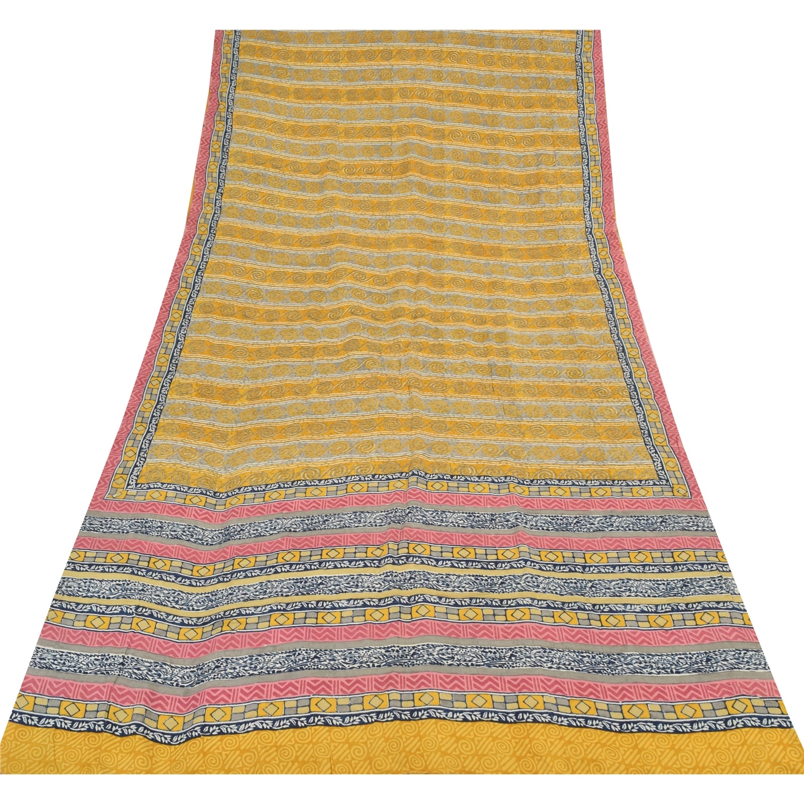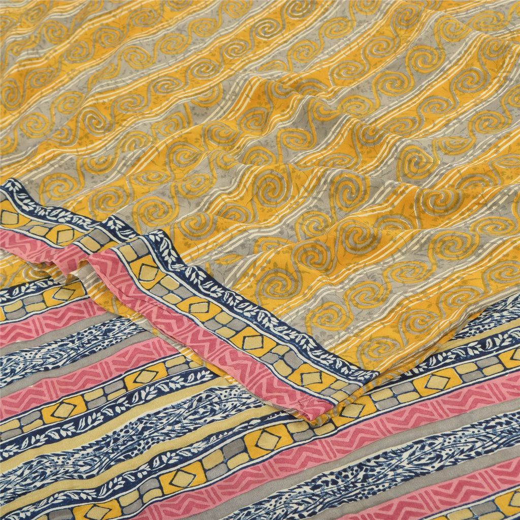 Sanskriti Vintage Sarees Yellow Pure Crepe Silk Printed Sari 6yd Craft Sustainable Fabric