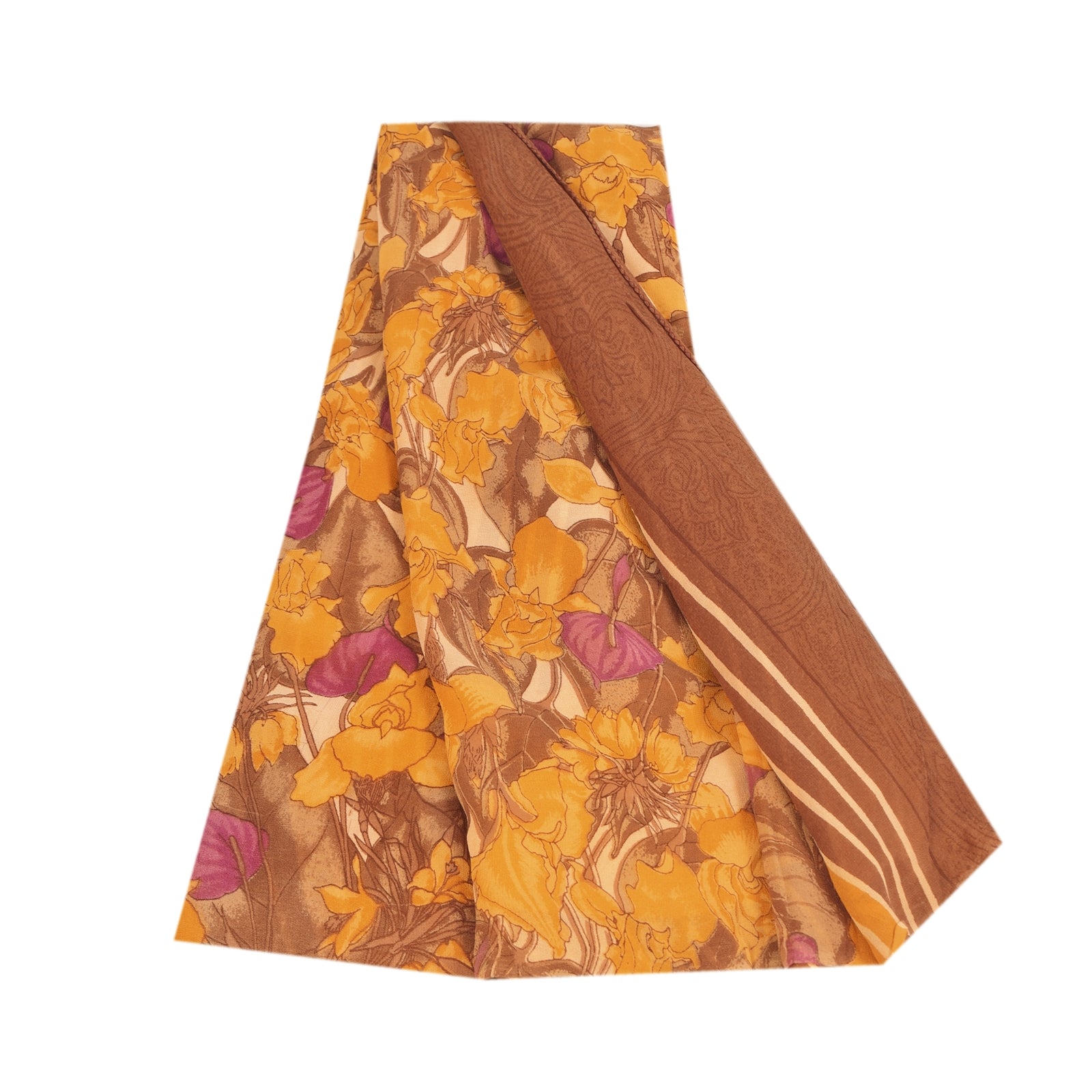 Sanskriti Vintage Sarees Yellow Pure Georgette Silk Print Sari 5+yd Craft Sustainable Fabric