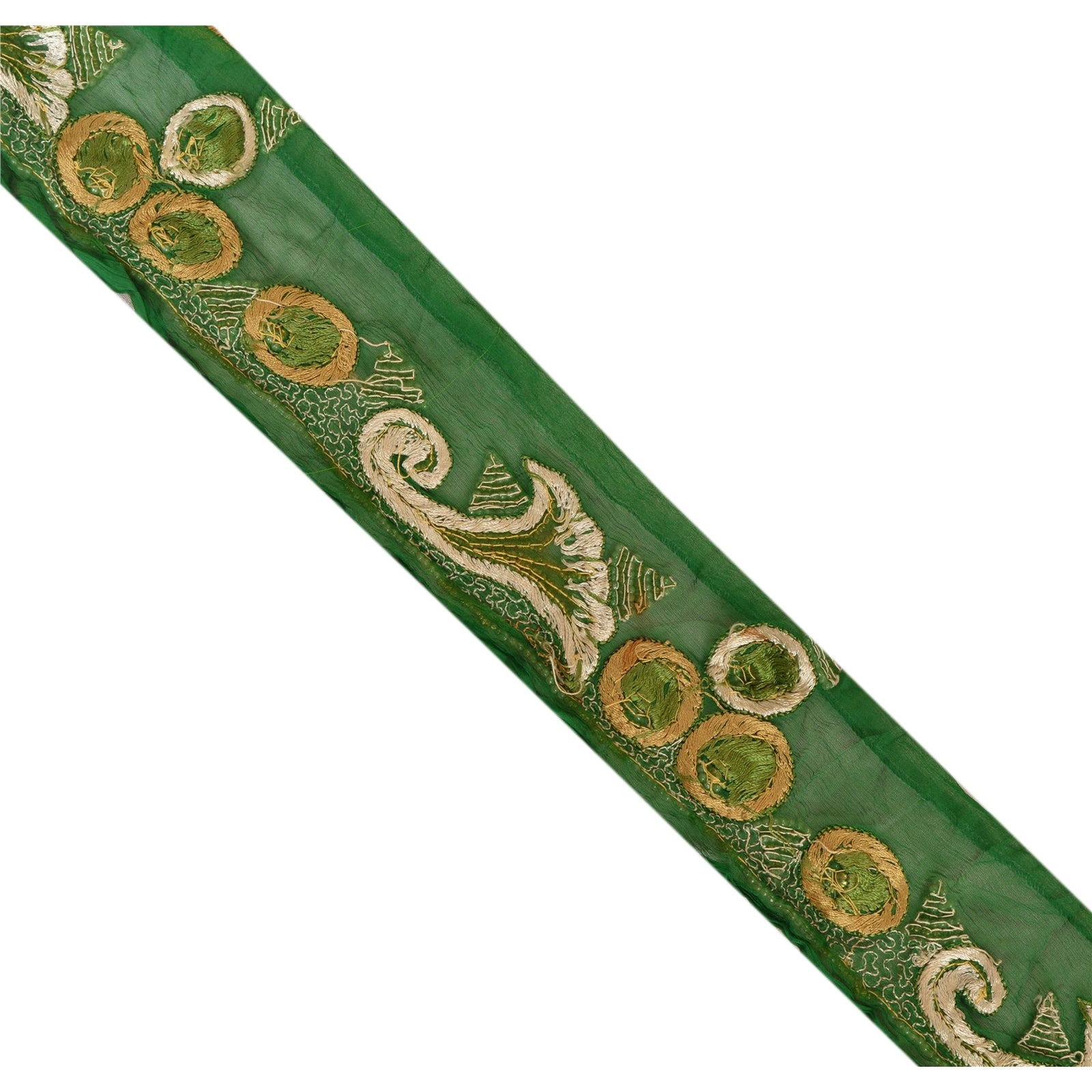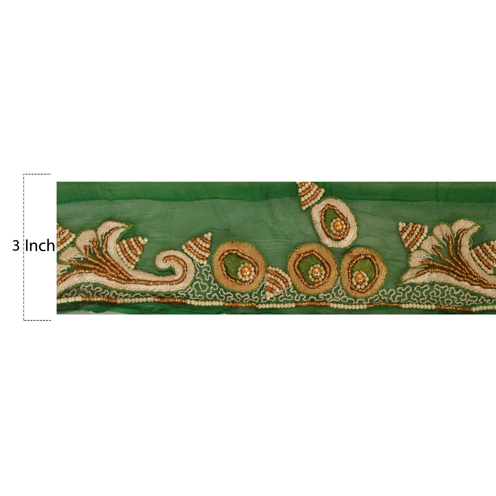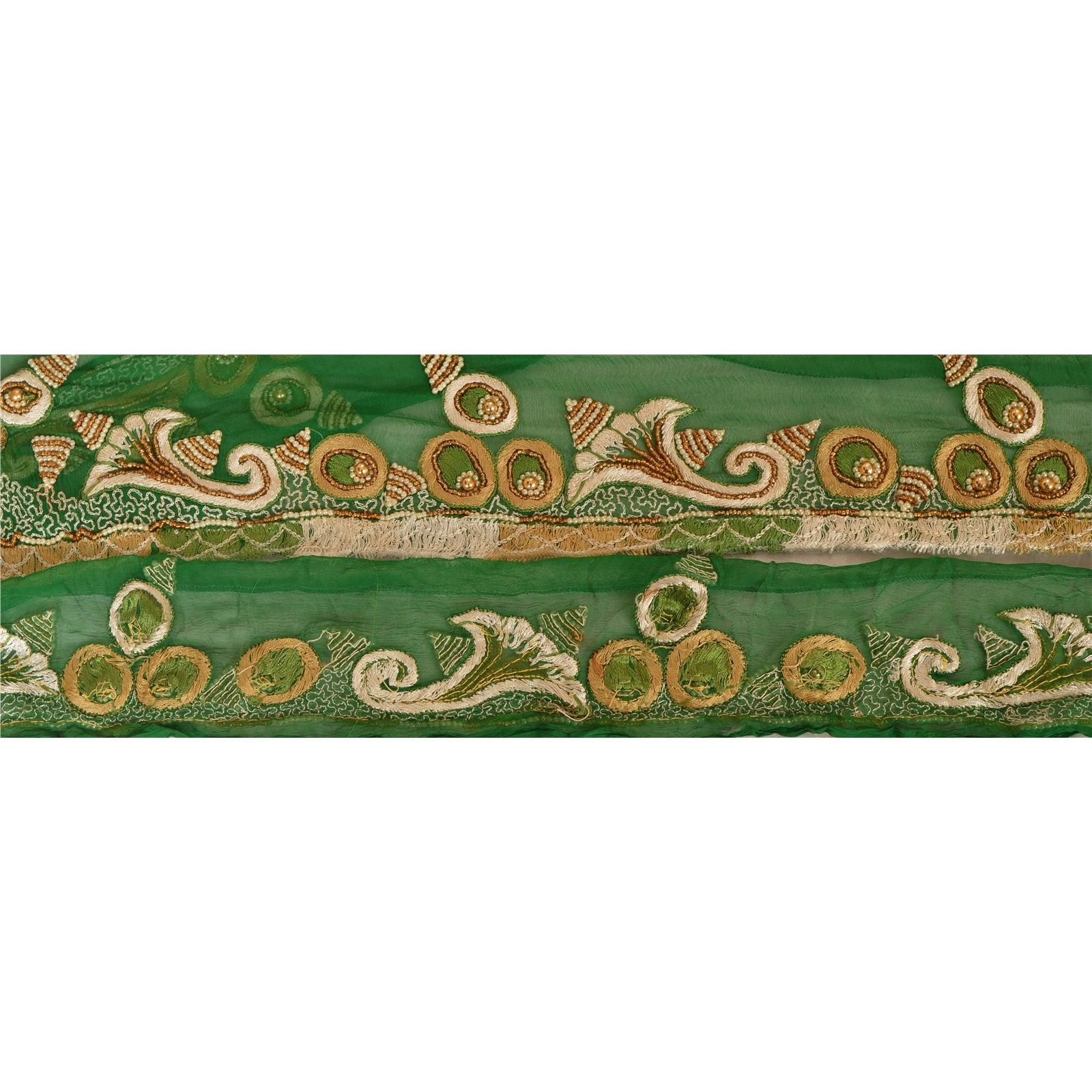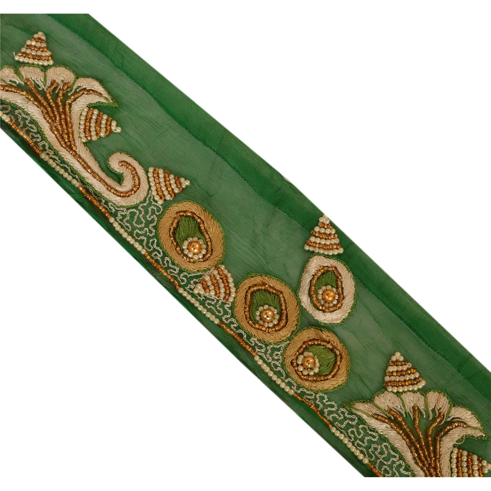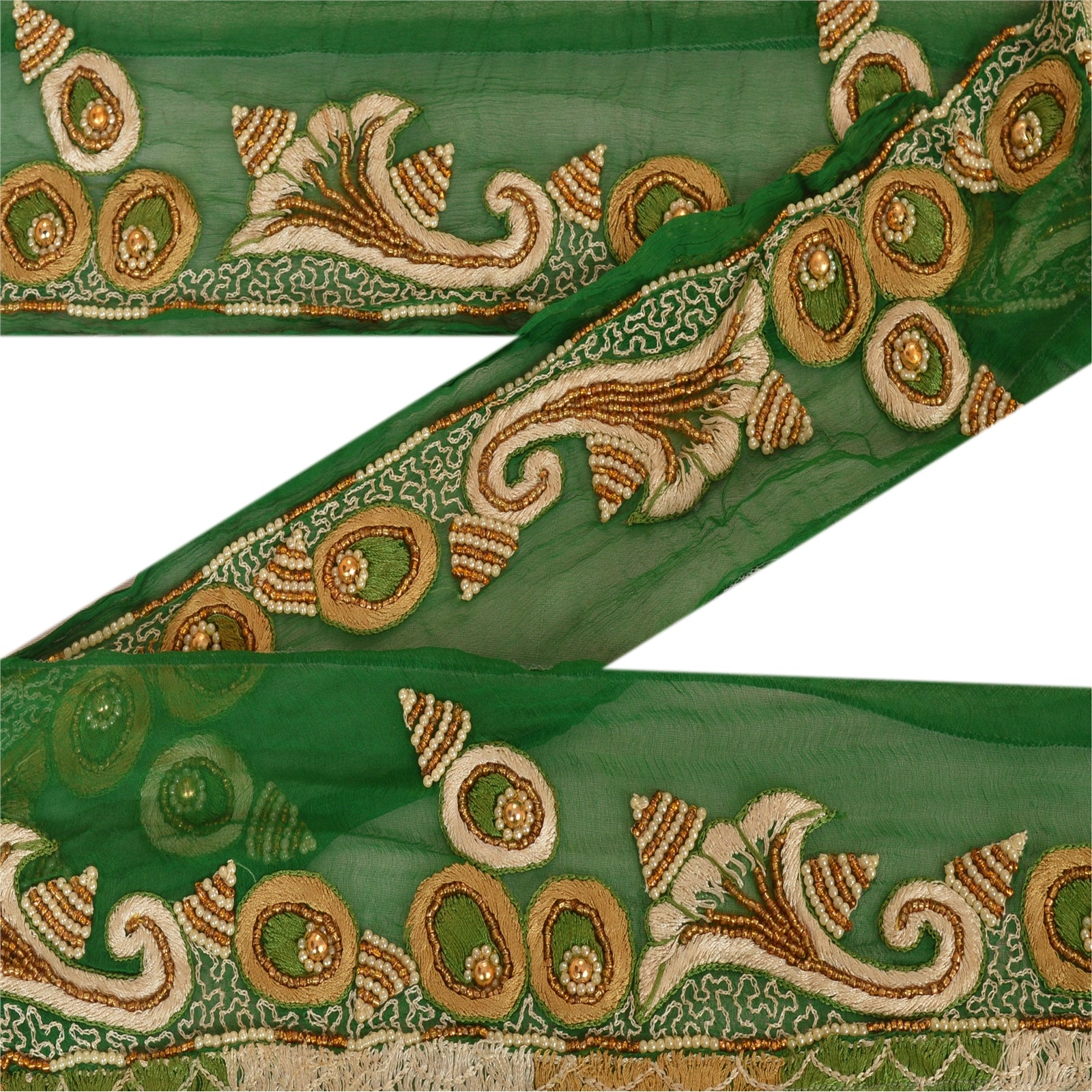 Sanskriti Vintage Sari Border 1 Yd Craft Green Trim Hand Beaded Sewing Lace