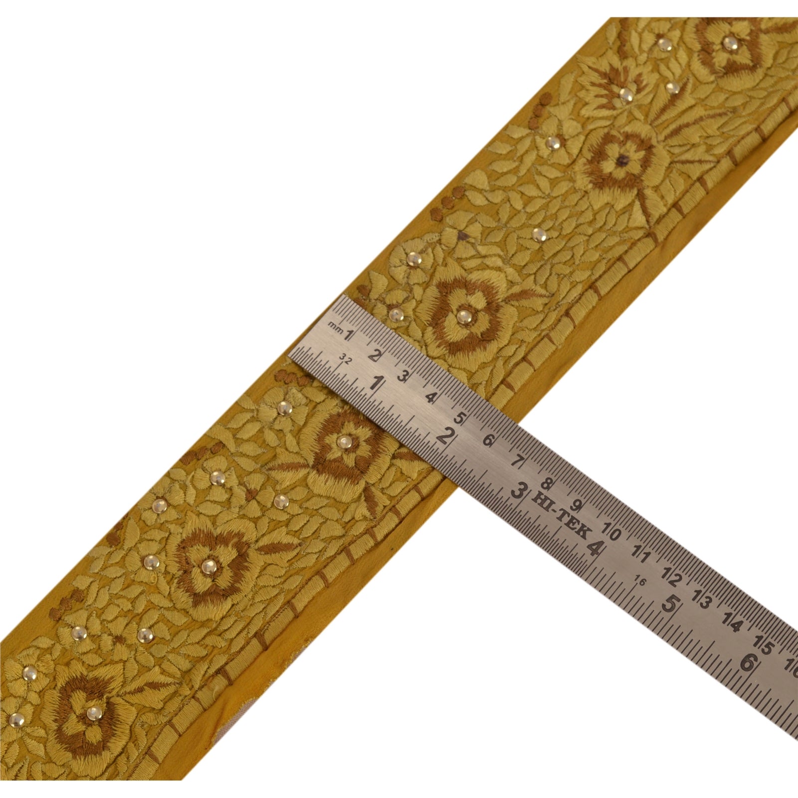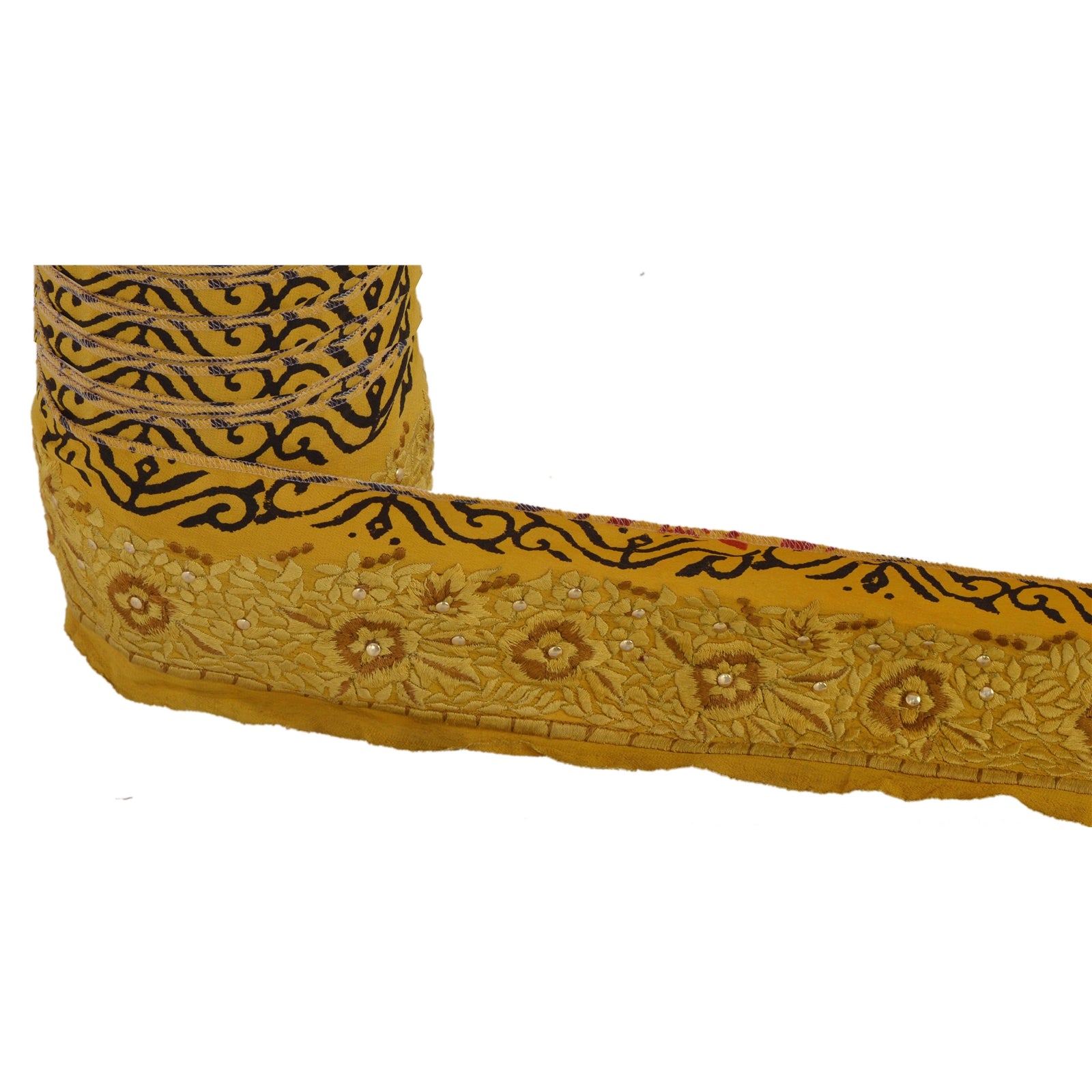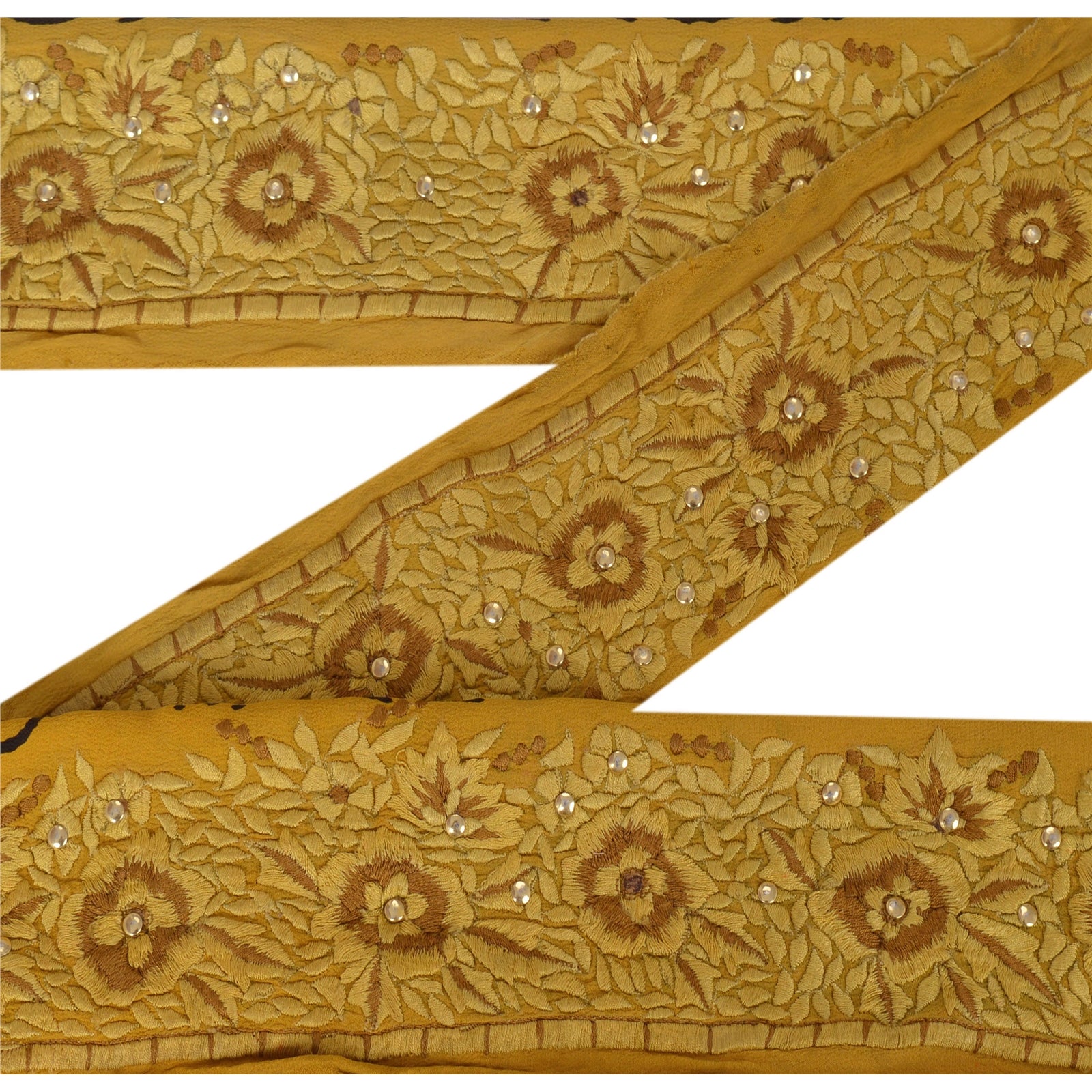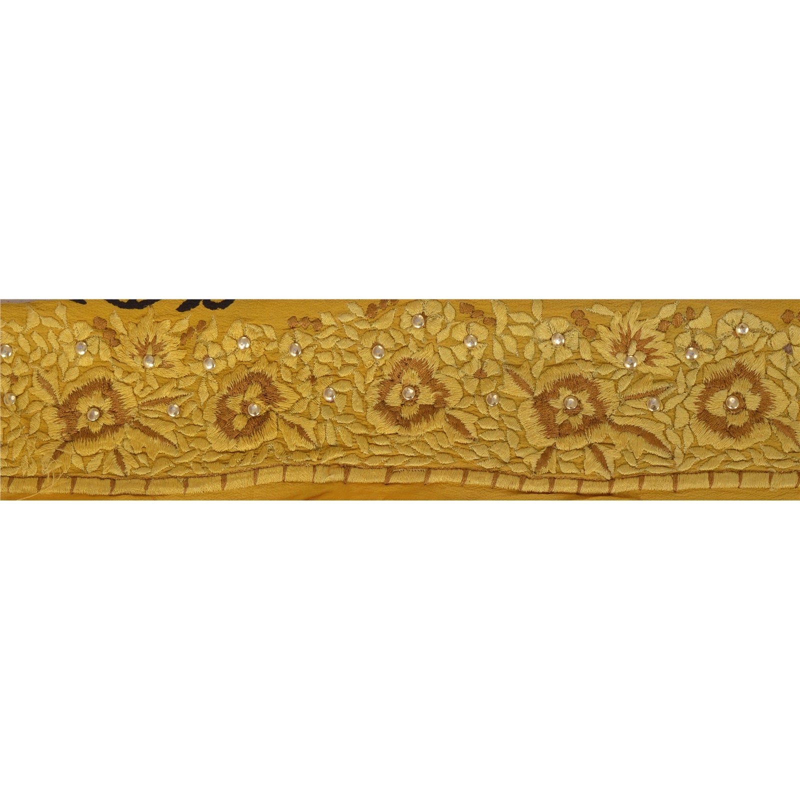 Sanskriti Vintage Sari Border Craft Green Trim Embroidered Sewing 1 Yd Lace