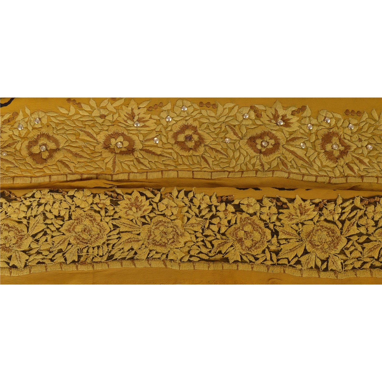Fabulous crepe silk embroidered sari border in green color highlighting thread work. Border has beautiful floral patterns painstakingly embroidered with green thread work . Further you can see fine detailing with golden sequins work . WOW!! an awesome one of a kind versatile border. 1 Quantity = 1 Yard