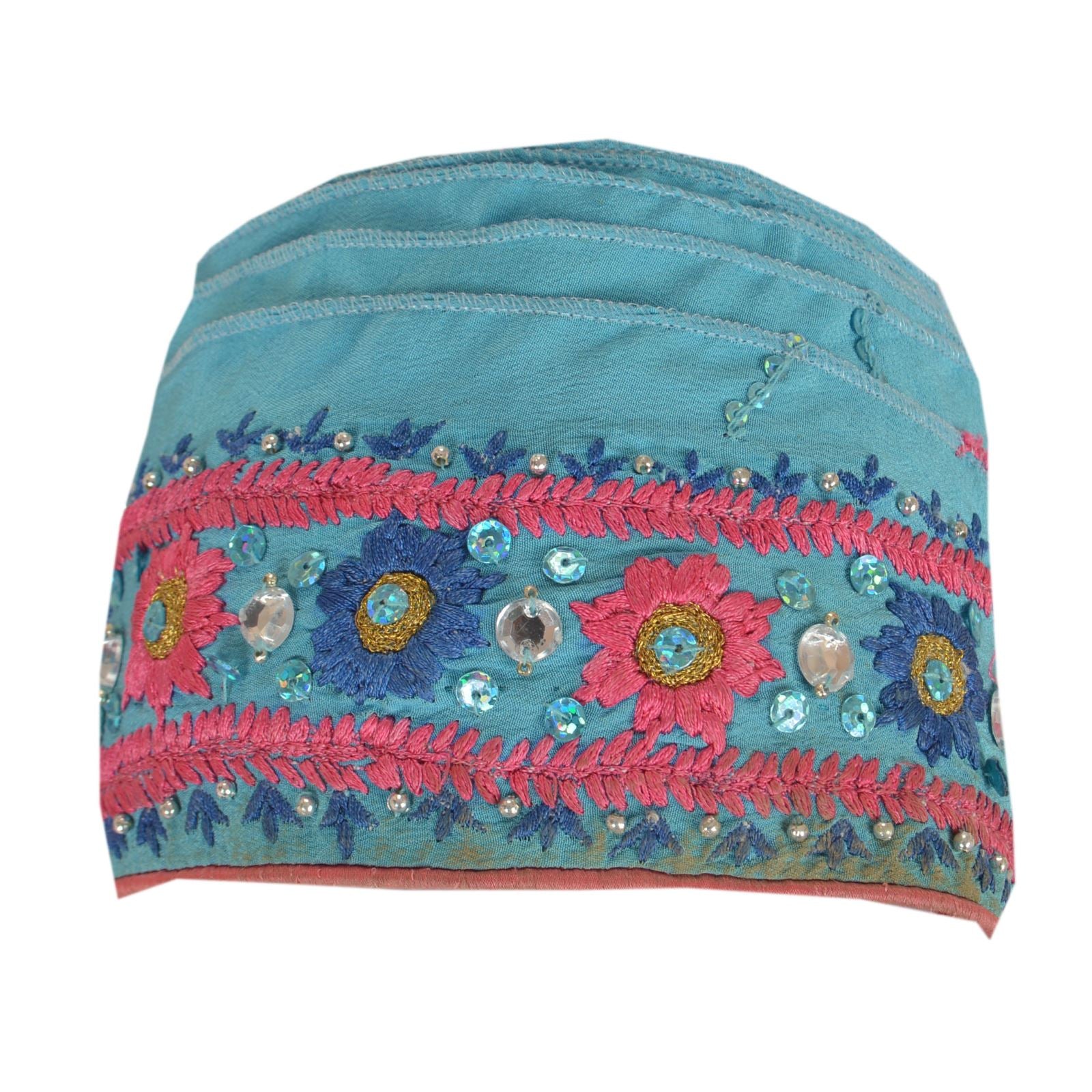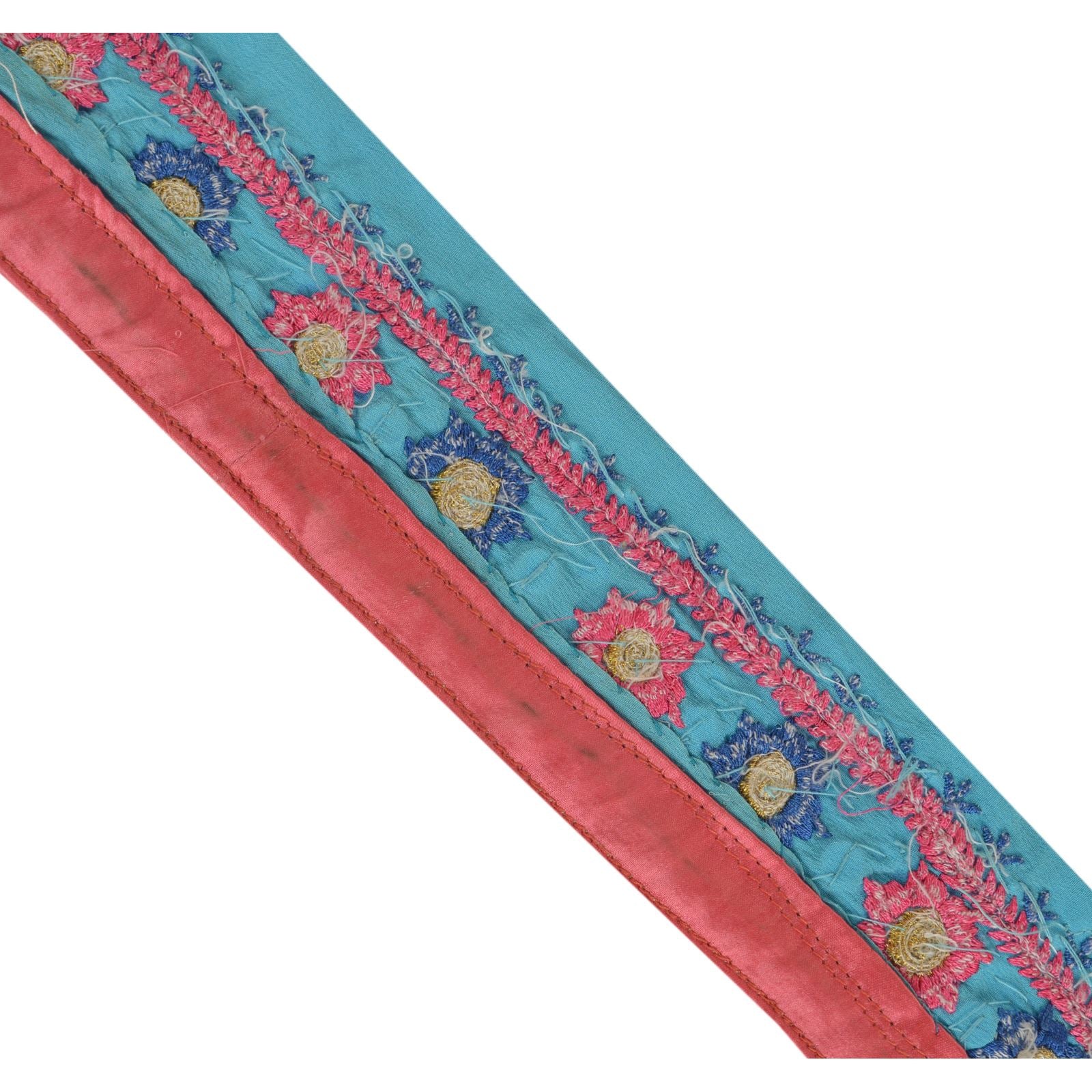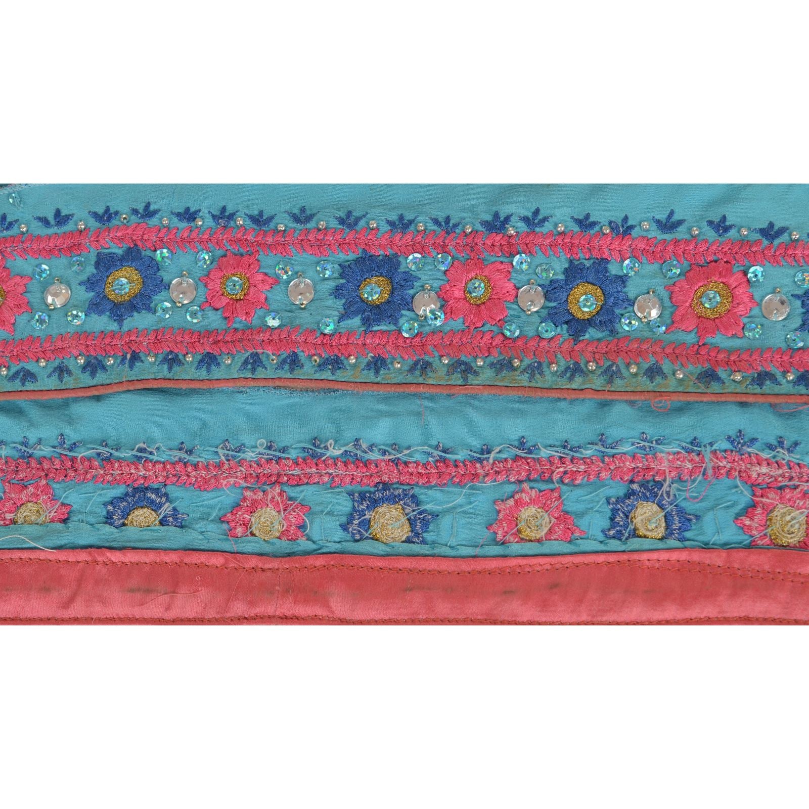 Sanskriti Vintage Sari Border Hand Beaded 1 Yd Trim Sewing Blue Rhinestone Lace
