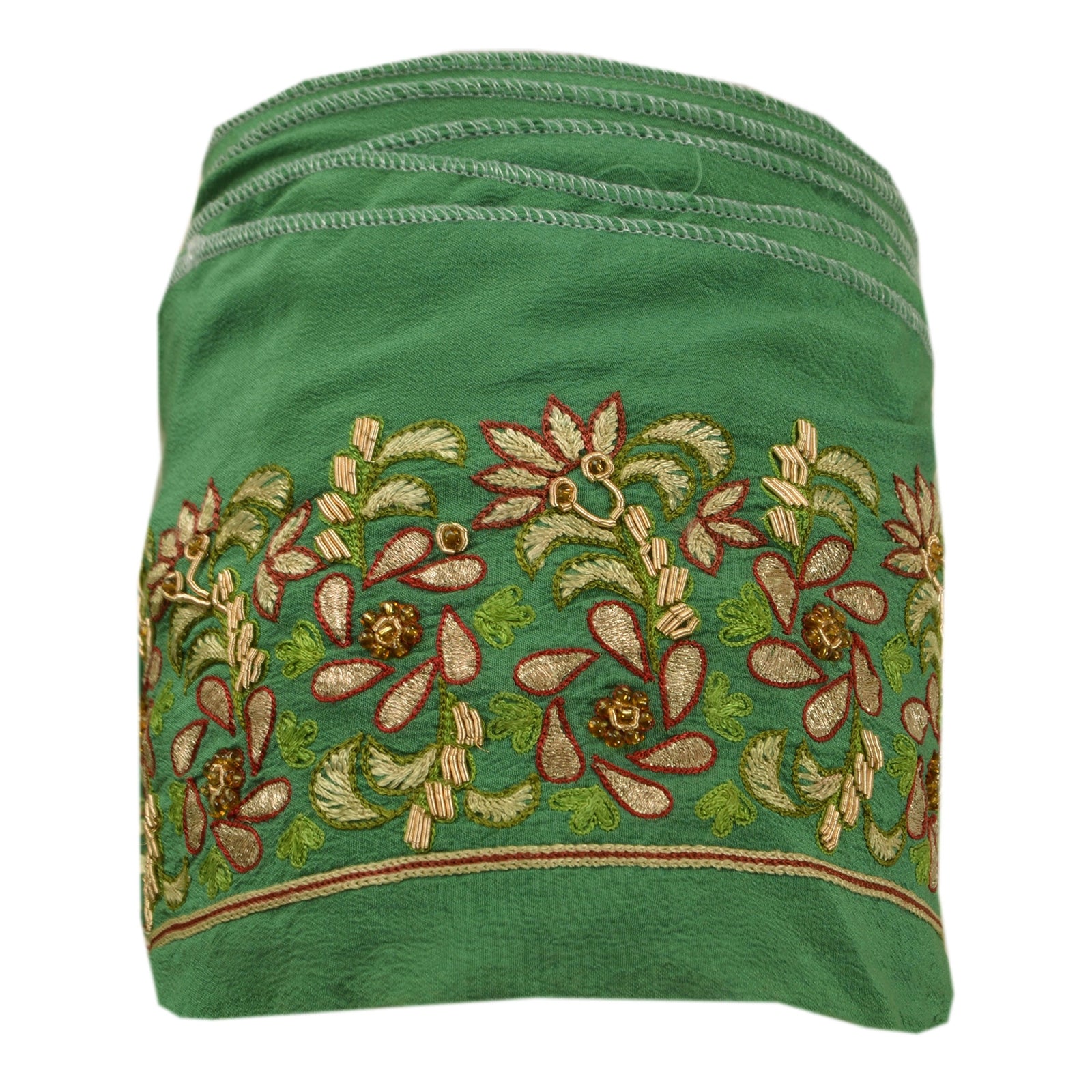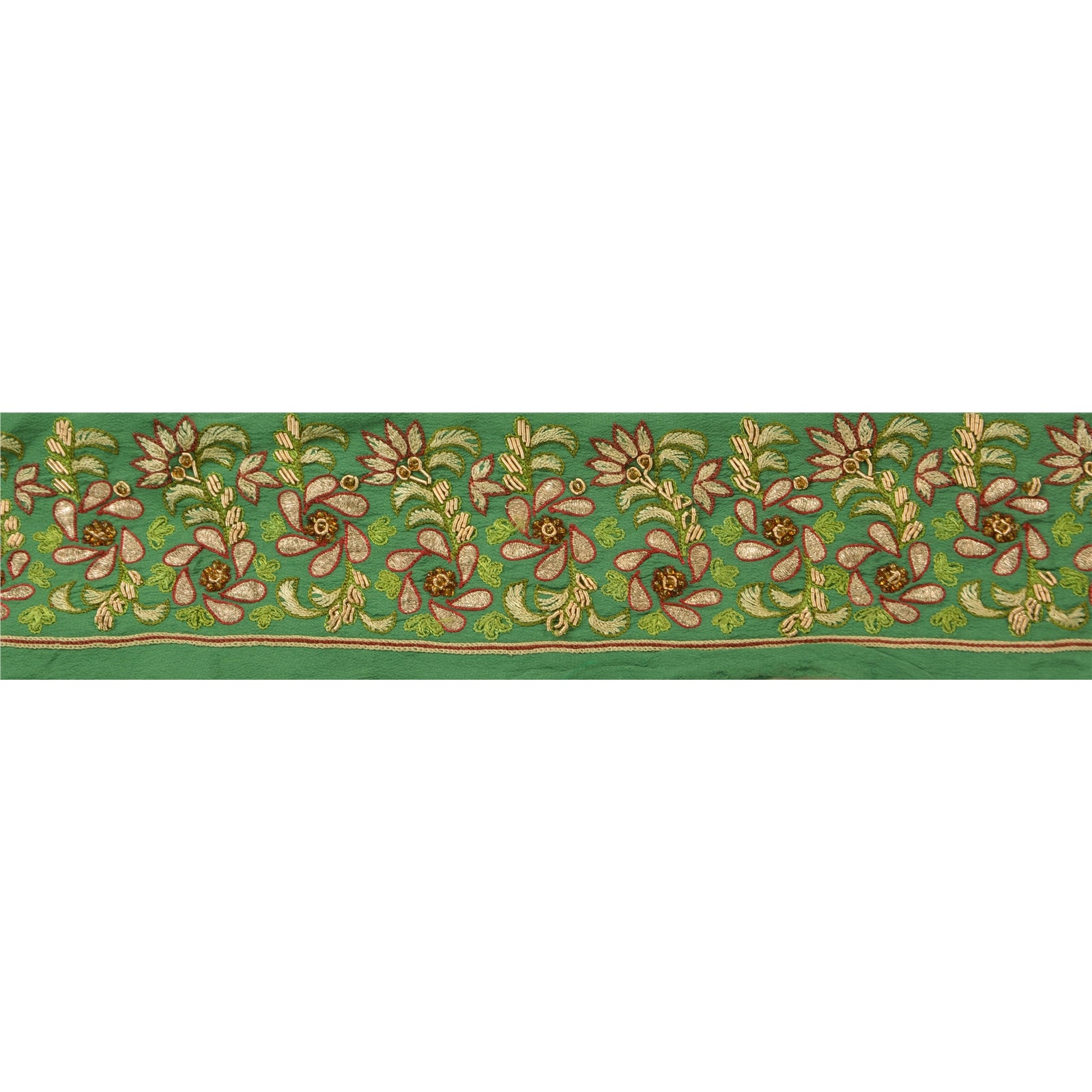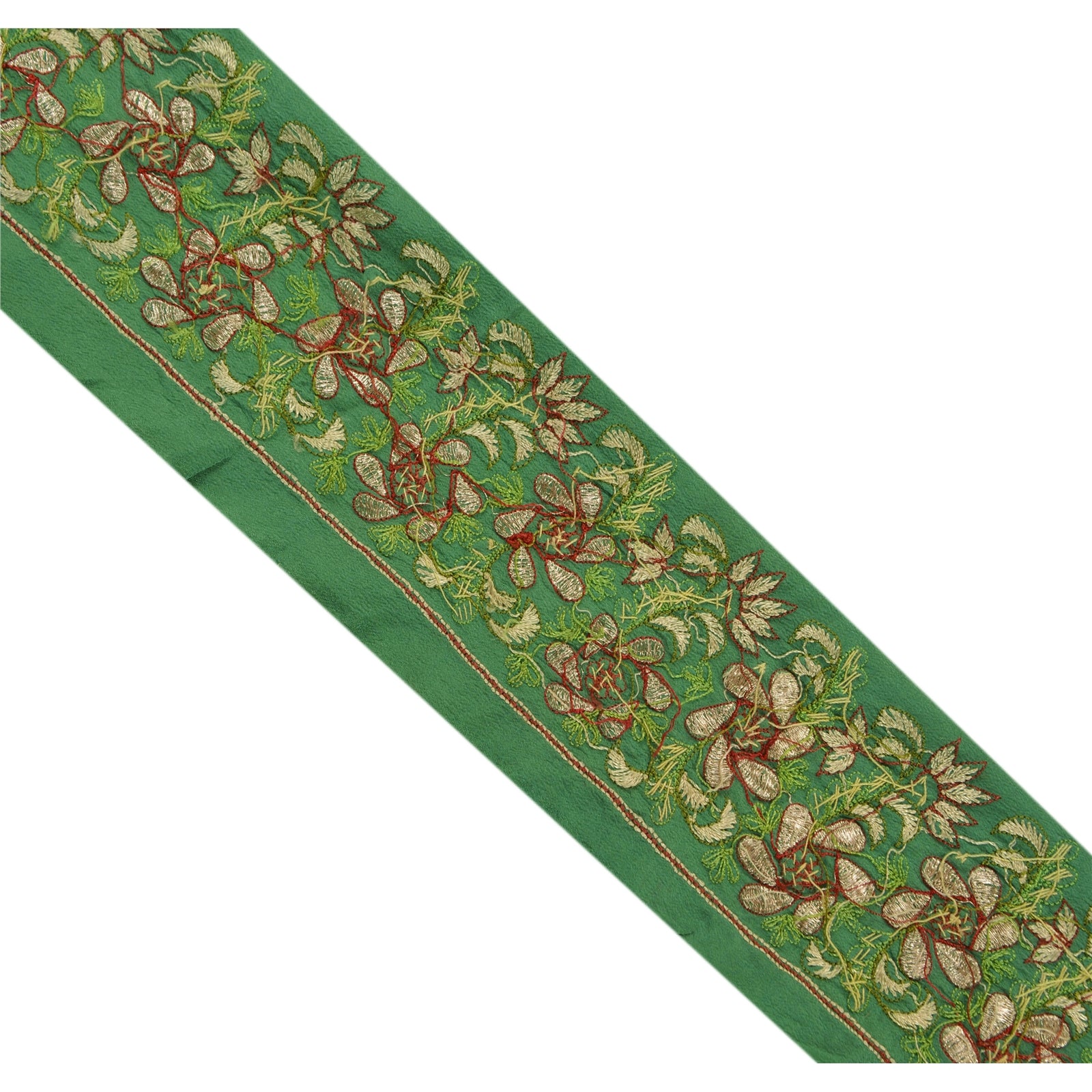 Sanskriti Vintage Sari Border Hand Beaded 1Yd Indian Trim Sewing Green Zari Lace