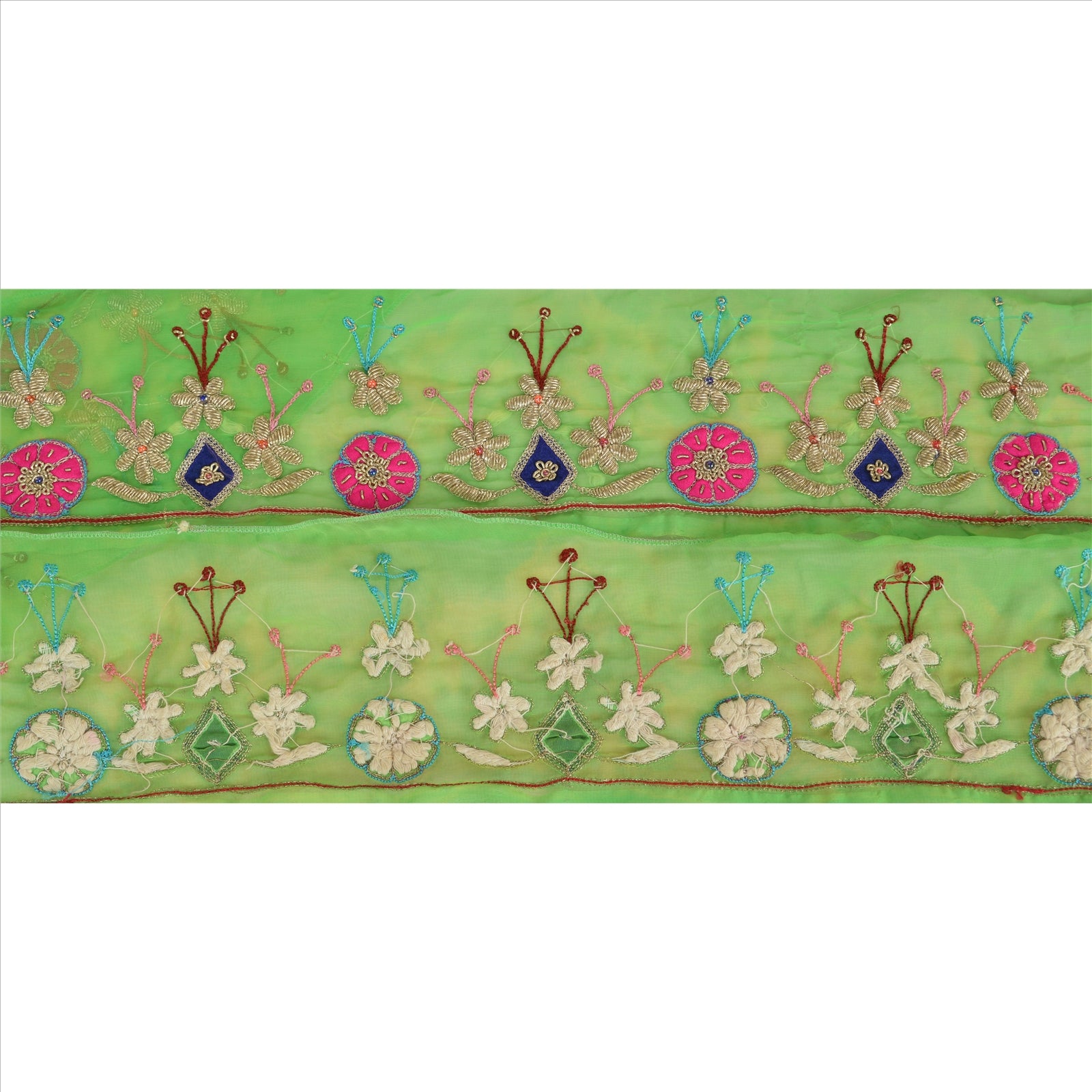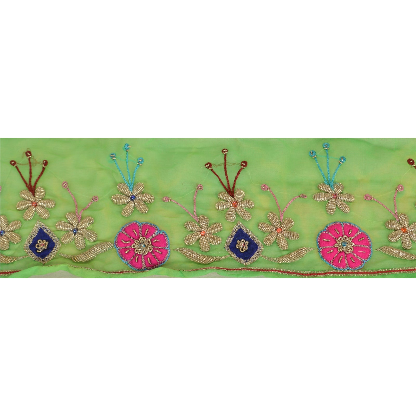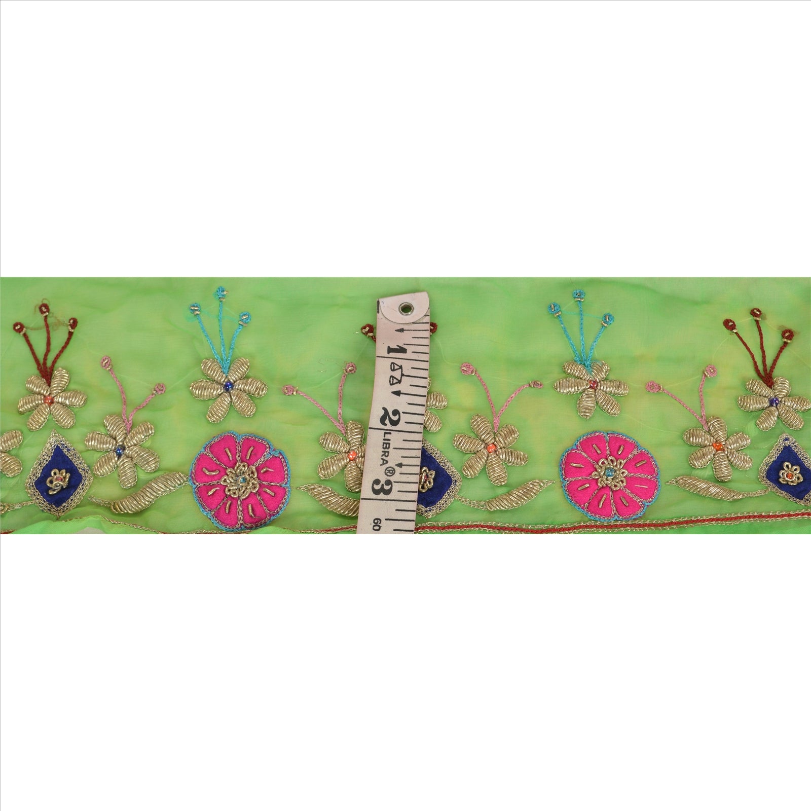 Sanskriti Vintage Sari Border Hand Beaded 1 Yd Indian Trim Sewing Green Lace