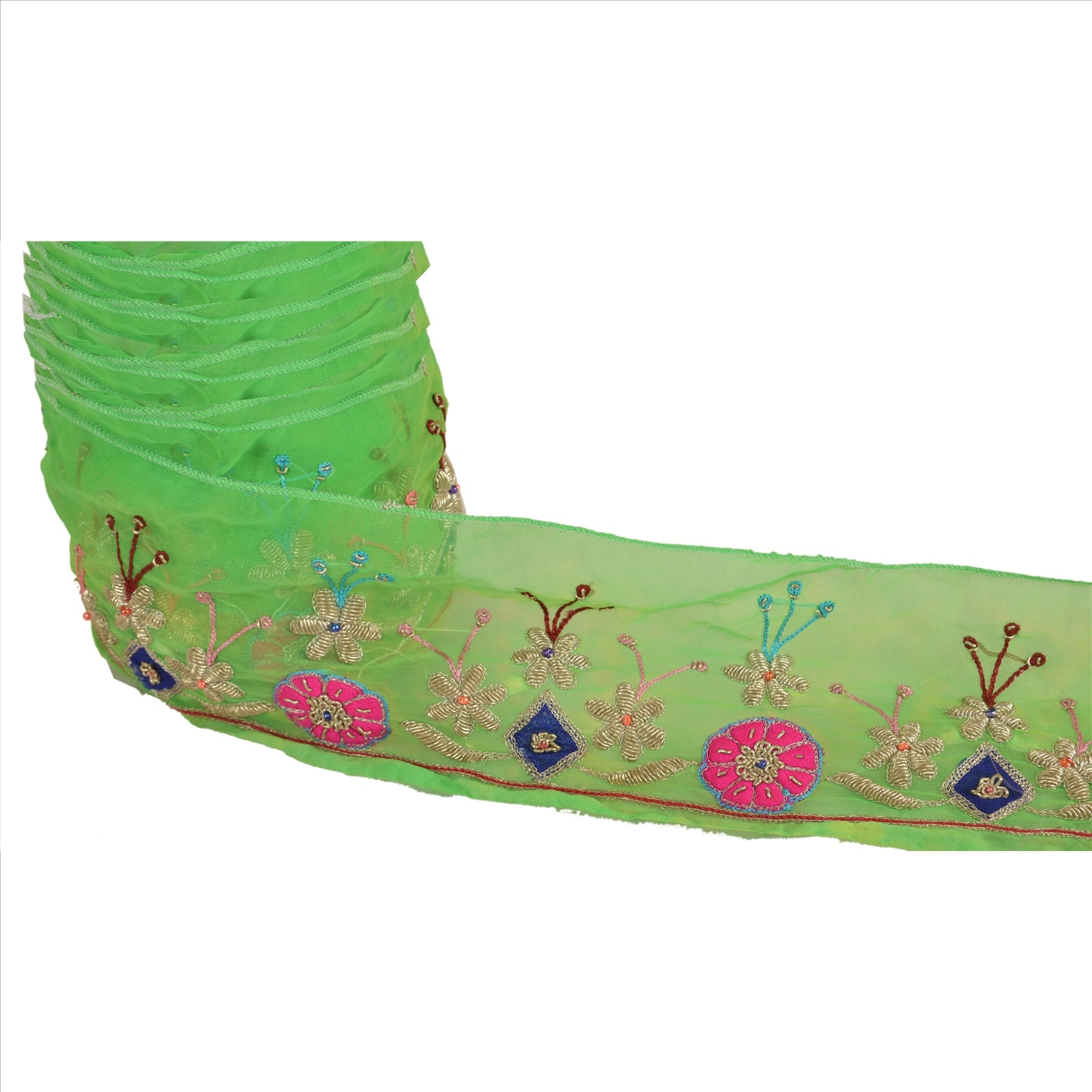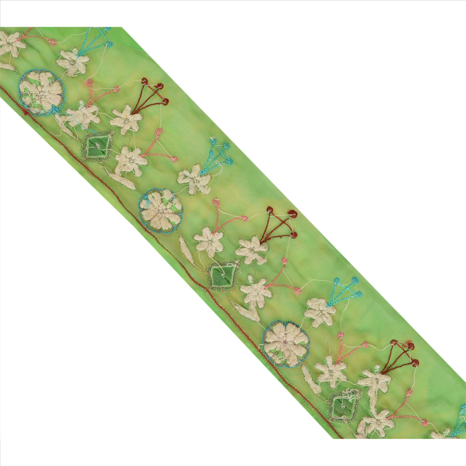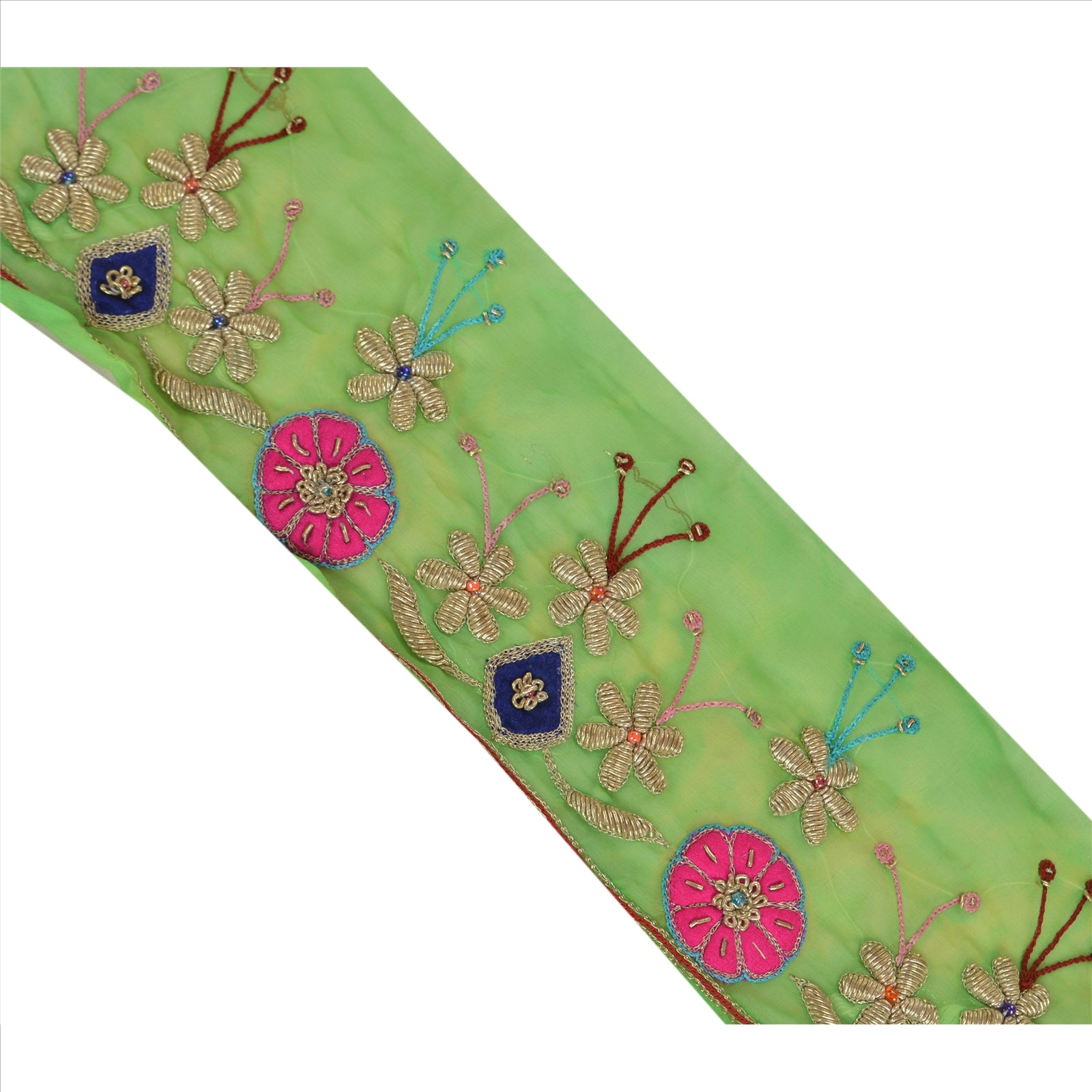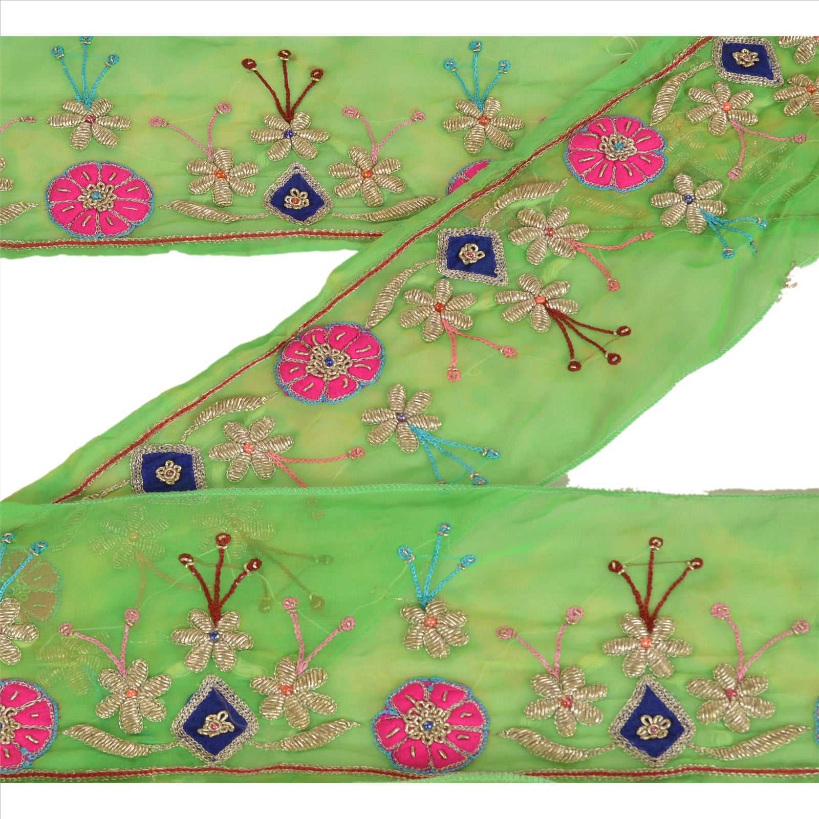 Sanskriti Vintage Sari Border Hand Beaded 1 Yd Indian Trim Sewing Green Lace