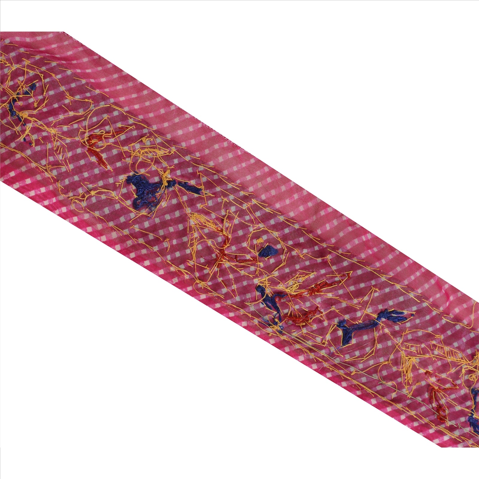 Sanskriti Vintage Sari Border Hand Beaded Leheria 1 Yd Trim Sewing Pink Lace