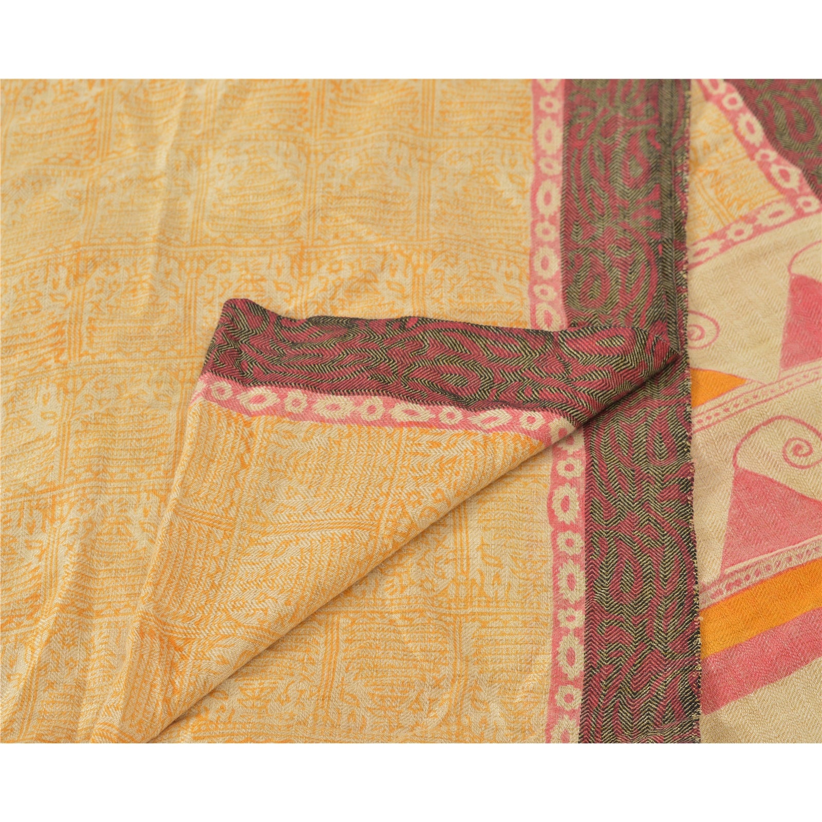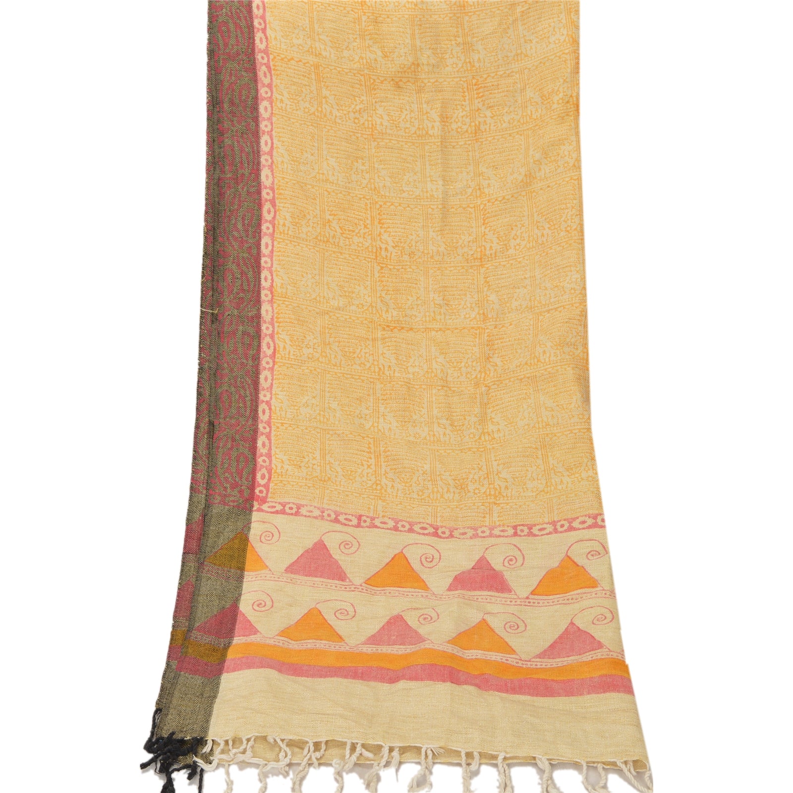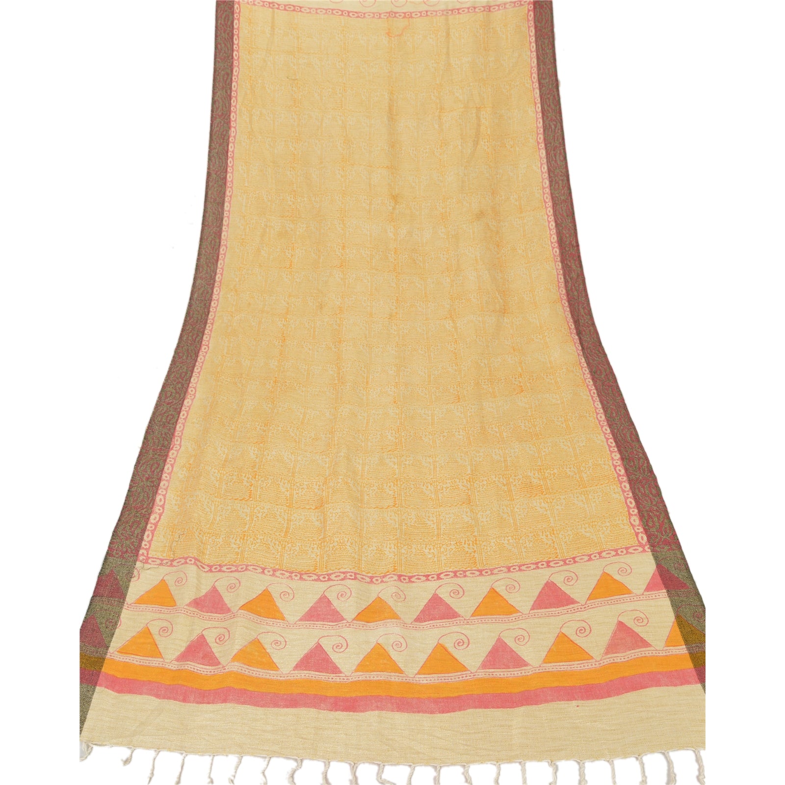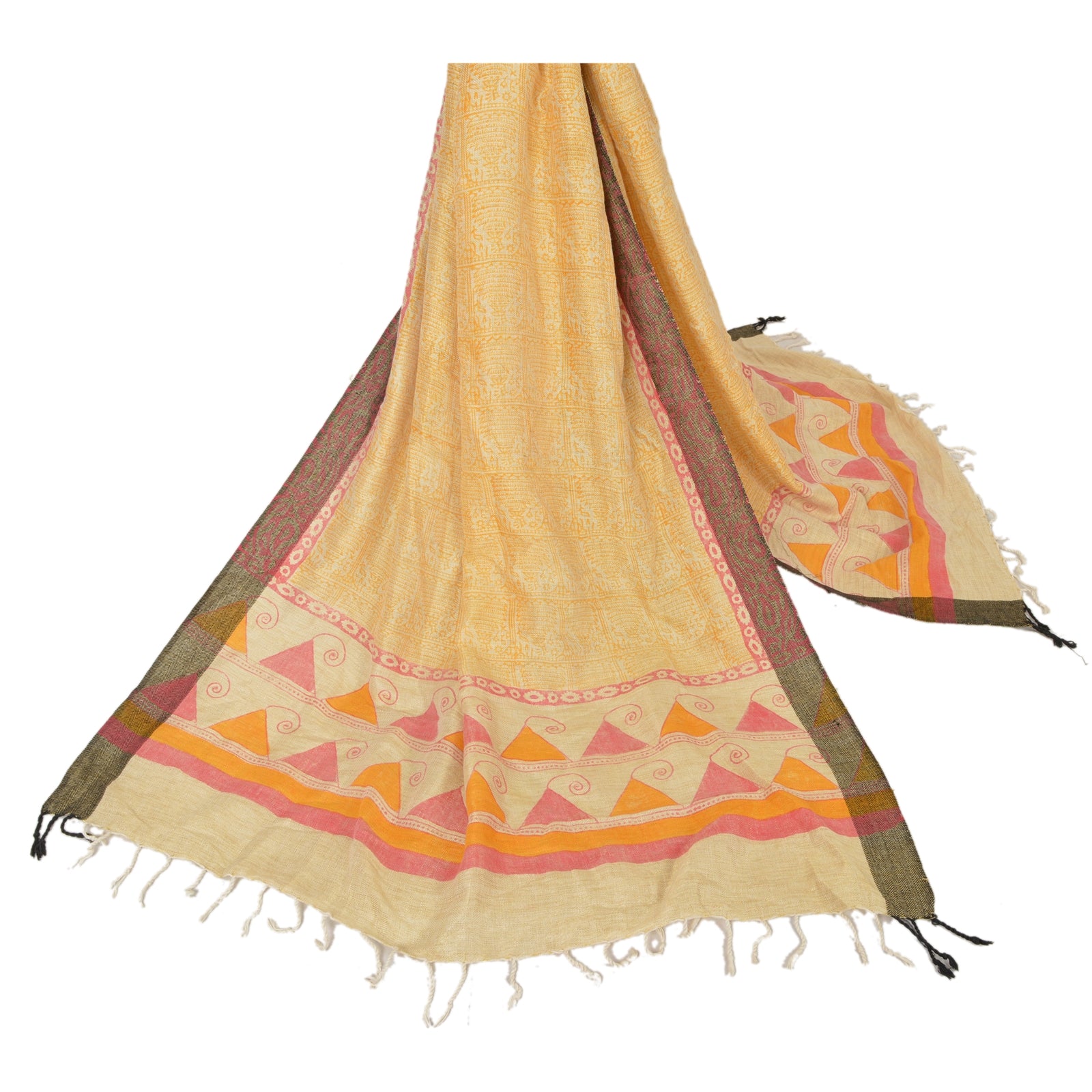 Sanskriti Vintage Dupatta Long Stole Cotton Shawl Cream Hijab Printed Wrap Scarves