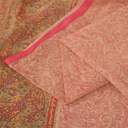 Sanskriti Vintage Sarees Pink Pure Silk Hand Block Print Sari 5+yd Craft Fabric