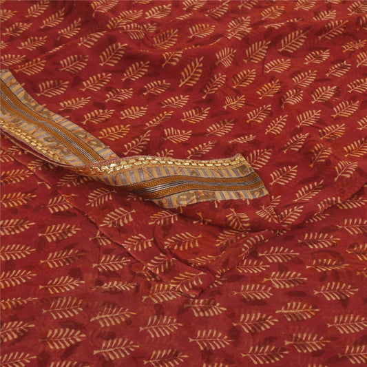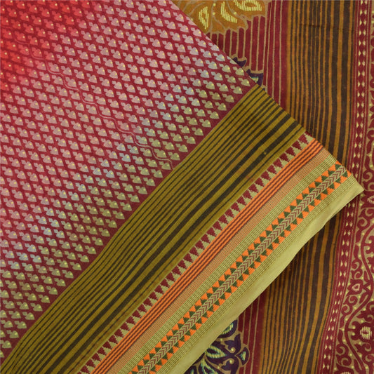 Sanskriti Vintage Sarees Red Pure Georgette Hand Block Printed Sari 5+yd Fabric