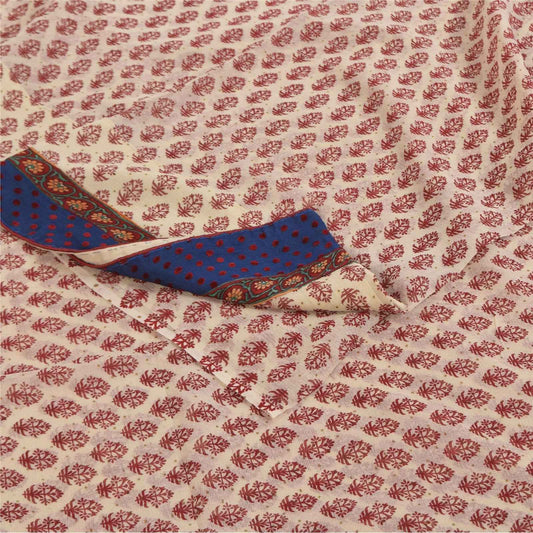 Sanskriti Vintage Ivory/Dark Red Sarees Pure Cotton Hand-Block Print Sari Fabric