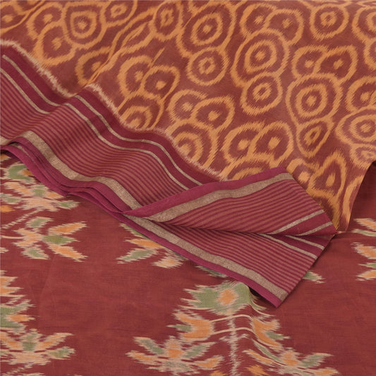Sanskriti Vintage Sarees Brown & Orange Pure Cotton Ikat Print Sari 5+yd Sustainable Fabric