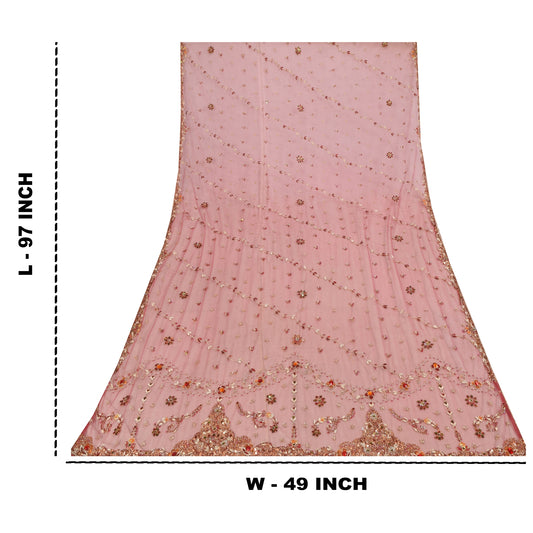Sanskriti Vintage Dupatta Long Stole Pure Georgette Pink Hand Beaded Scarves
