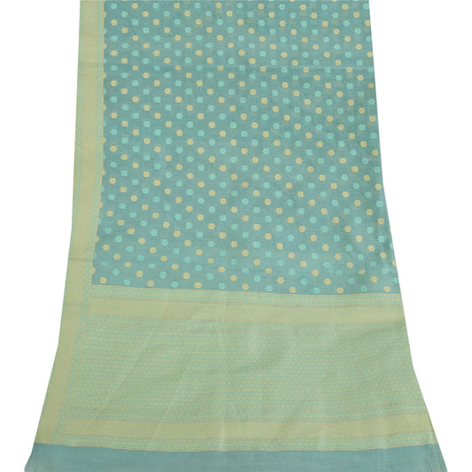 Sanskriti Vintage Long Dupatta/Stole Pure Silk Green Printed Wrap Scarf Veil