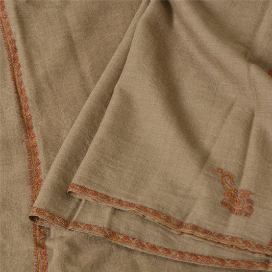 Sanskriti Vintage Pashmina Hand Embroidered Boil Wool Shawl Scarf Brown Stole