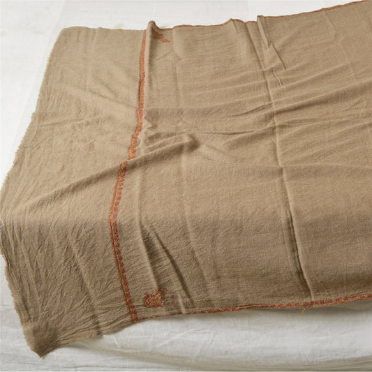 Sanskriti Long ShawlHand Embroidered Pure Boil Wool Scarf Brown Wrap Soft Stole