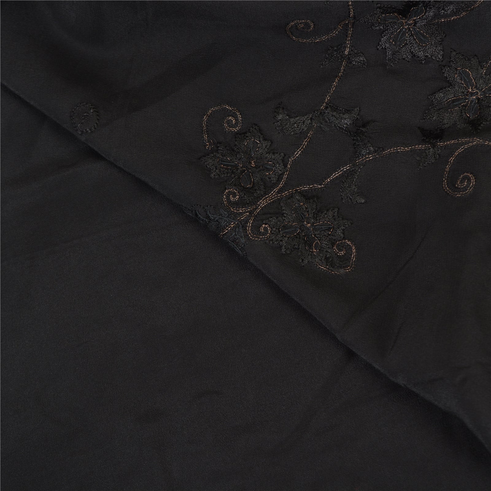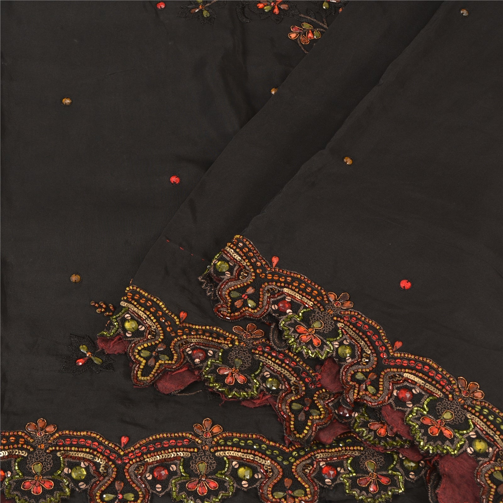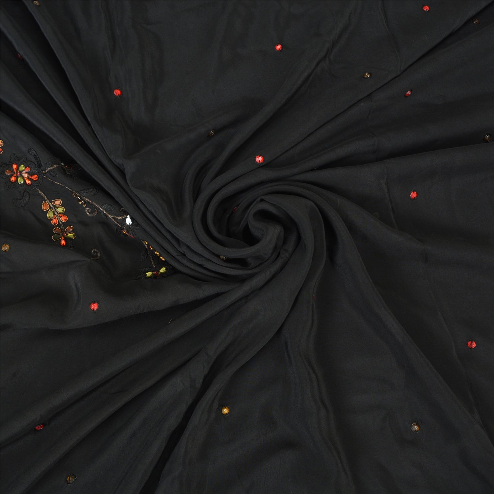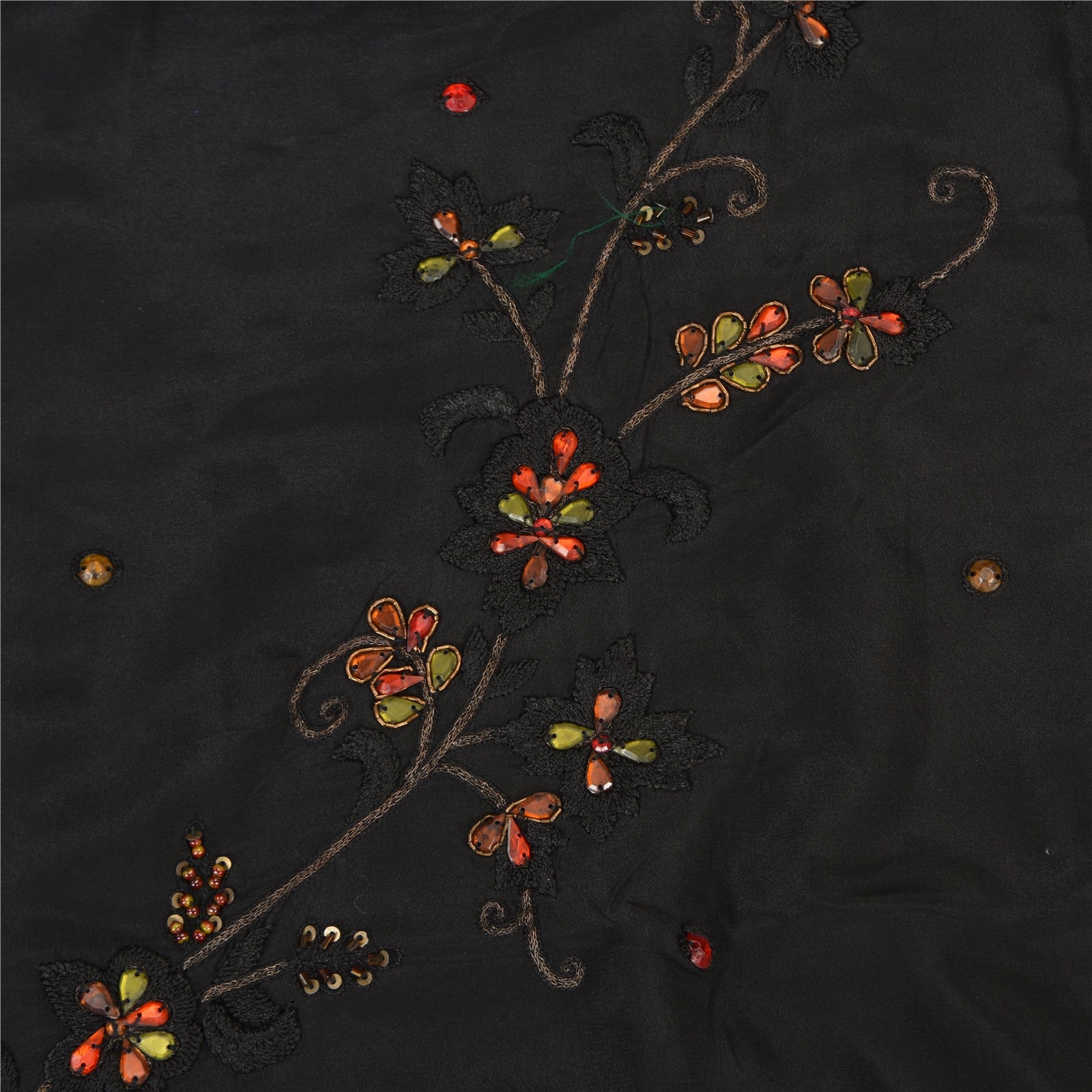 'THE ITEM COLOR OR SHADE MAY BE DARKER OR LIGHTER THAN THE PICTURE.' Beautiful black colored pure crepe silk woven sari/Sustainable Fabric. Pallu & border has floral design embellished with golden zari work, multi color sequins, beads & rhinestones work. The center of the saree has floral design with beaded work. This saree can be used for various crafting ideas too. Use it for dress designing, as a throw, as window dressing, upholstery, table linen and much more. Let your creative juices flow. 'International buyers please note: Import duties, taxes, and charges are not included in the item price or postage cost. These charges are the buyer's responsibility. Please check with your country's customs office to determine what these additional costs will be prior to bidding or buying. Buyer will pay custom duty/tax. It is calculated and charged differently by every country. As a seller I do not have any control over it. VAT or sales tax is calculated by the platform at the time of checkout. Customs charge is payable at the time of delivery.'
