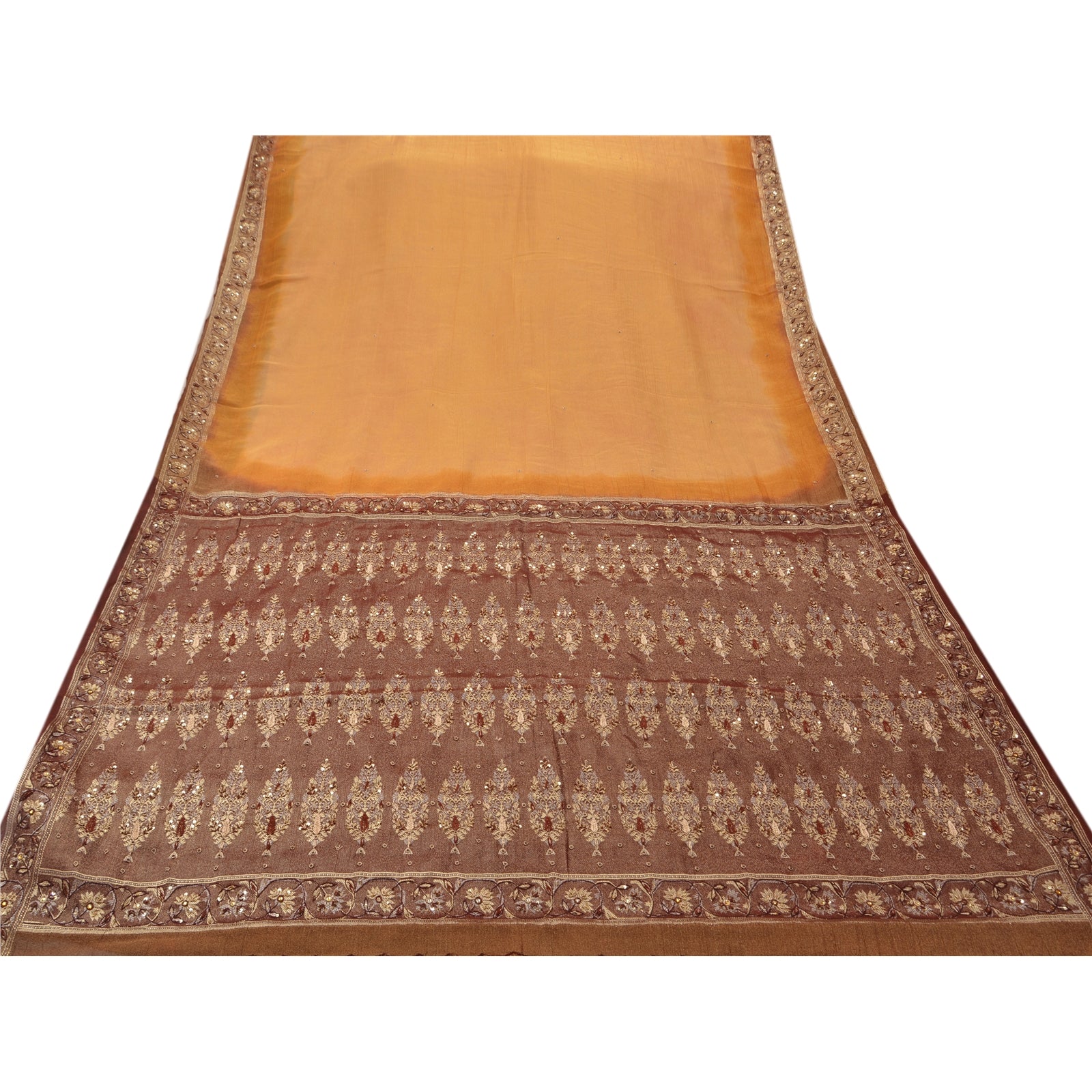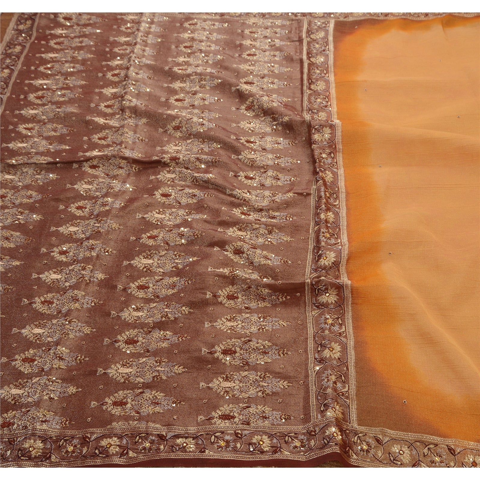 Sanskriti Vintage Antique Vintage Saree Georgette Hand Embroidery Woven Sustainable Fabric Premium Sari