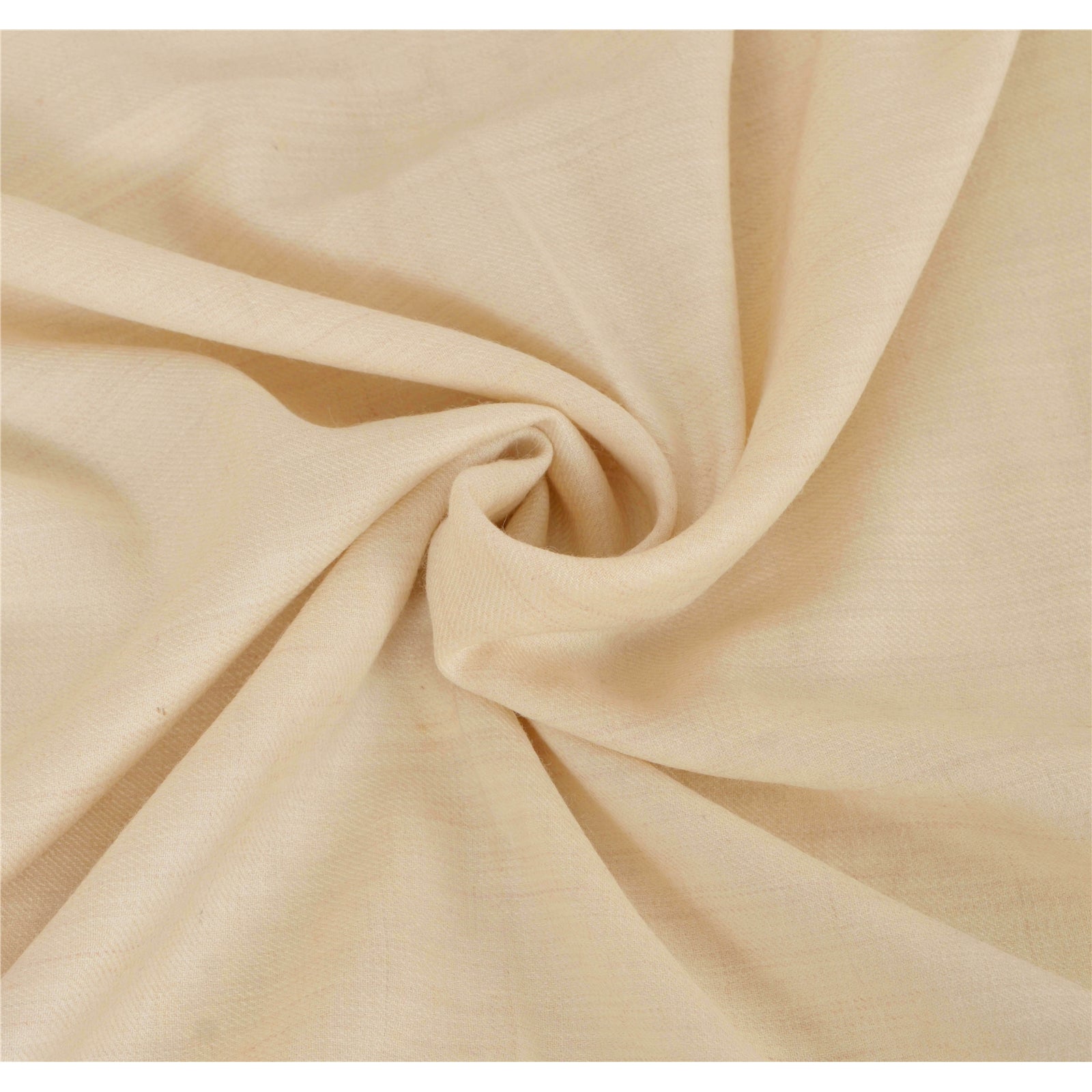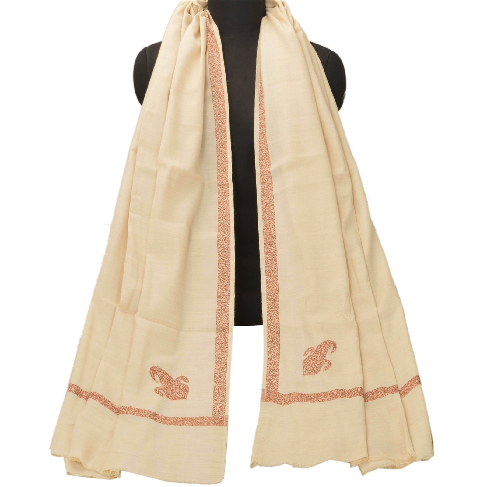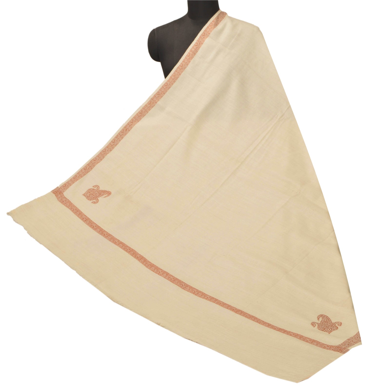 Sanskriti Vintage Cream Woolen Shawl Woven Work Long Stole Soft Scarf Floral
