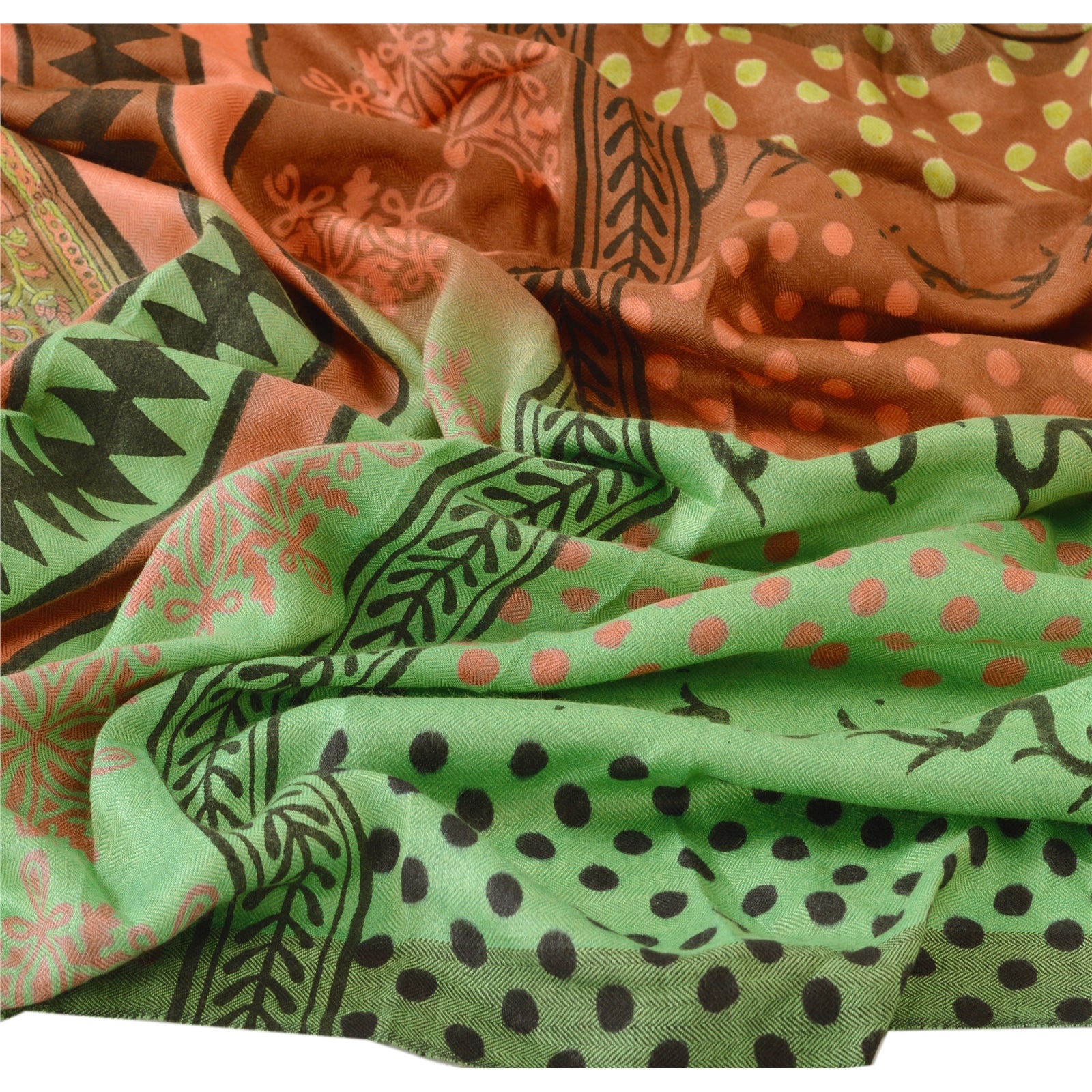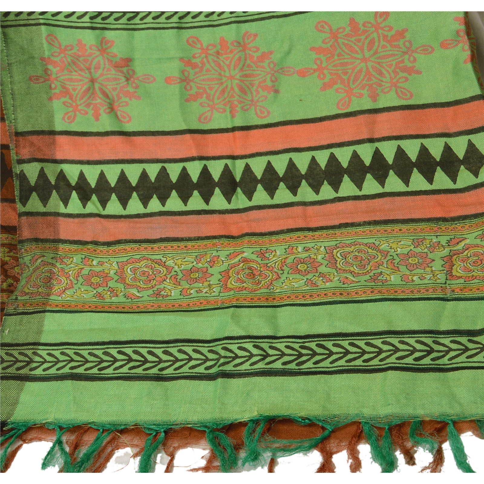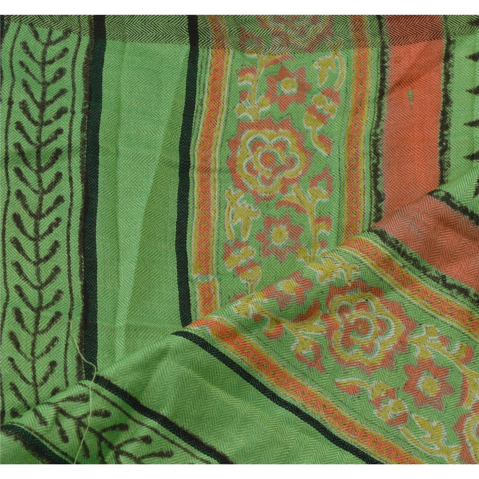 Sanskriti Vintage Dupatta Long Stole Woolen Green Shawl Printed Floral Scarves