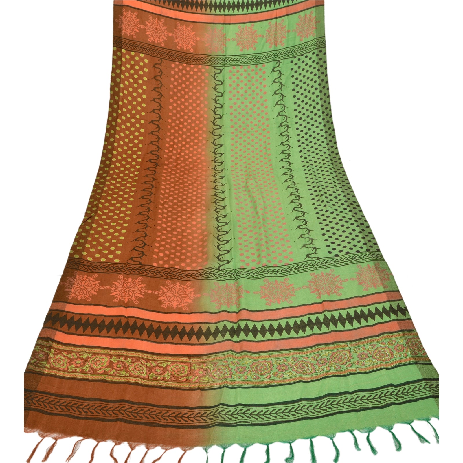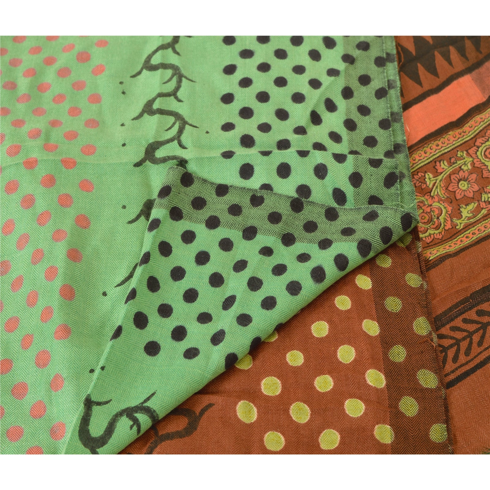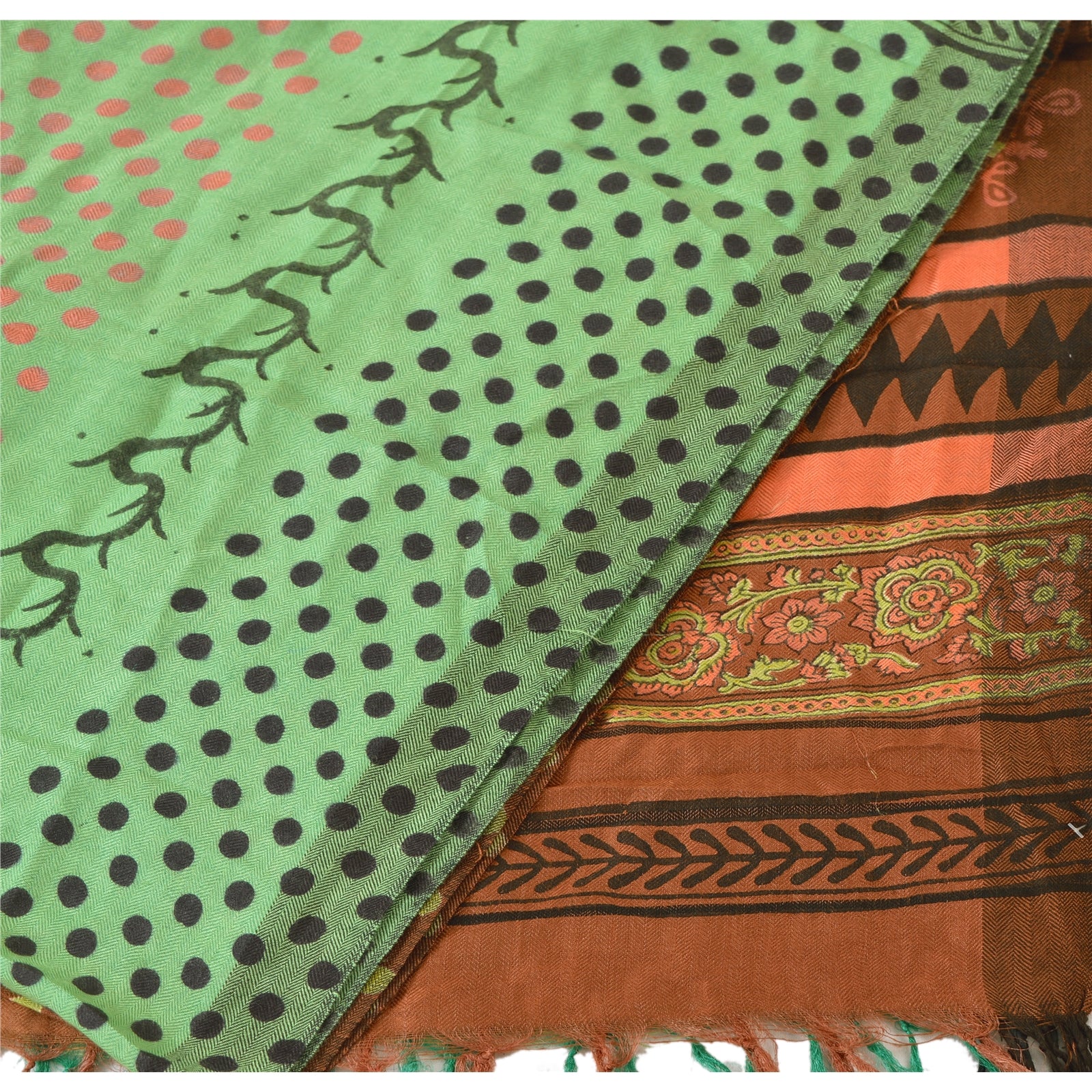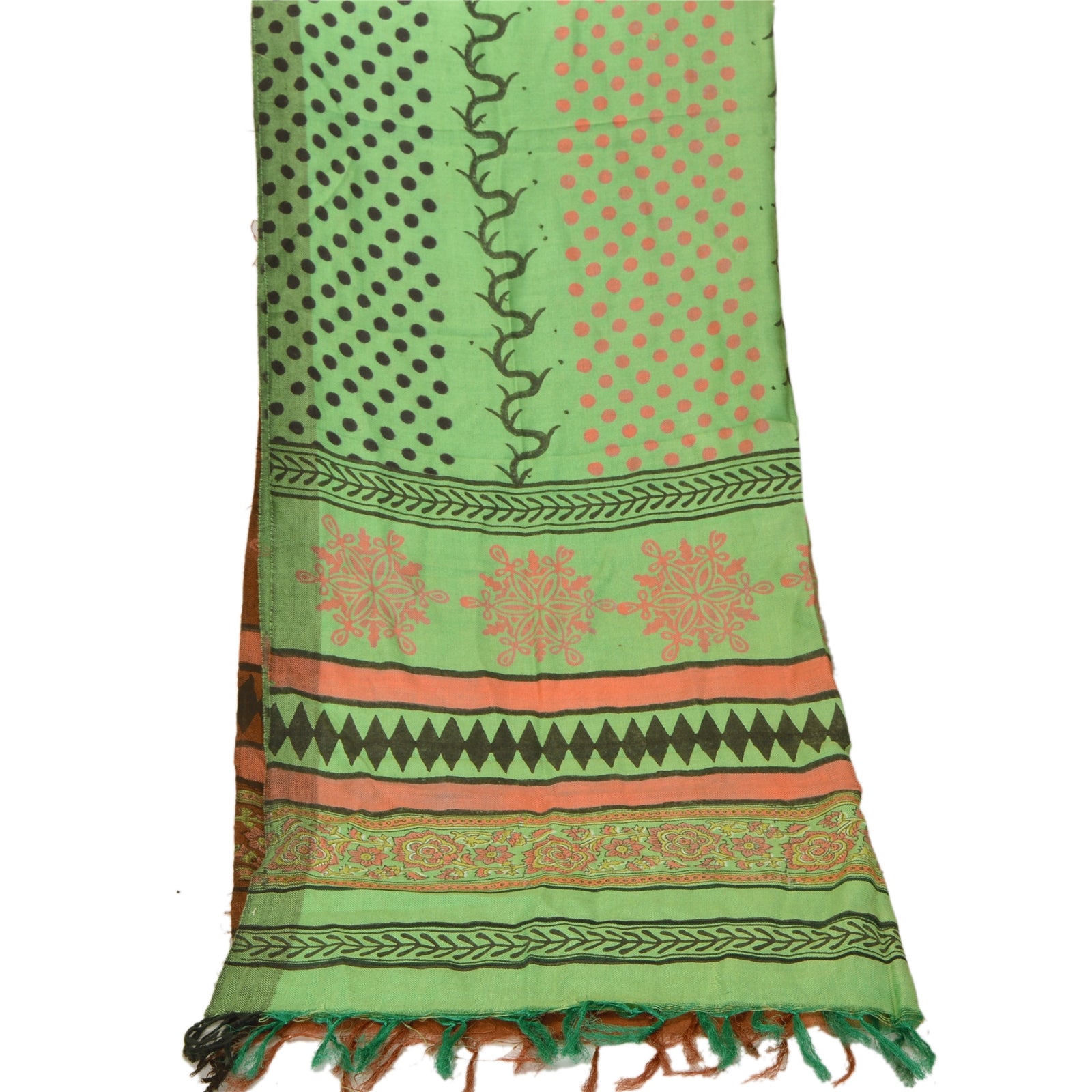 Sanskriti Vintage Dupatta Long Stole Woolen Green Shawl Printed Floral Scarves