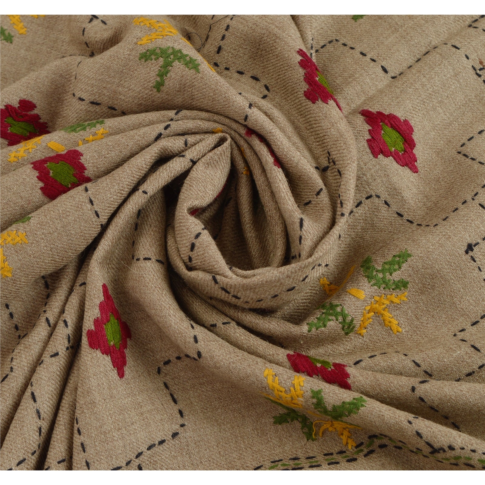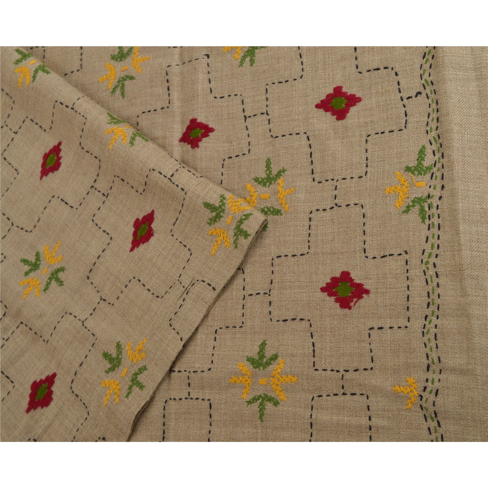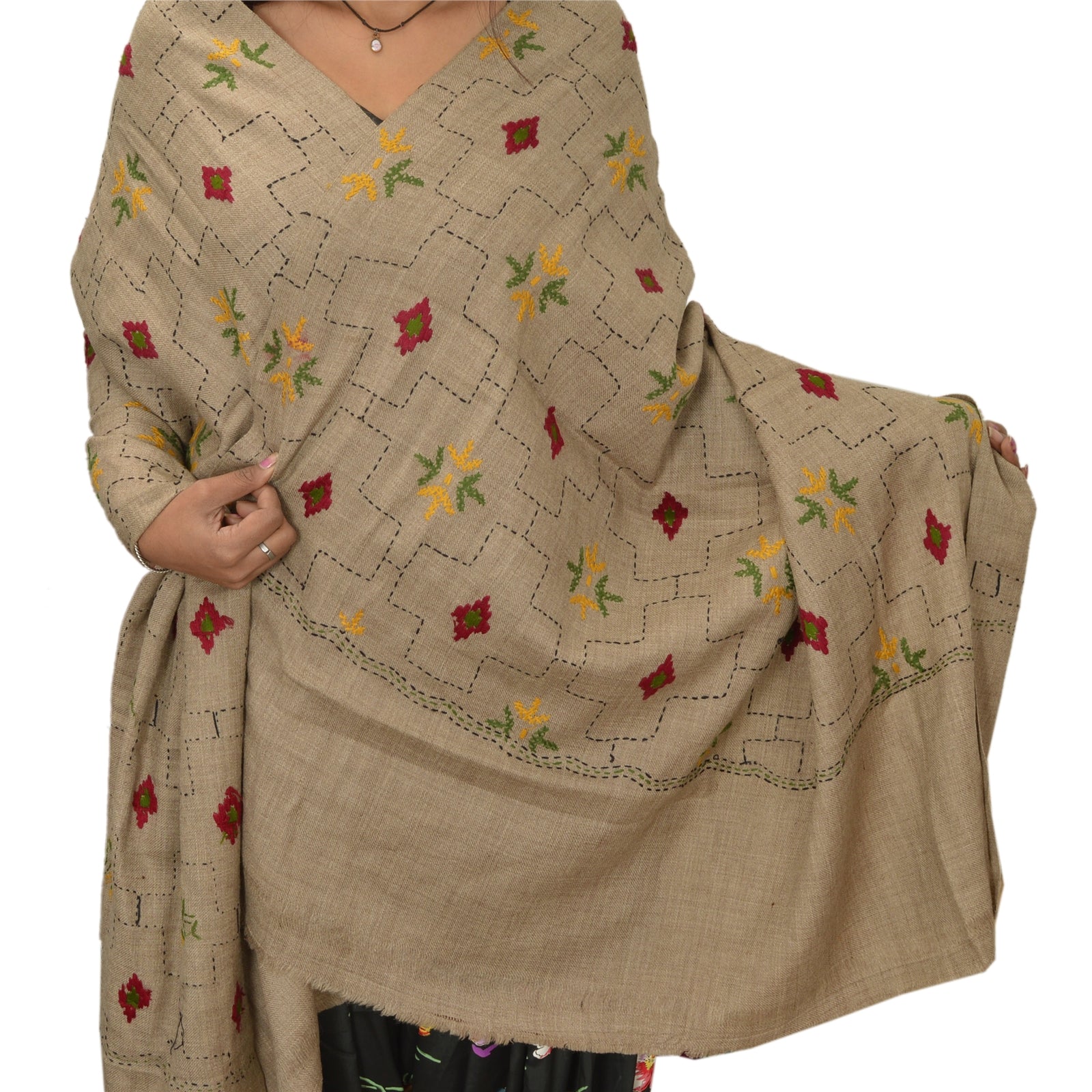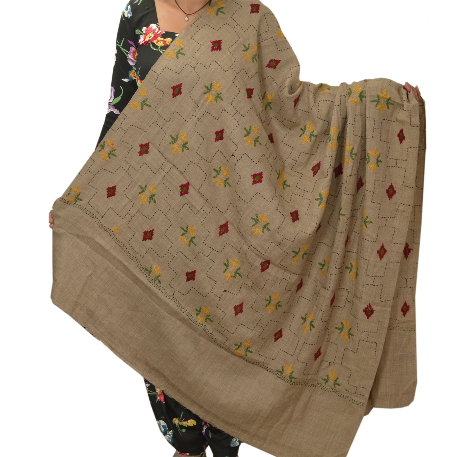 Sanskriti Vintage Hand Embroidered Woolen Shawl Grey Stole Floral