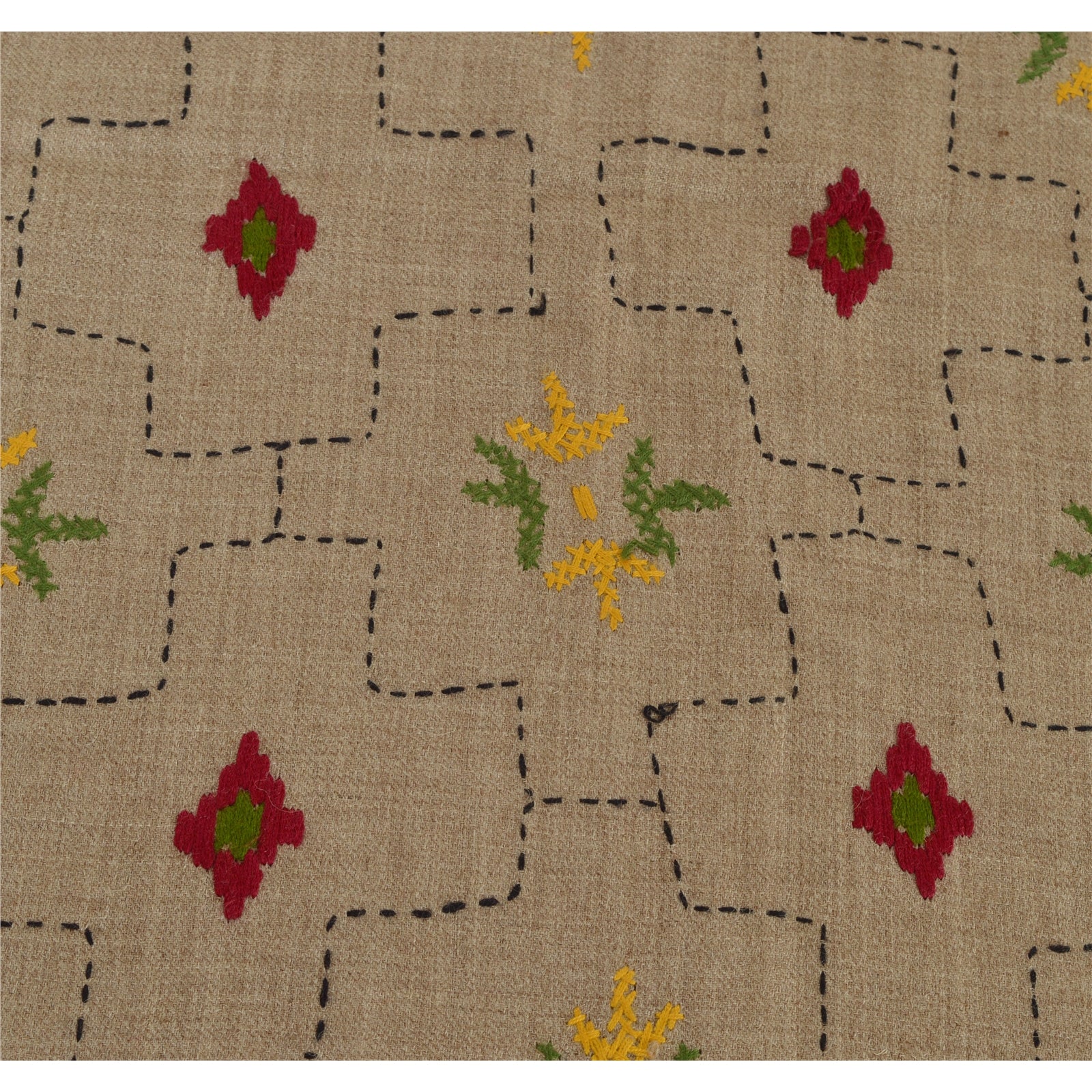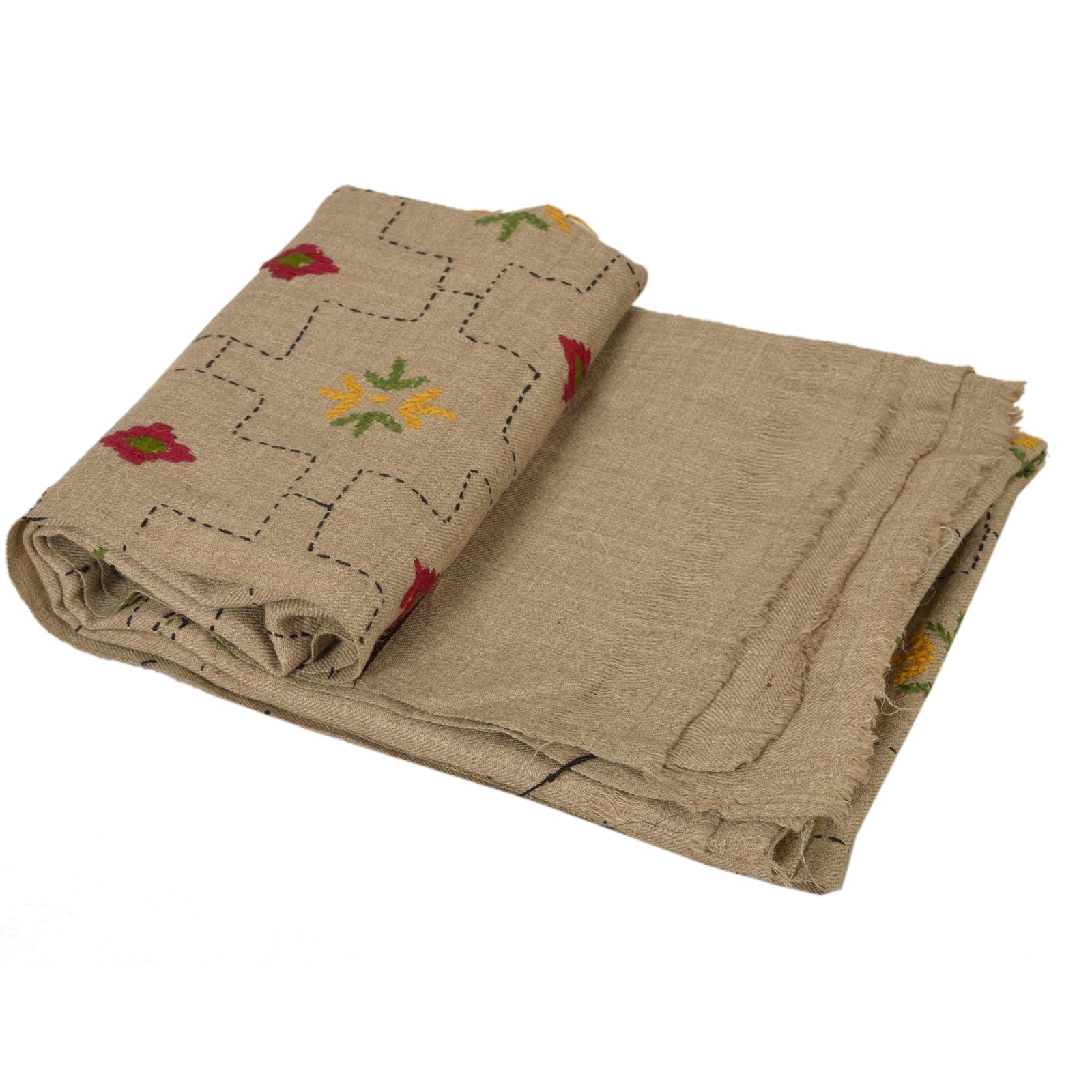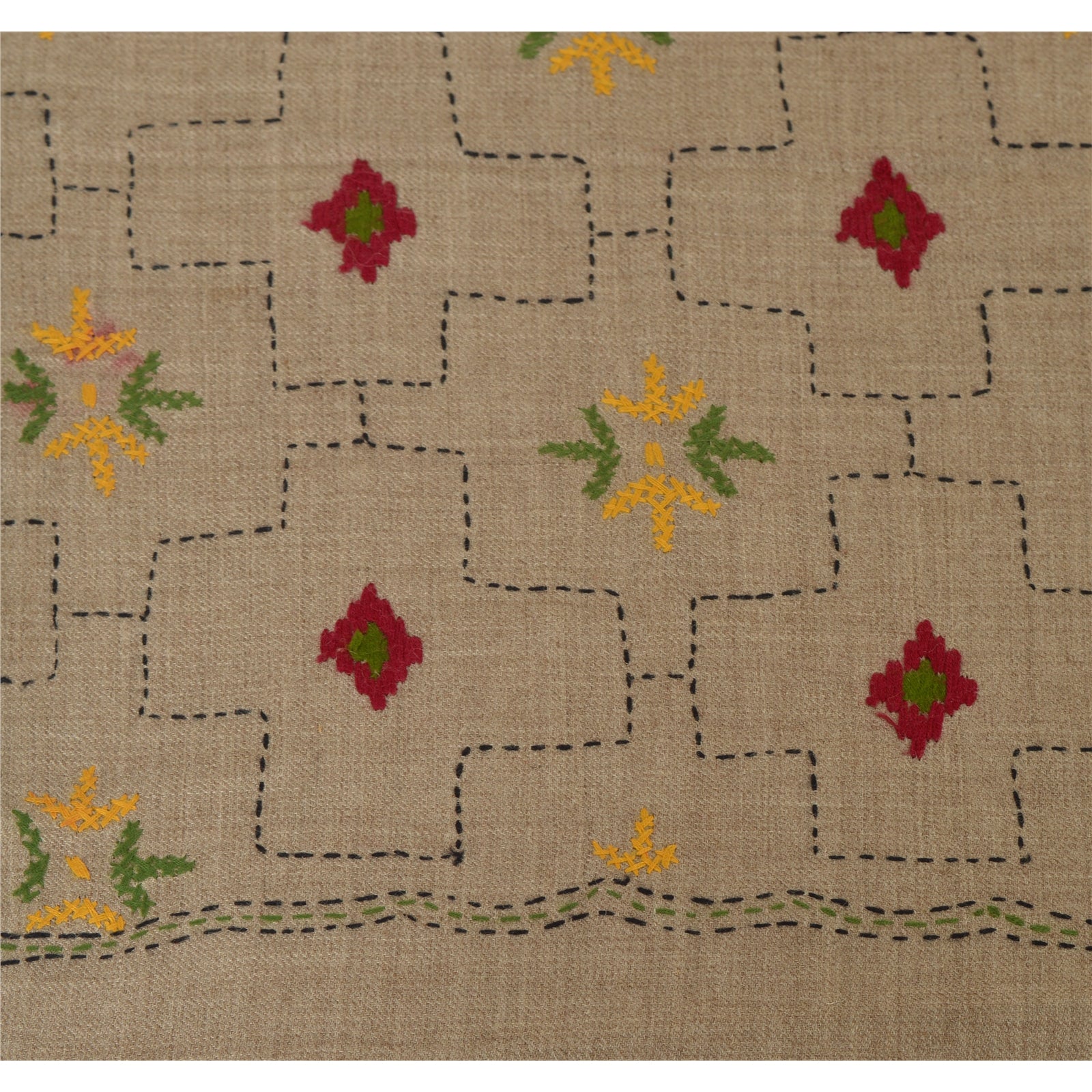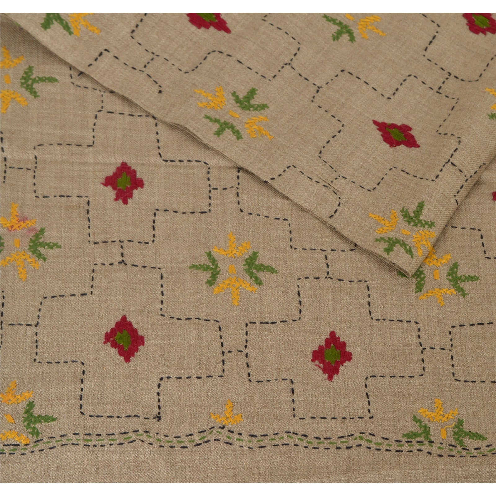 Sanskriti Vintage Hand Embroidered Woolen Shawl Grey Stole Floral