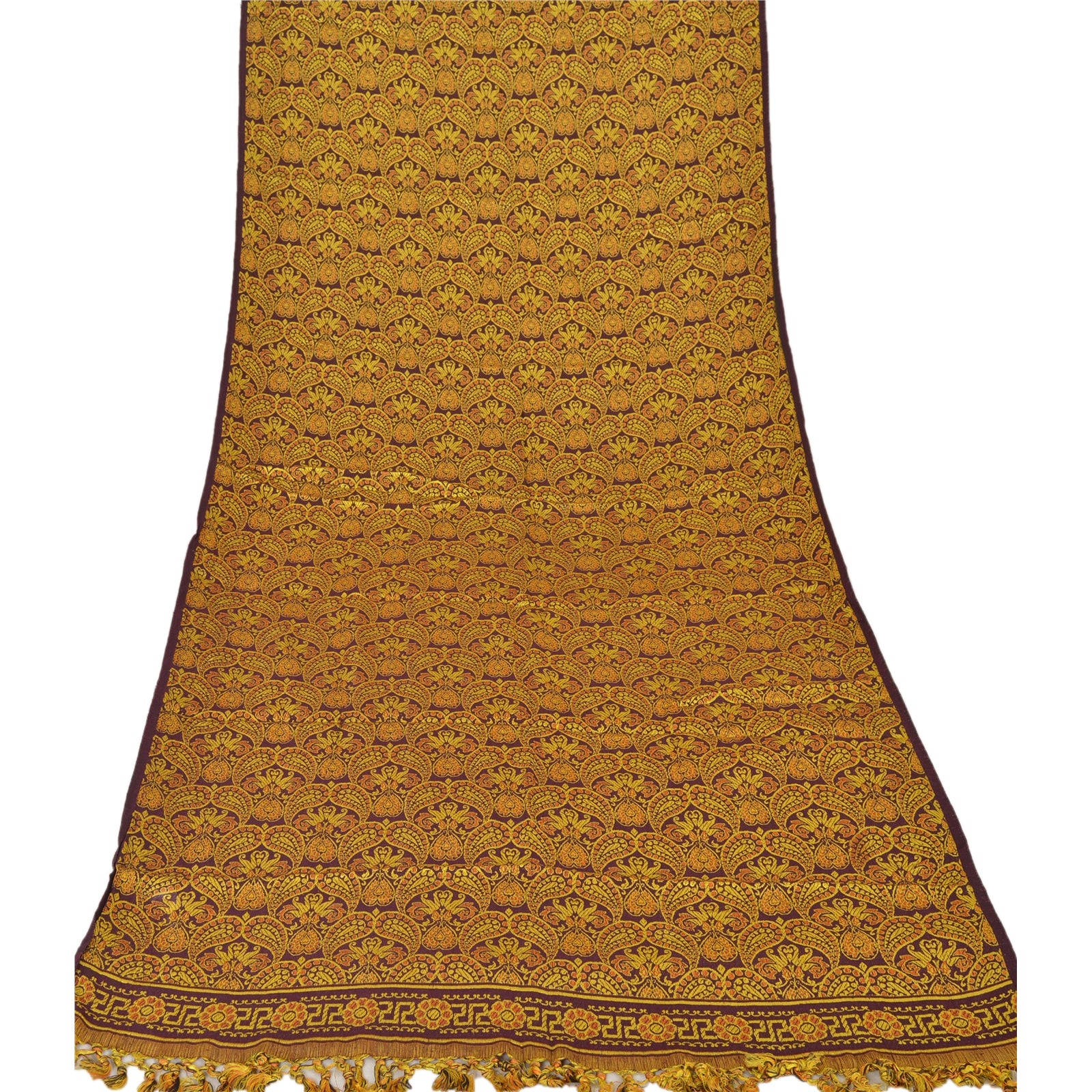 Sanskriti Vintage Indian Woven Woolen Indian Shawl Scarf Stole Brown