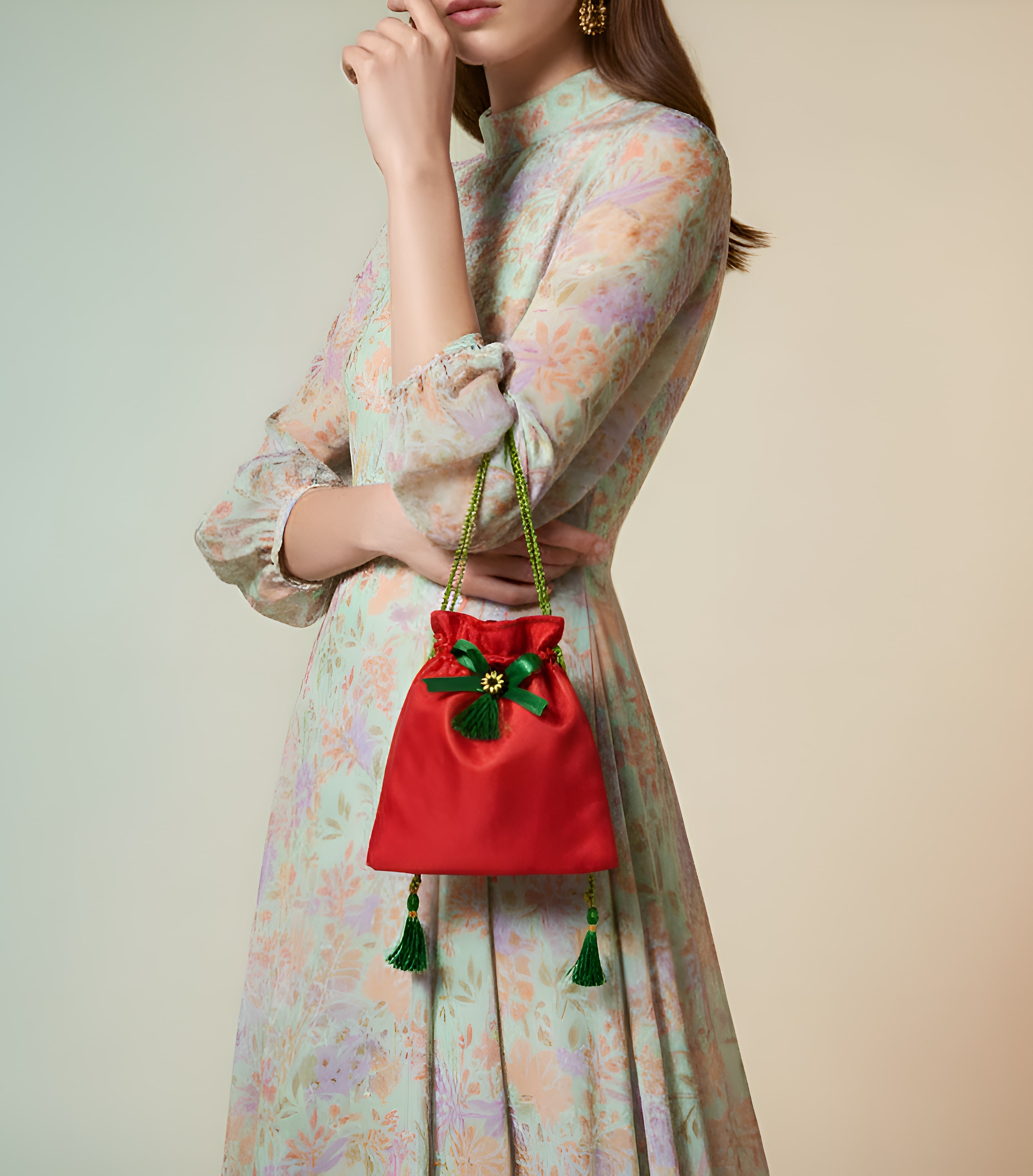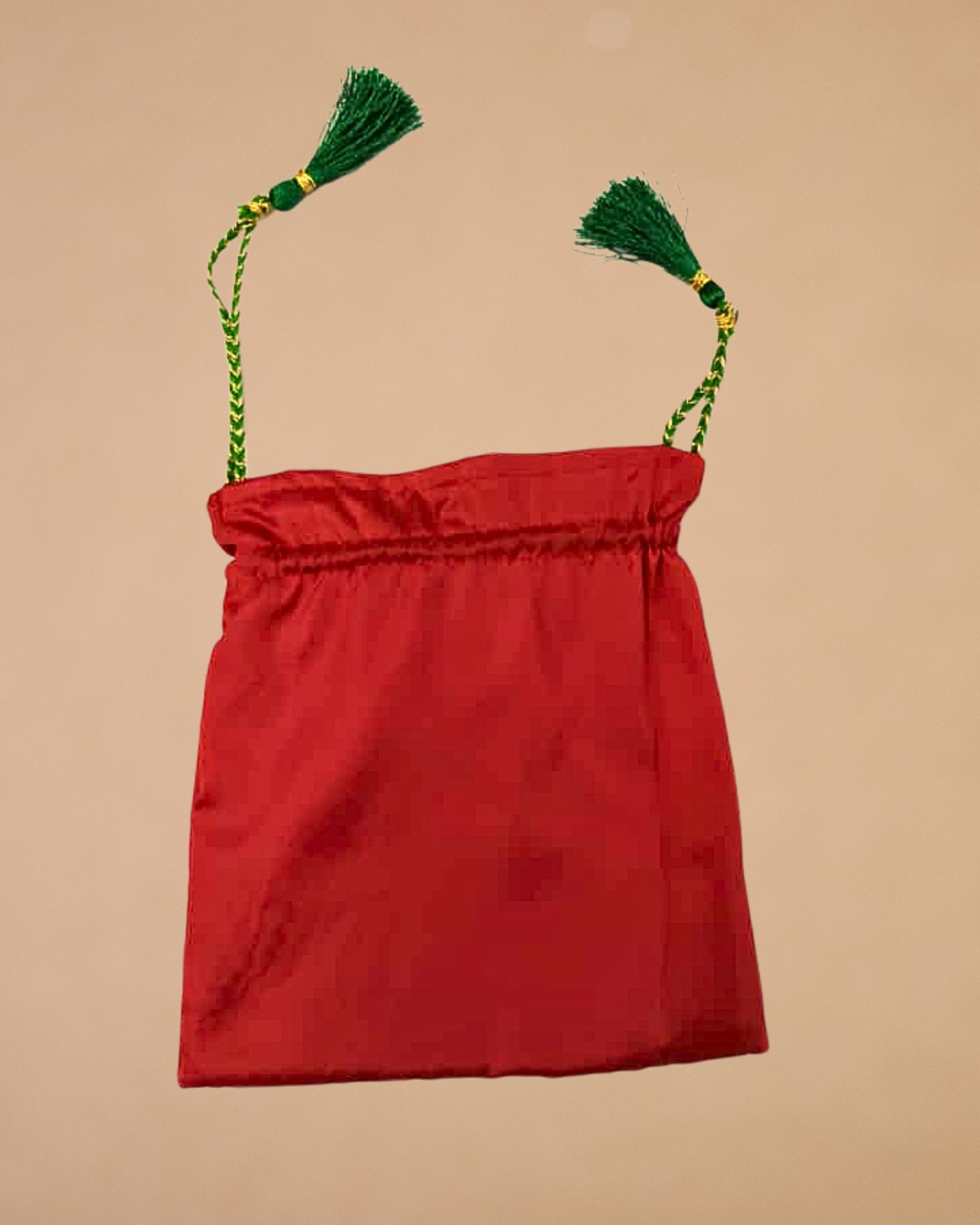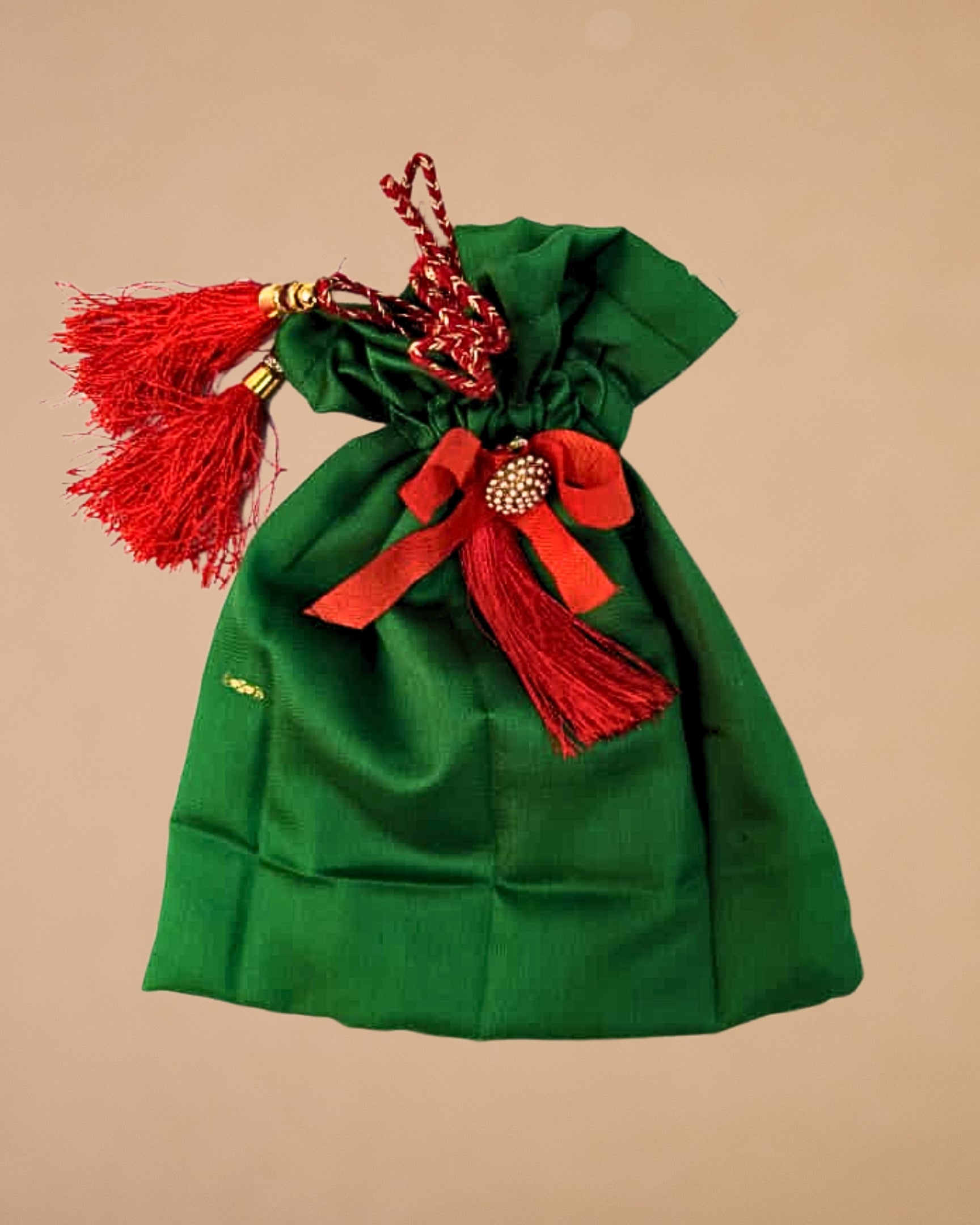 Add a touch of festive elegance to your Christmas gifting with these beautifully crafted Silk Drawstring Gift Bags by Sanskriti. Designed in the classic Christmas palette of Red & Green and adorned with Zari woven details, these luxurious pouches make every gift feel more special.