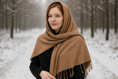 We are offering you a new green colored viscose sauroski stole which adorns with woven work. The shawl or stole features floral & paisley design with brown color threads & sauroski work. The shawl has brown fringes. This cozy, warm and fuzzy stole is soft against skin due to the mellow woolen Sustainable Fabric. A truly gorgeous piece which will also make an admirable gift.
