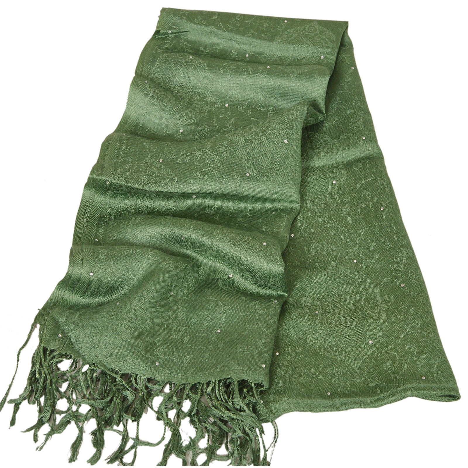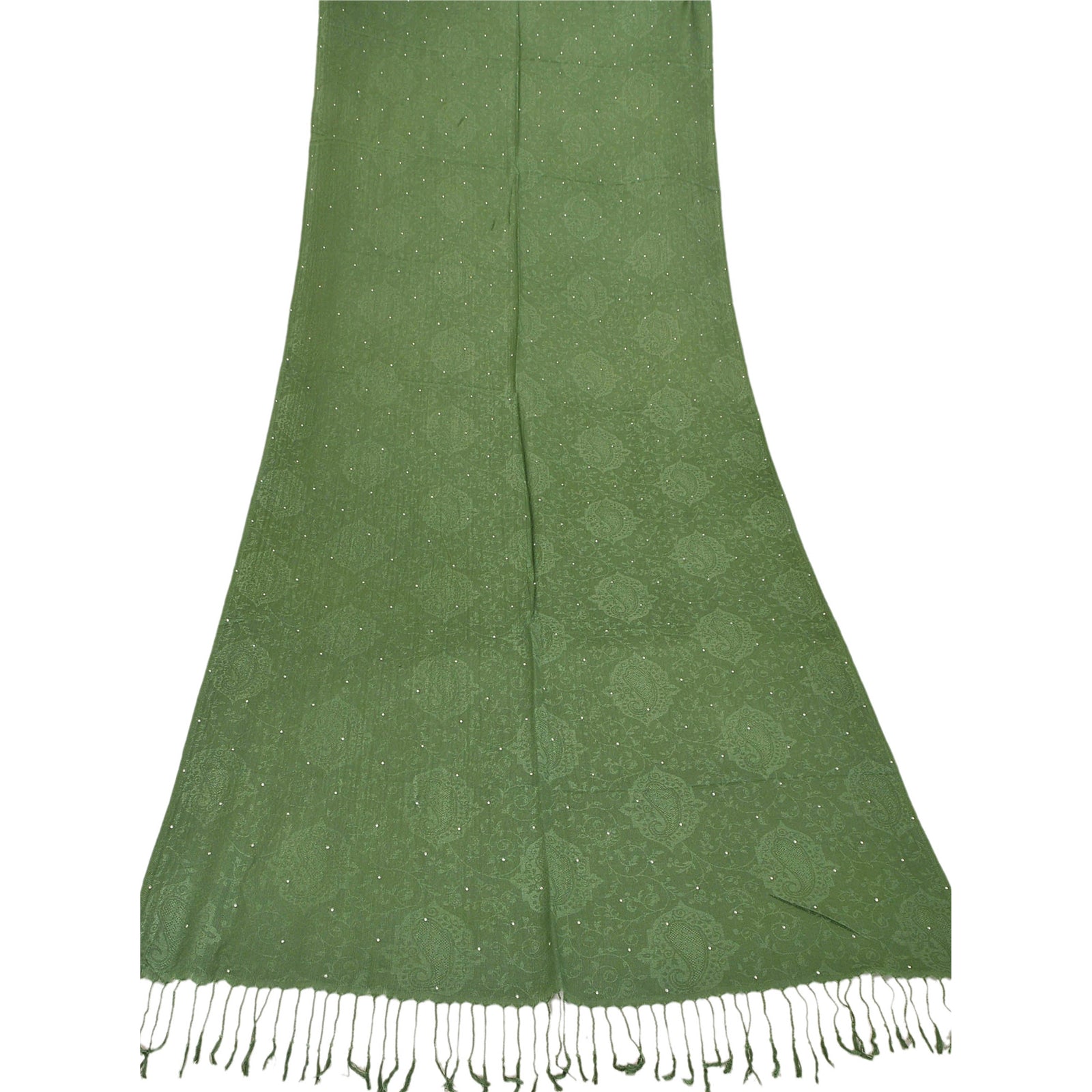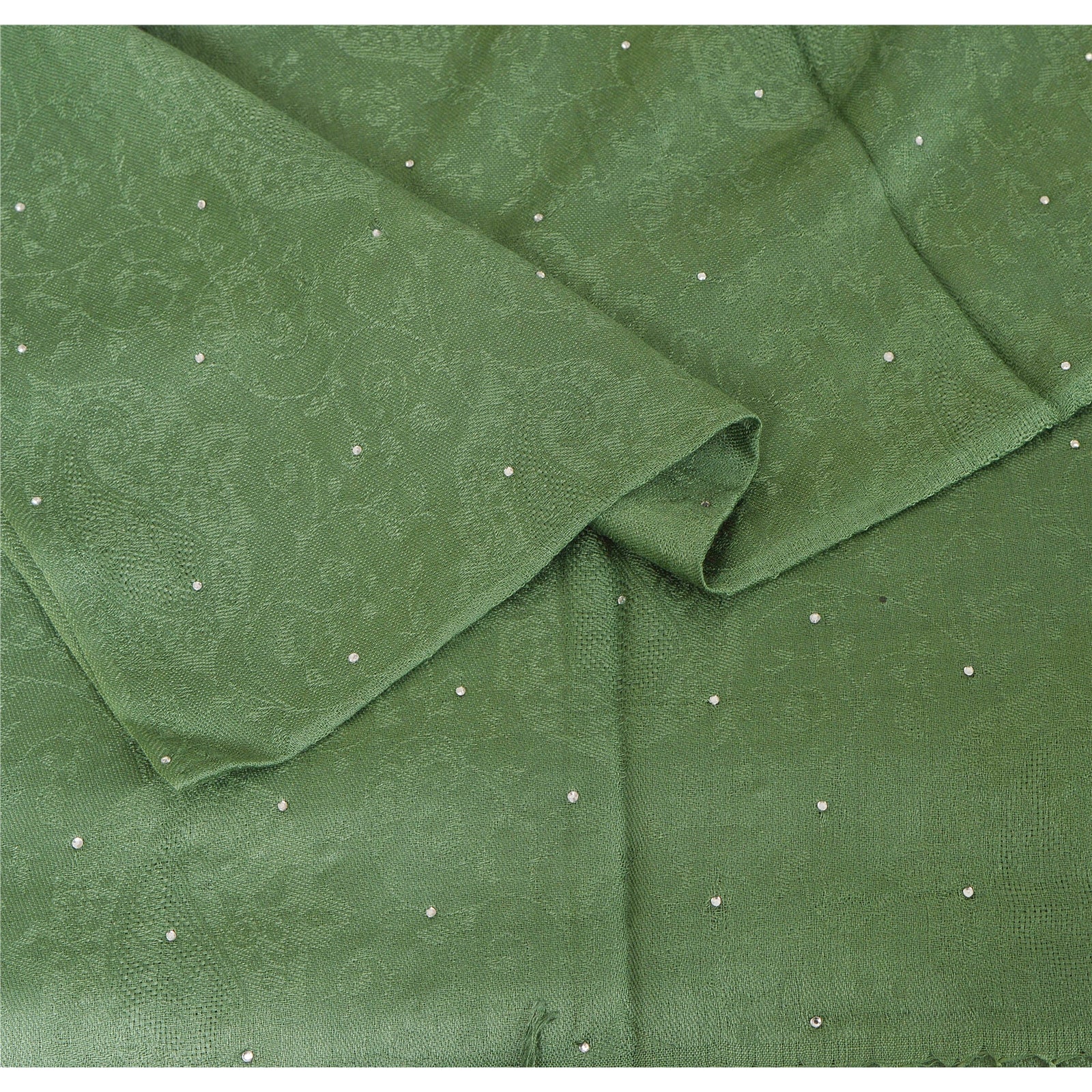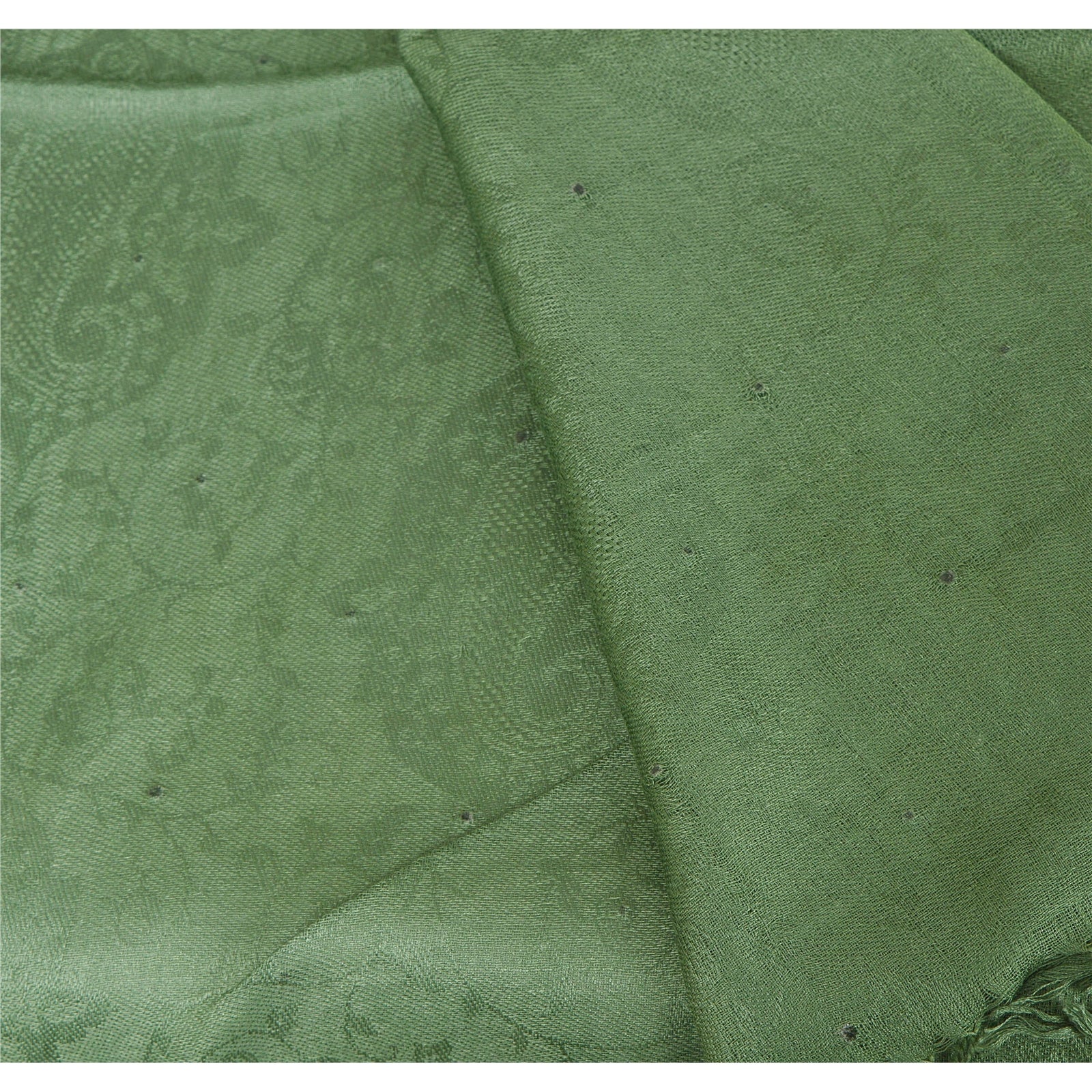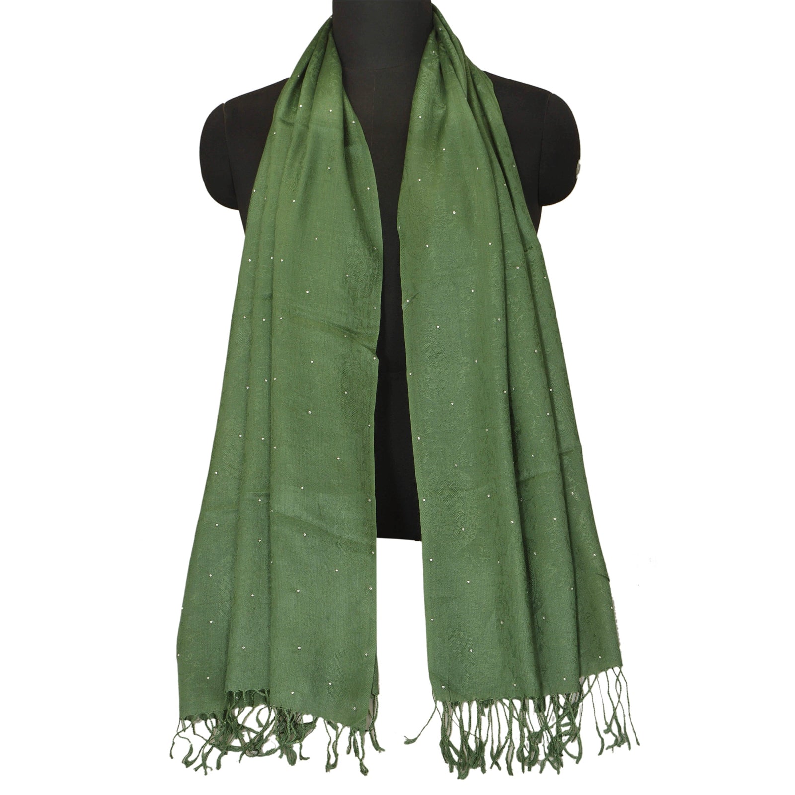 Sanskriti New Green Shawl Viscose Sauroski Woven Work Long Stole Soft Scarf