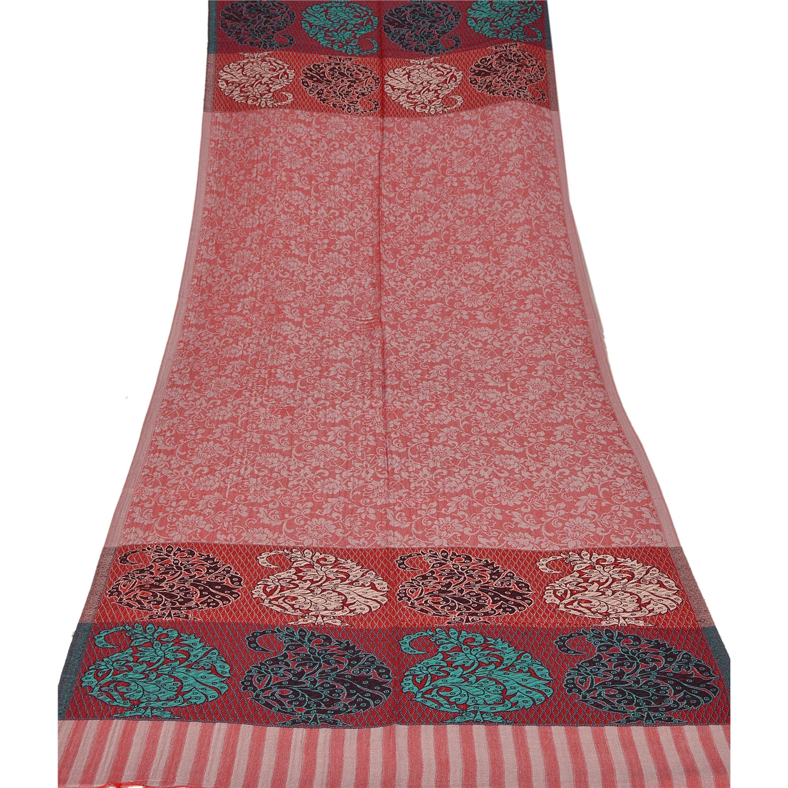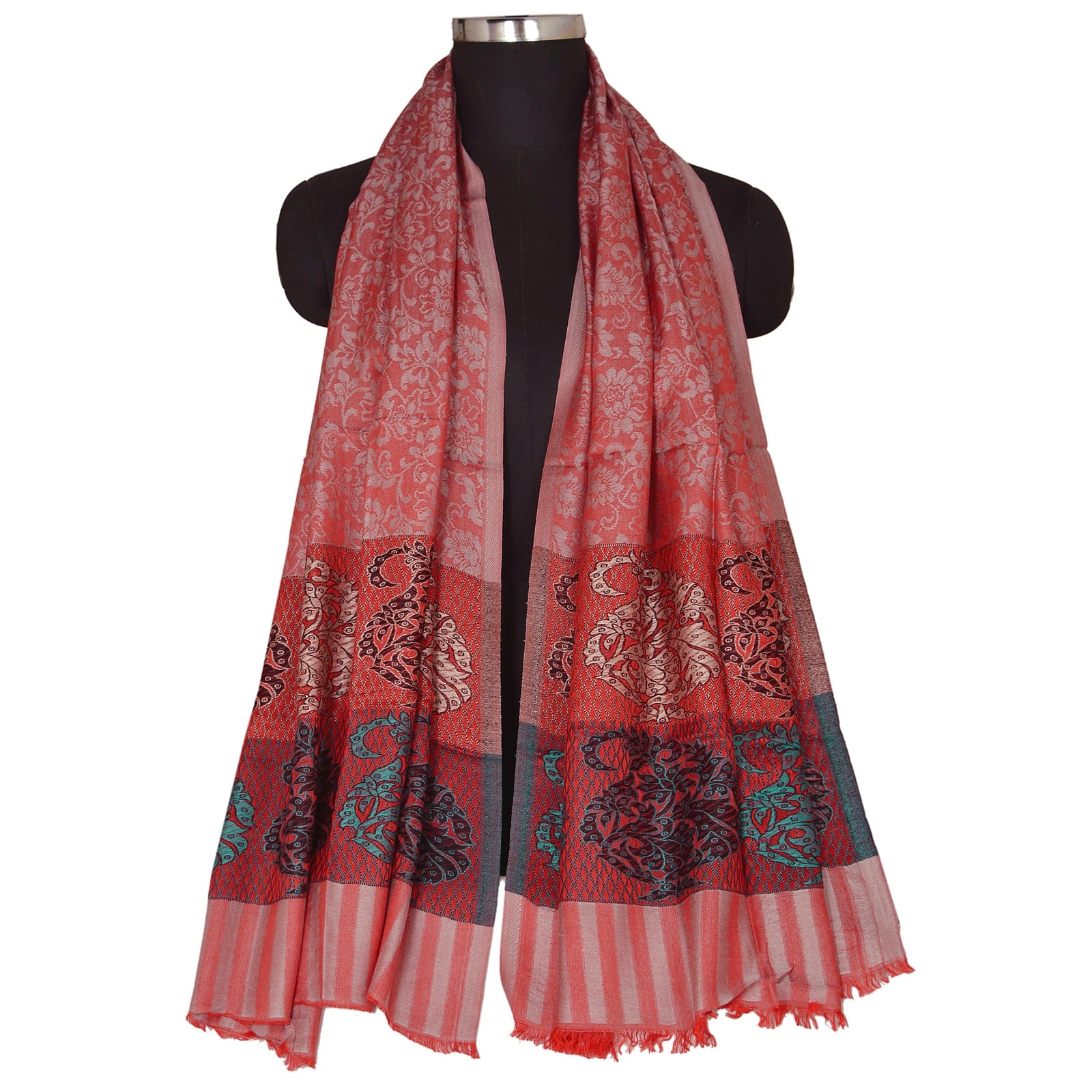 We are offering you a new pink colored viscose kashmiri palla stole which adorns with woven work. The shawl or stole features floral & paisley design with multicolor threads. This cozy, warm and fuzzy stole is soft against skin due to the mellow woolen Sustainable Fabric. A truly gorgeous piece which will also make an admirable gift.