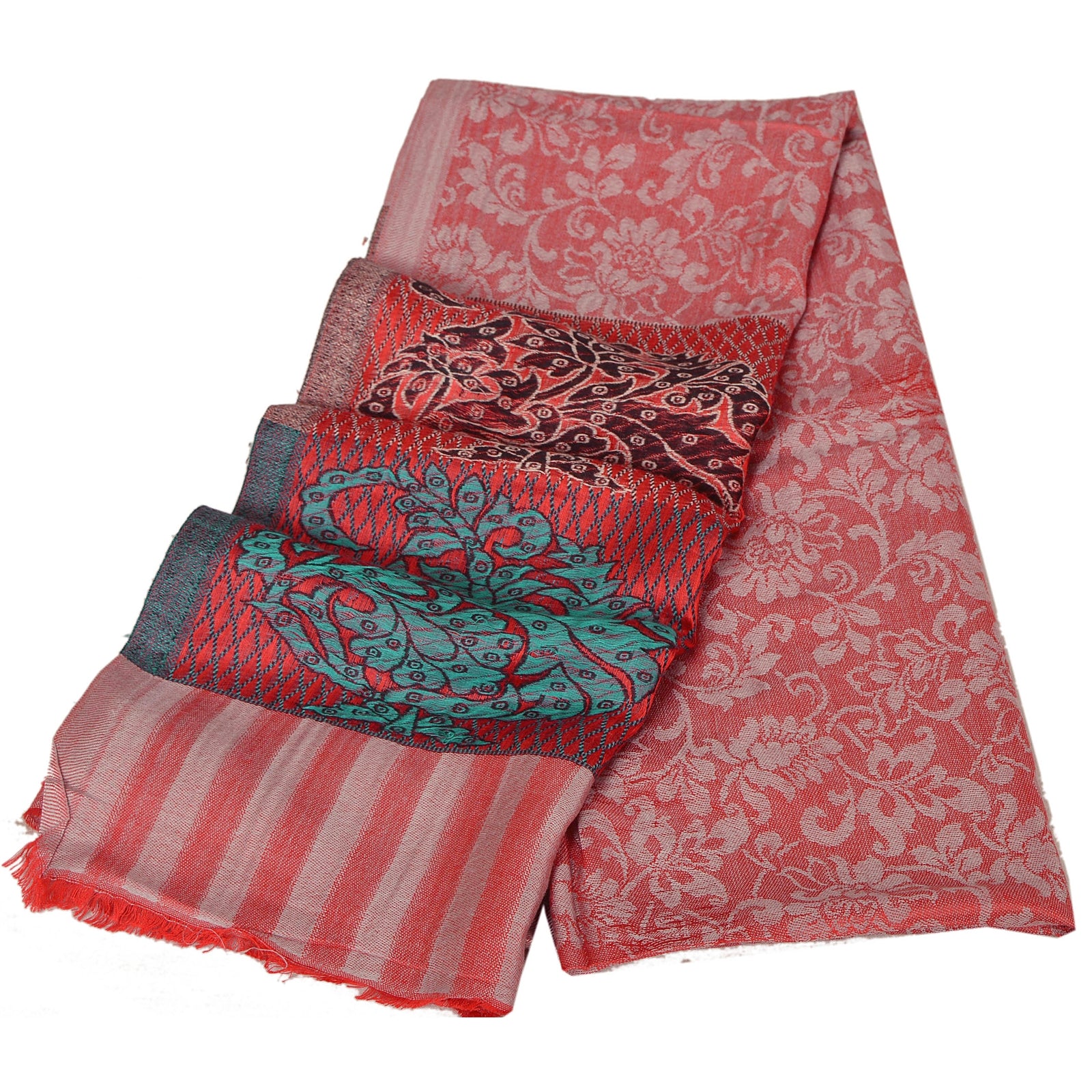 Sanskriti New Pink Viscose Kashmiri Palla Shawl Woven Work Long Stole Warm Scarf