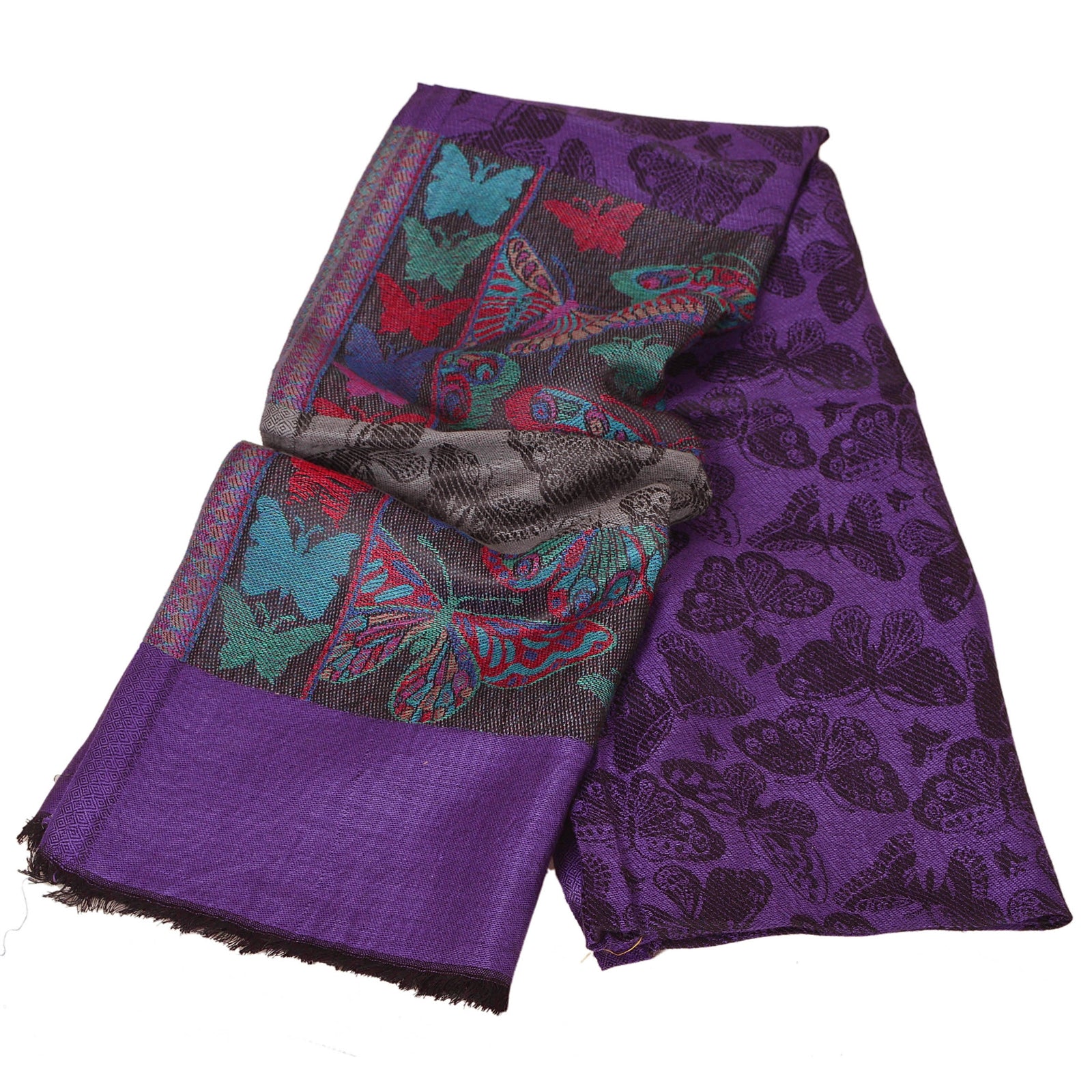 We are offering you a new purple colored viscose butterfly palla stole which adorns with woven work. The shawl or stole features butterfly design with multicolor threads. This cozy, warm and fuzzy stole is soft against skin due to the mellow woolen Sustainable Fabric. A truly gorgeous piece which will also make an admirable gift.