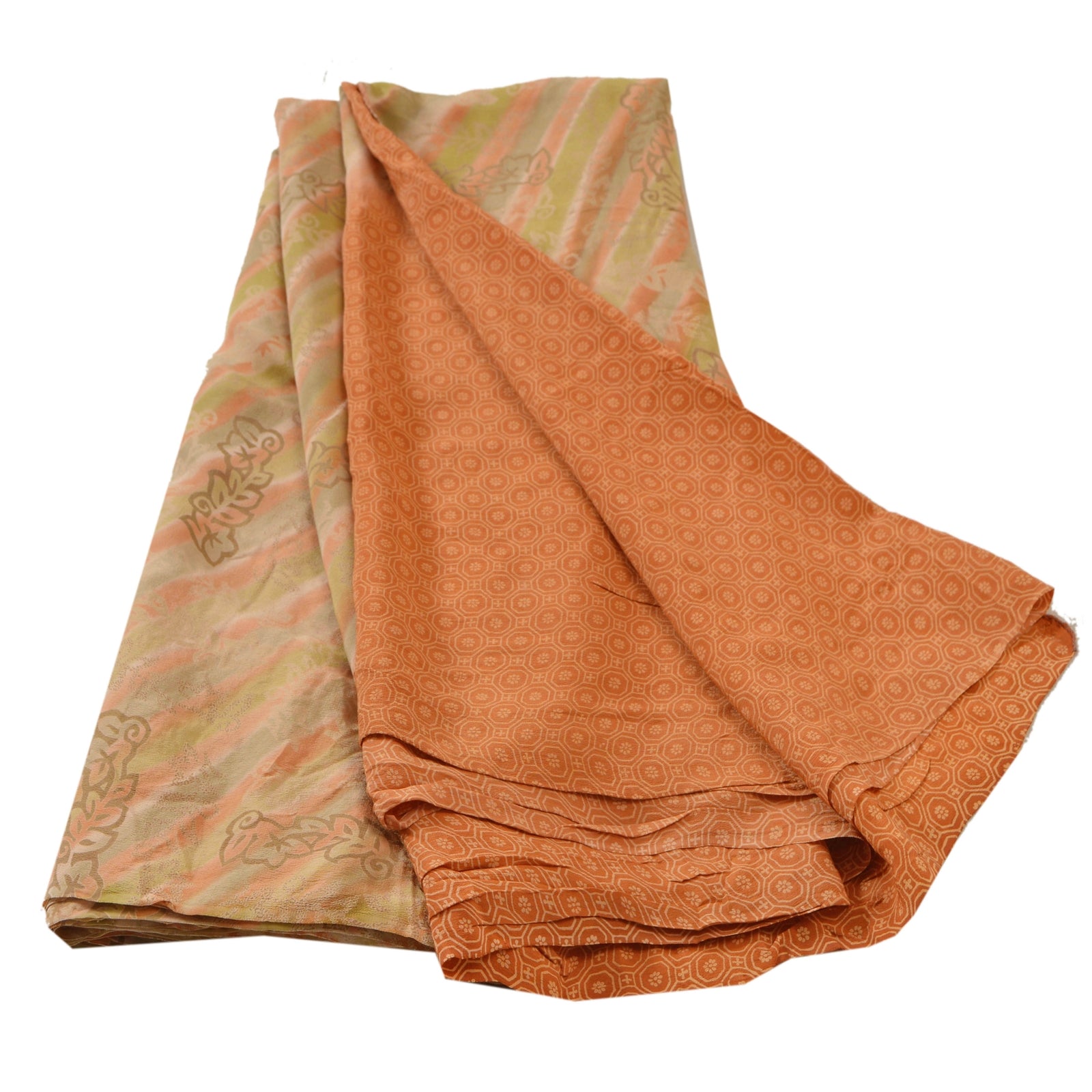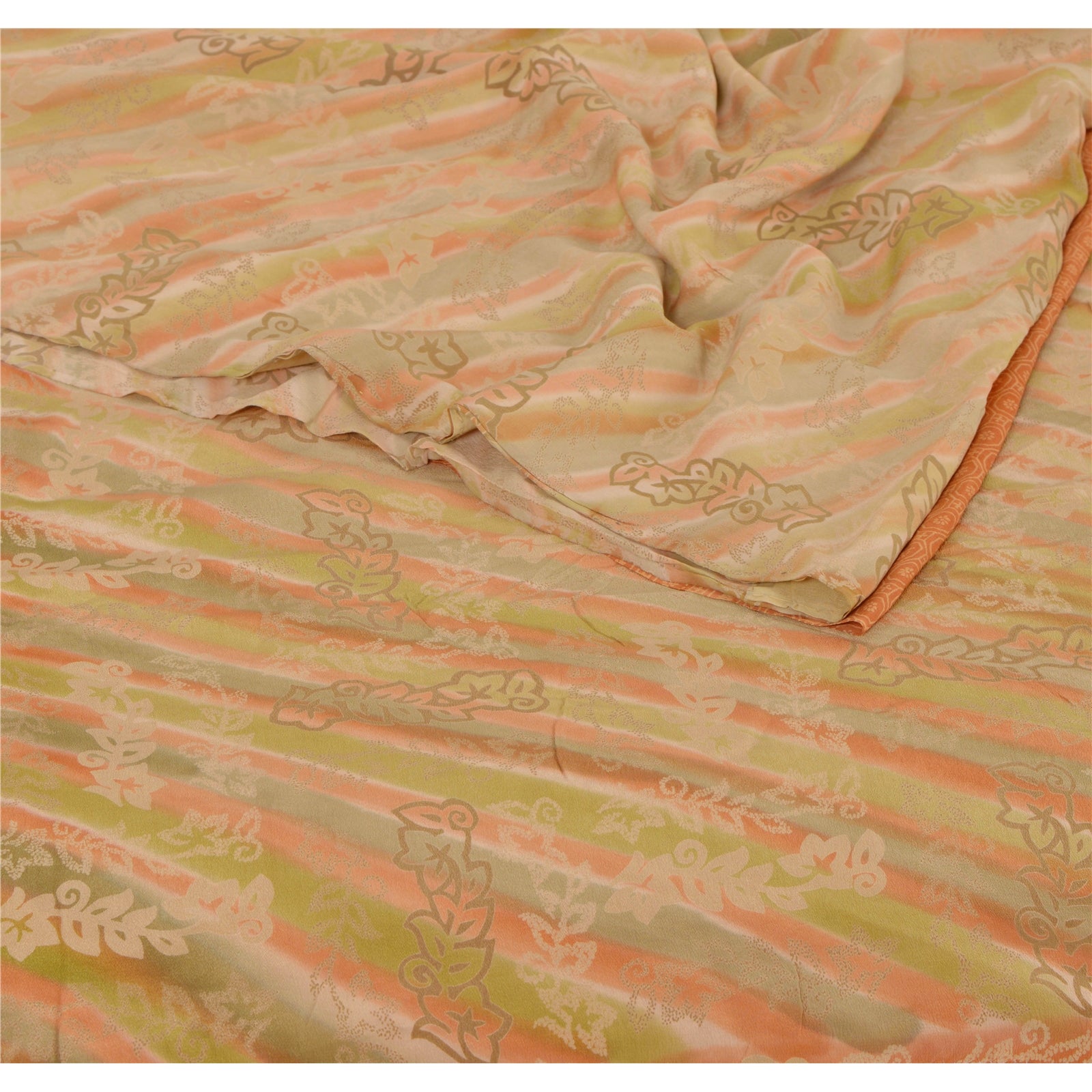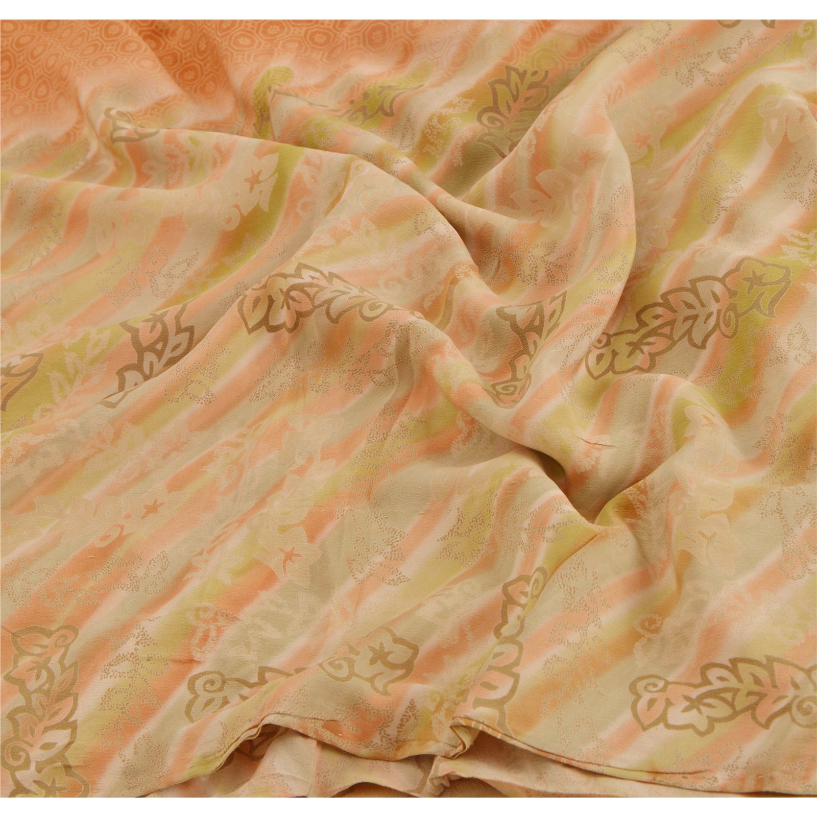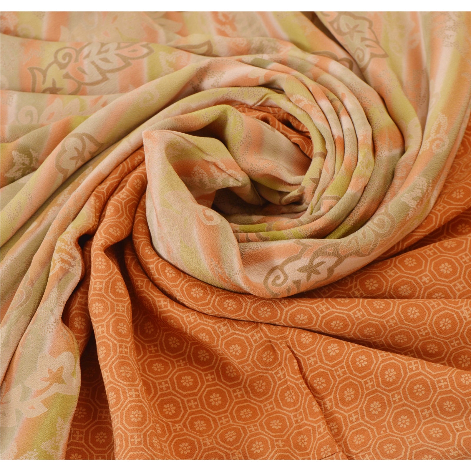Sanskriti Vintage Orange Sarees 100% Pure Crepe Silk Printed Sari Craft Sustainable Fabric