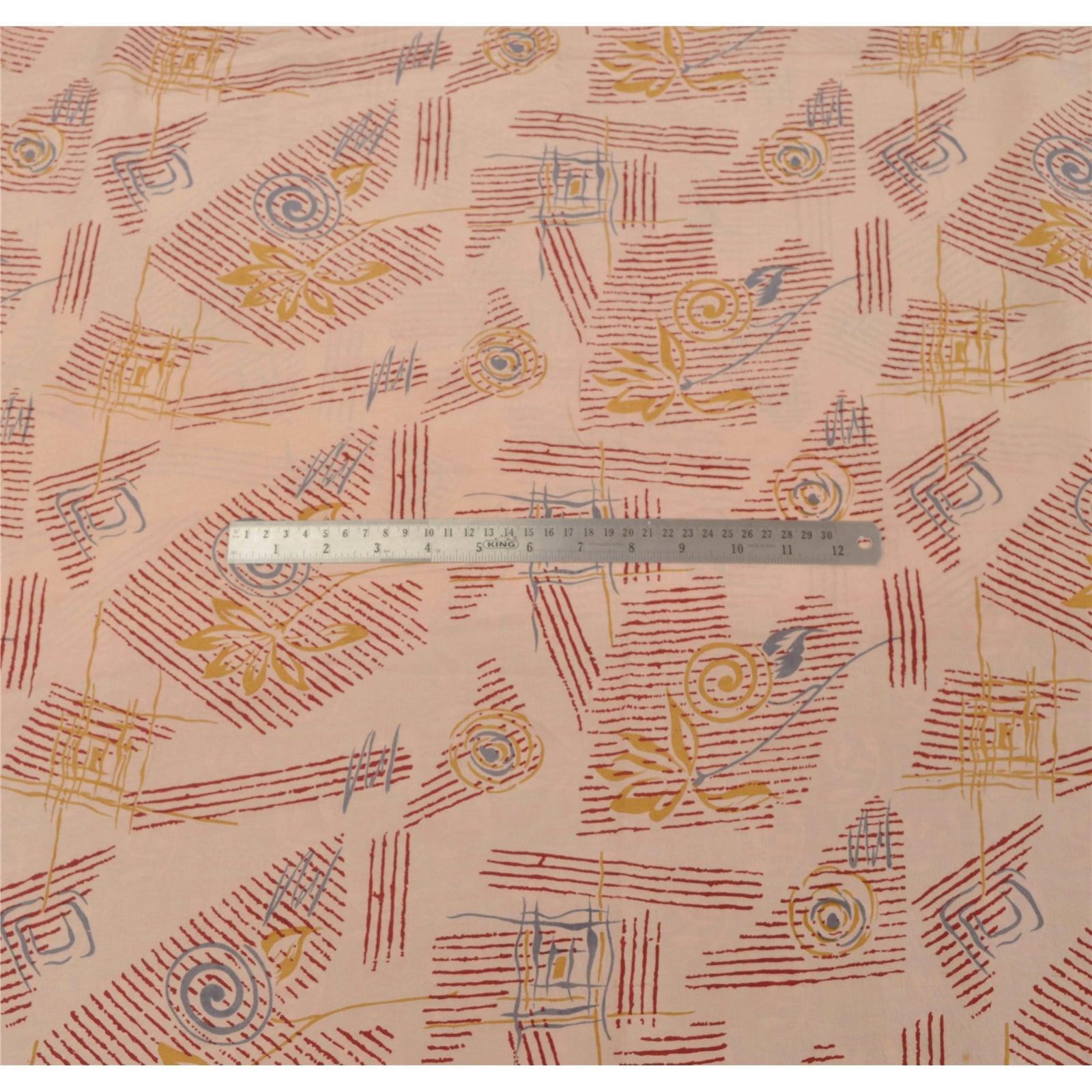 Sanskriti Vintage Peach Indian Sarees Pure Crepe Silk Printed Sari Craft Sustainable Fabric