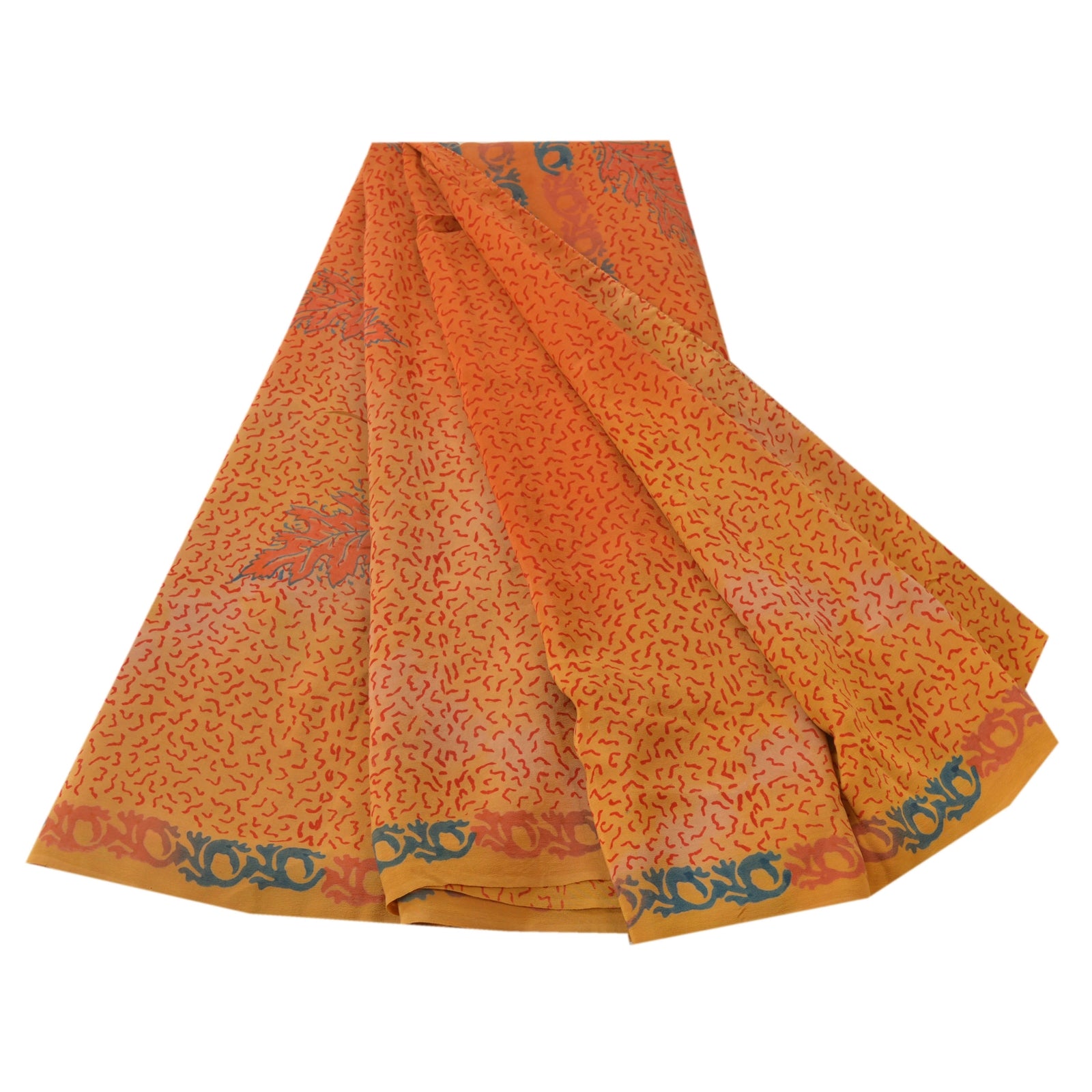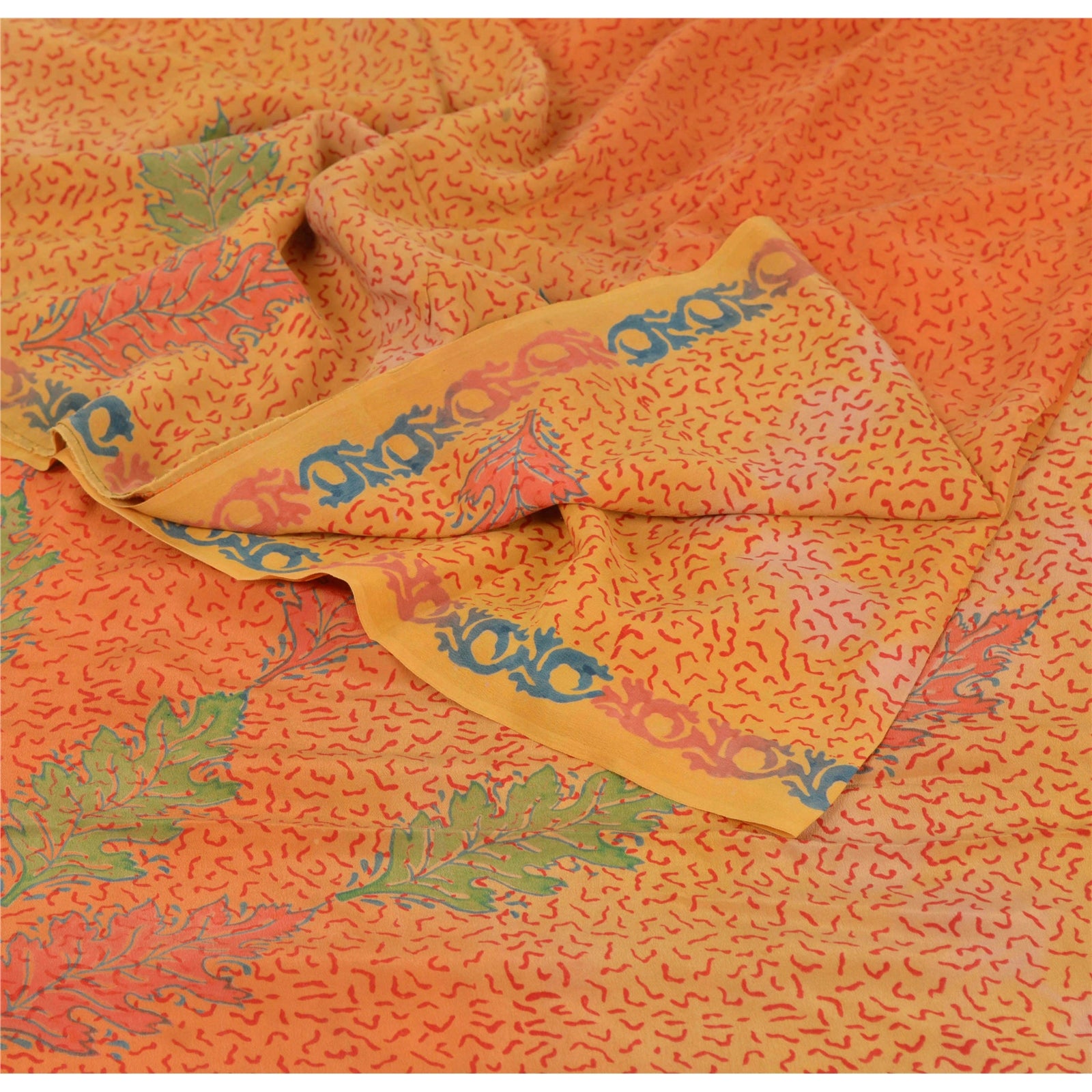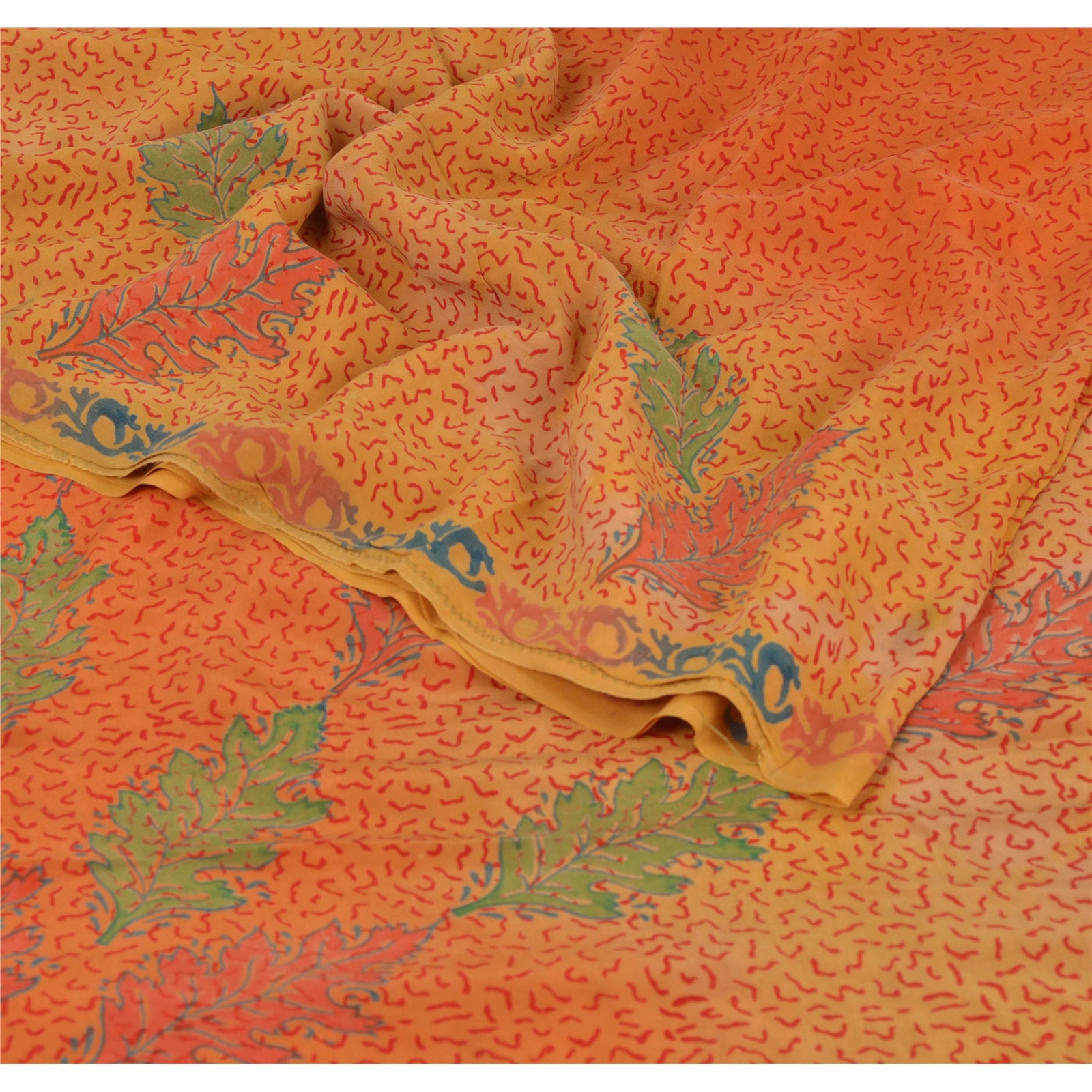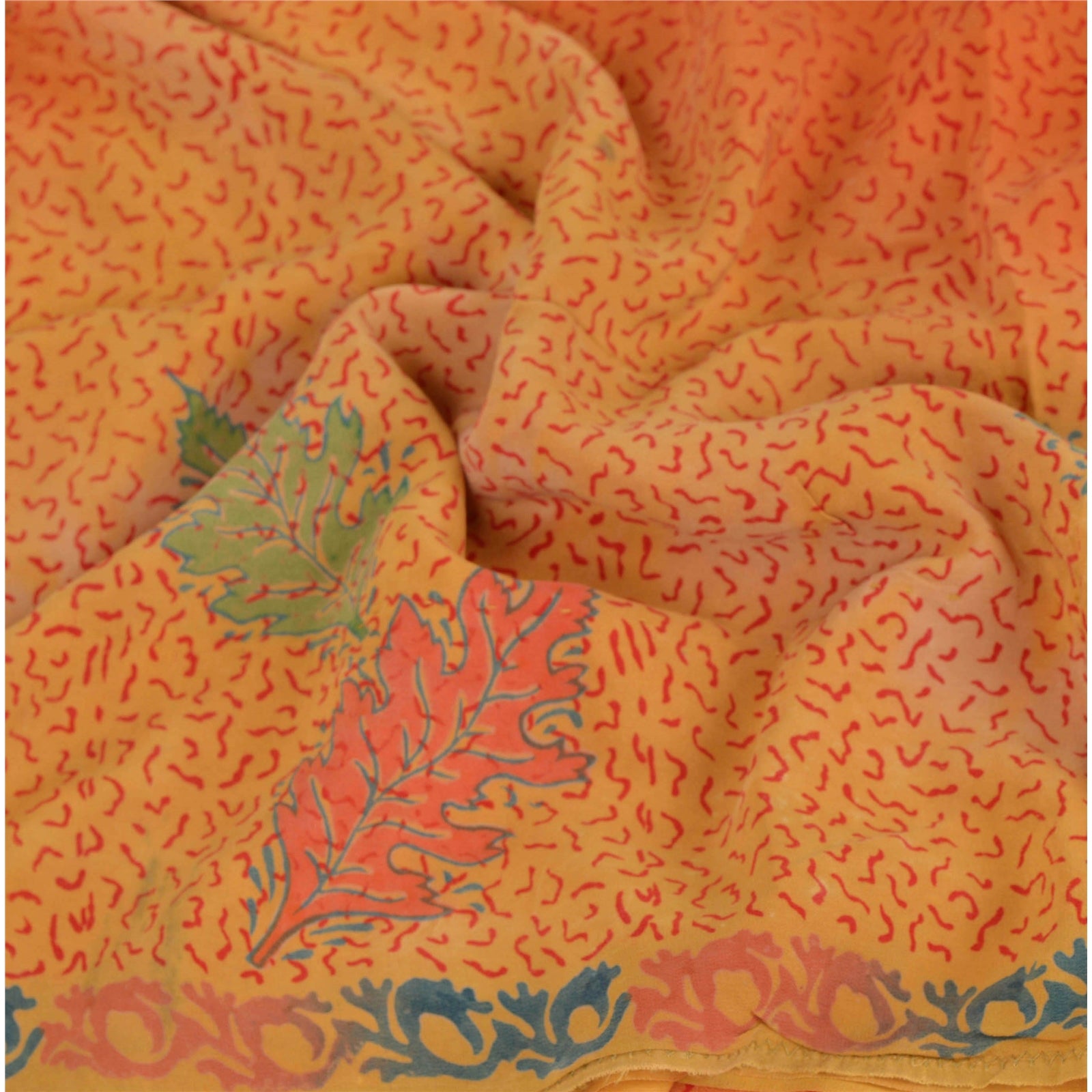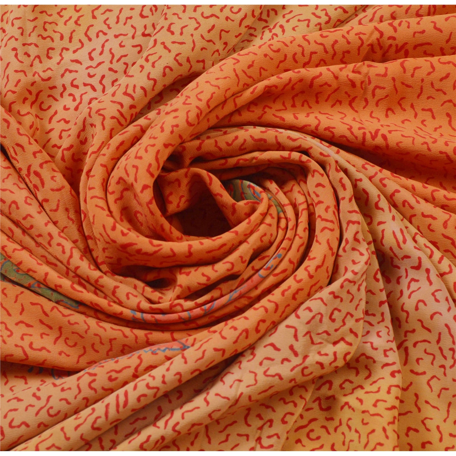 Sanskriti Vintage Peach Saree 5Yd Sewing Sustainable Fabric Pure Crepe Silk Printed Sari