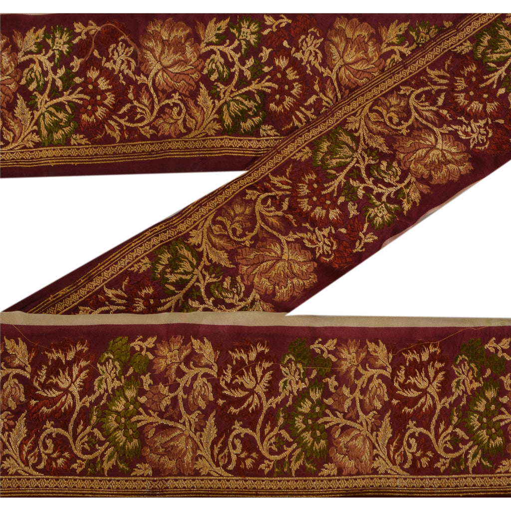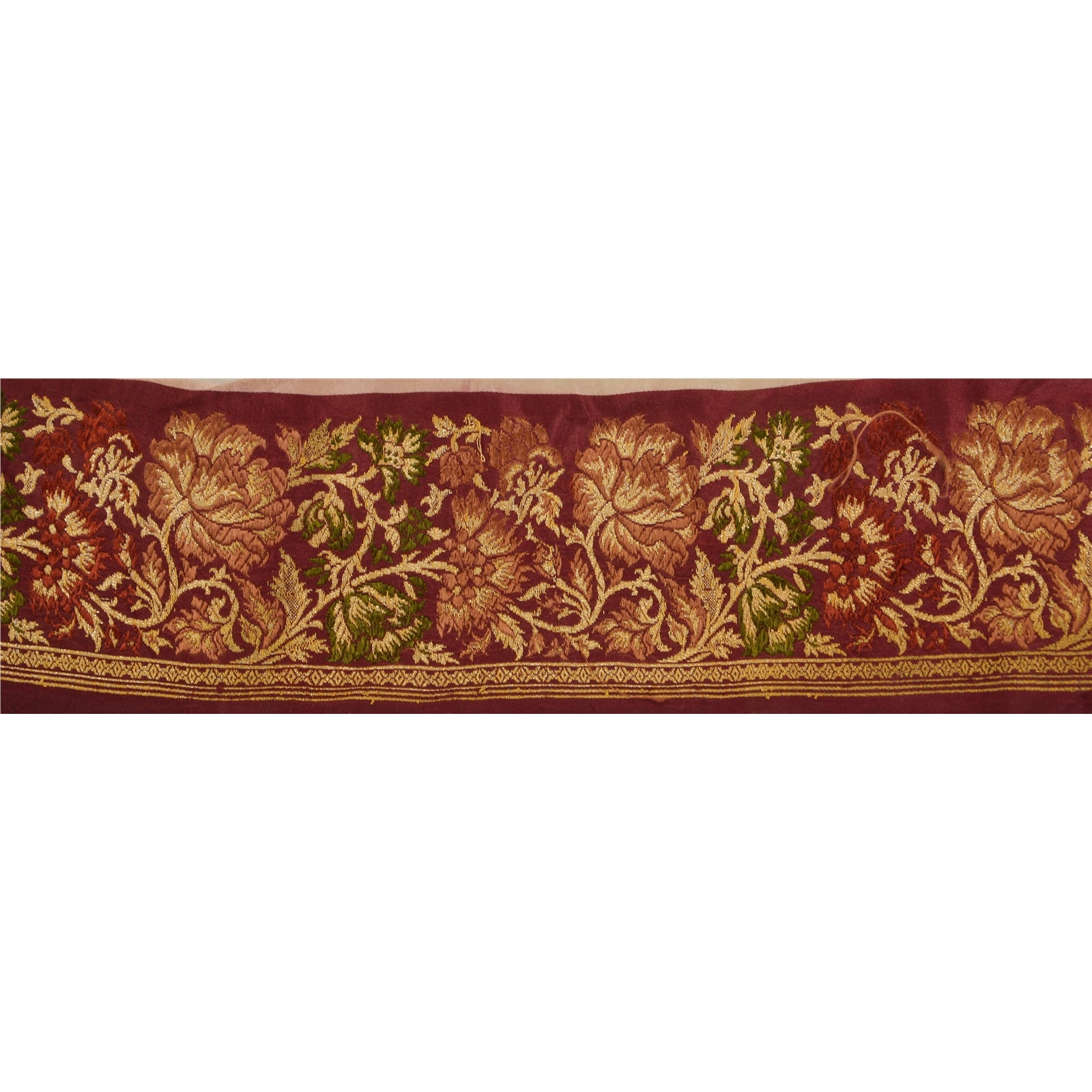 Sanskriti Vintage 1 Yd Indian Sari Border Woven Trim Sewing Craft Dark Red Lace