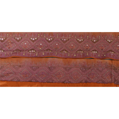 Sanskriti Vintage 1 Yd Sari Border Hand Beaded Craft Trim Sewing Brown Lace