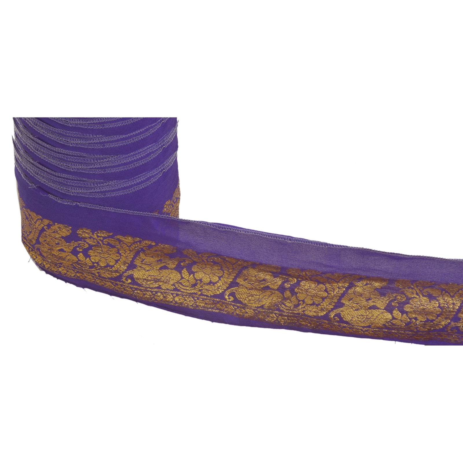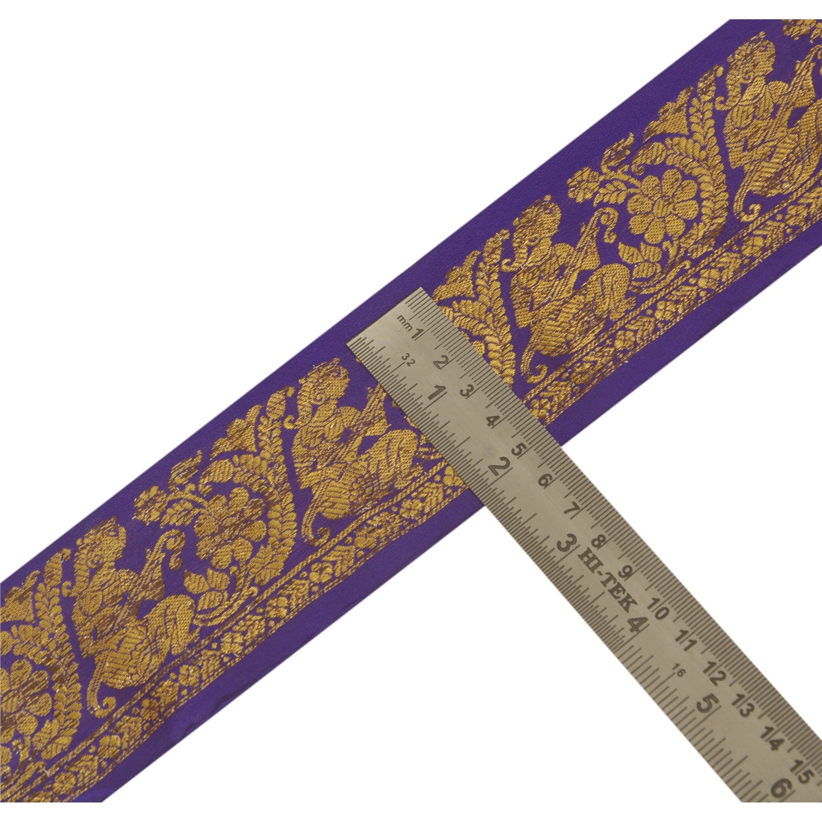 Outstanding pure silk woven brocade sari border in blue color highlighting zari work. Border has beautiful floral, human & paisley patterns painstakingly gold zari work (electroplated copper metallic thread) work. WOW!! an awesome one of a kind versatile border. 1 Quantity = 1 Yard