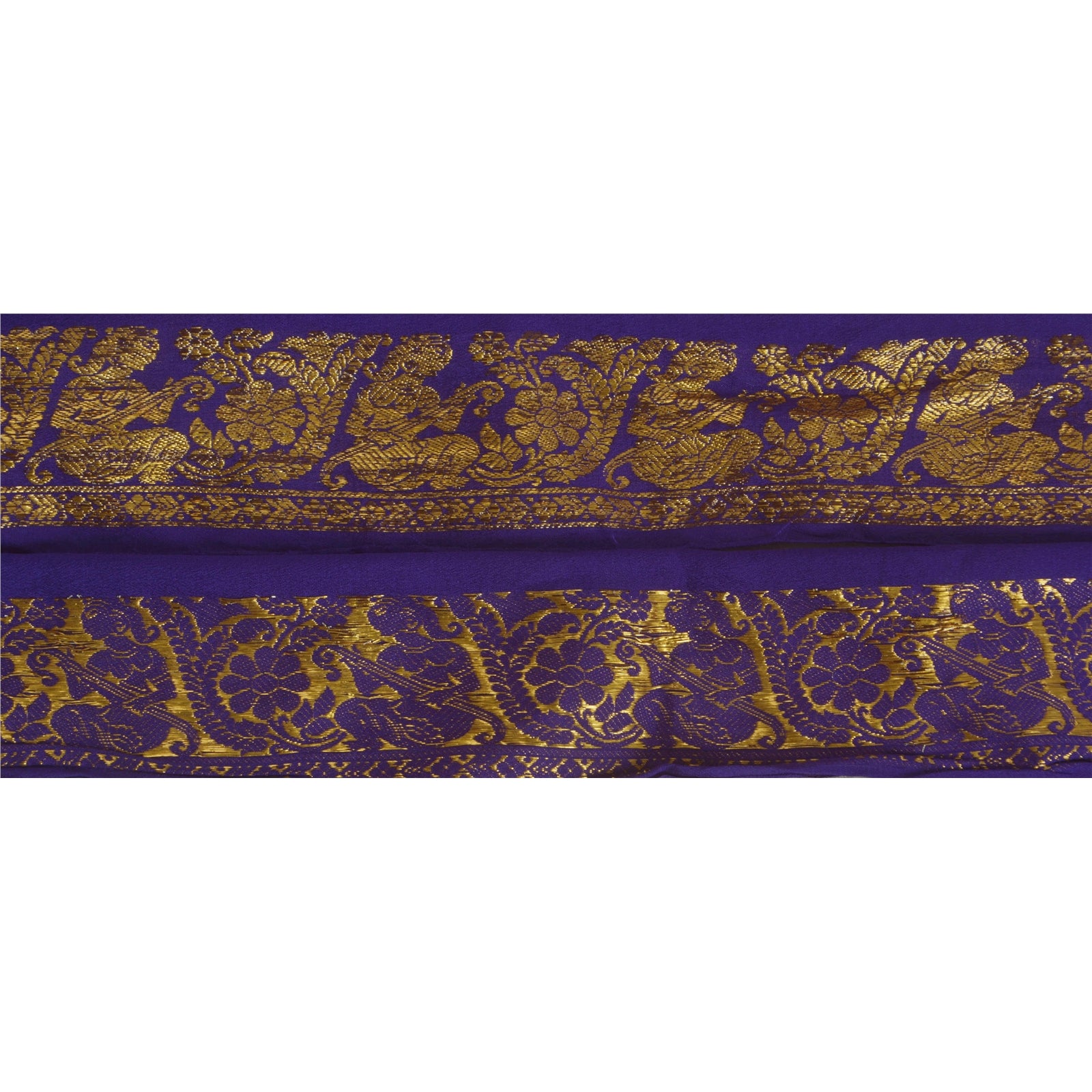 Sanskriti Vintage 1 Yd Trim Sari Border Woven Brocade Craft Sewing Blue Lace