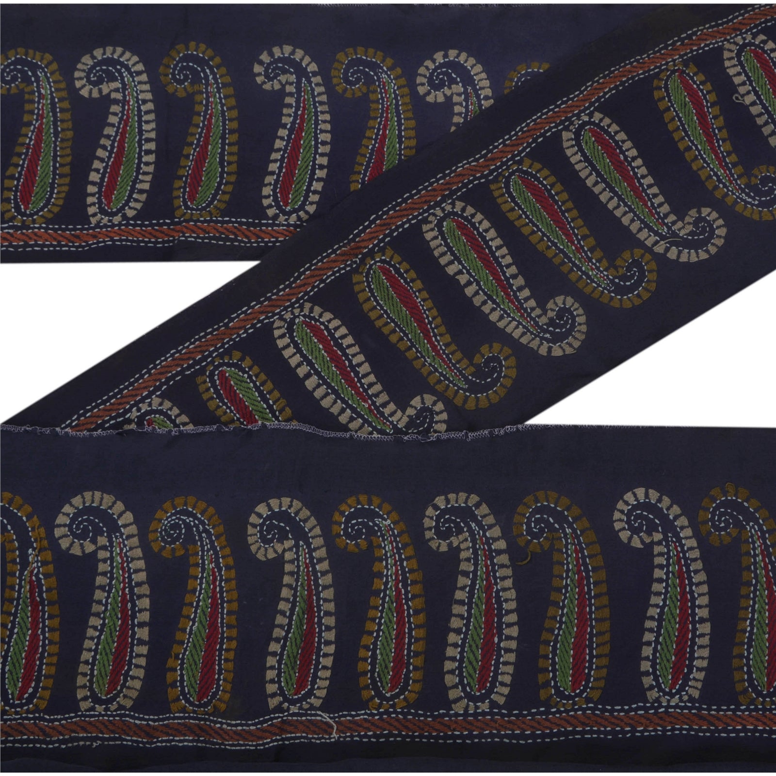 Sanskriti Vintage 1 Yd Kantha Sari Border Hand Embroidered Sewing Craft Lace